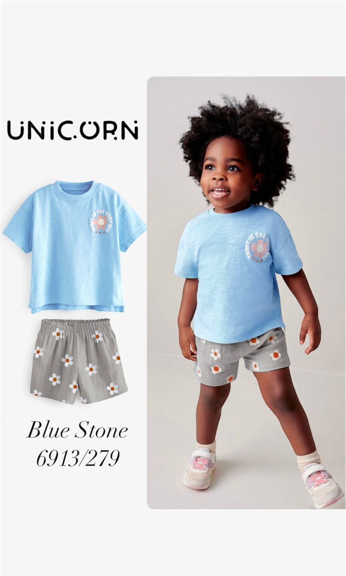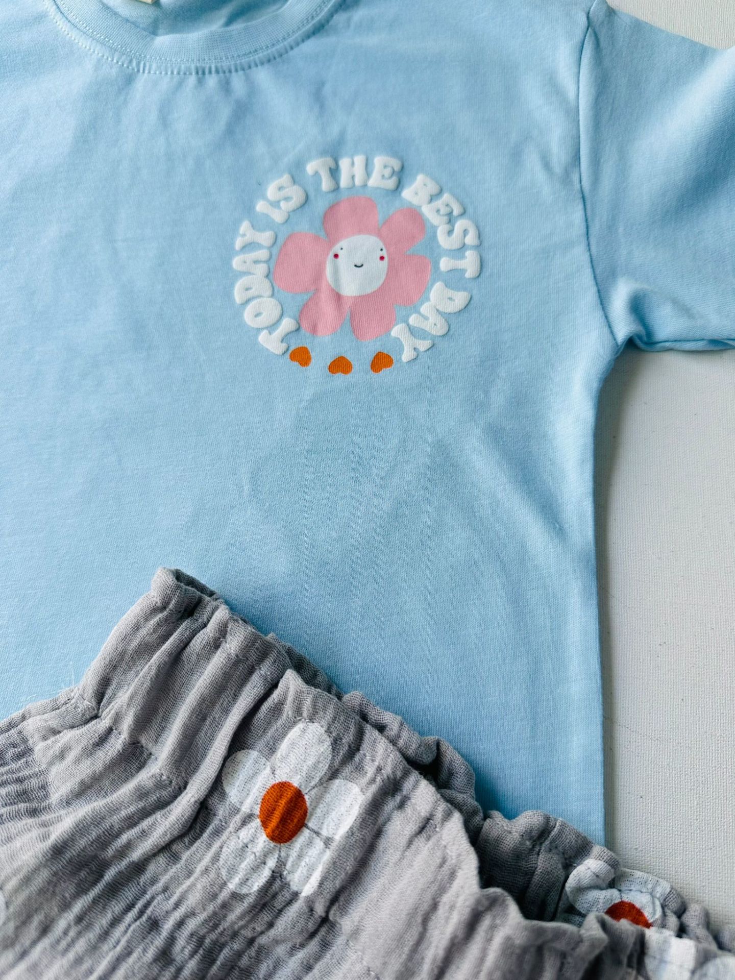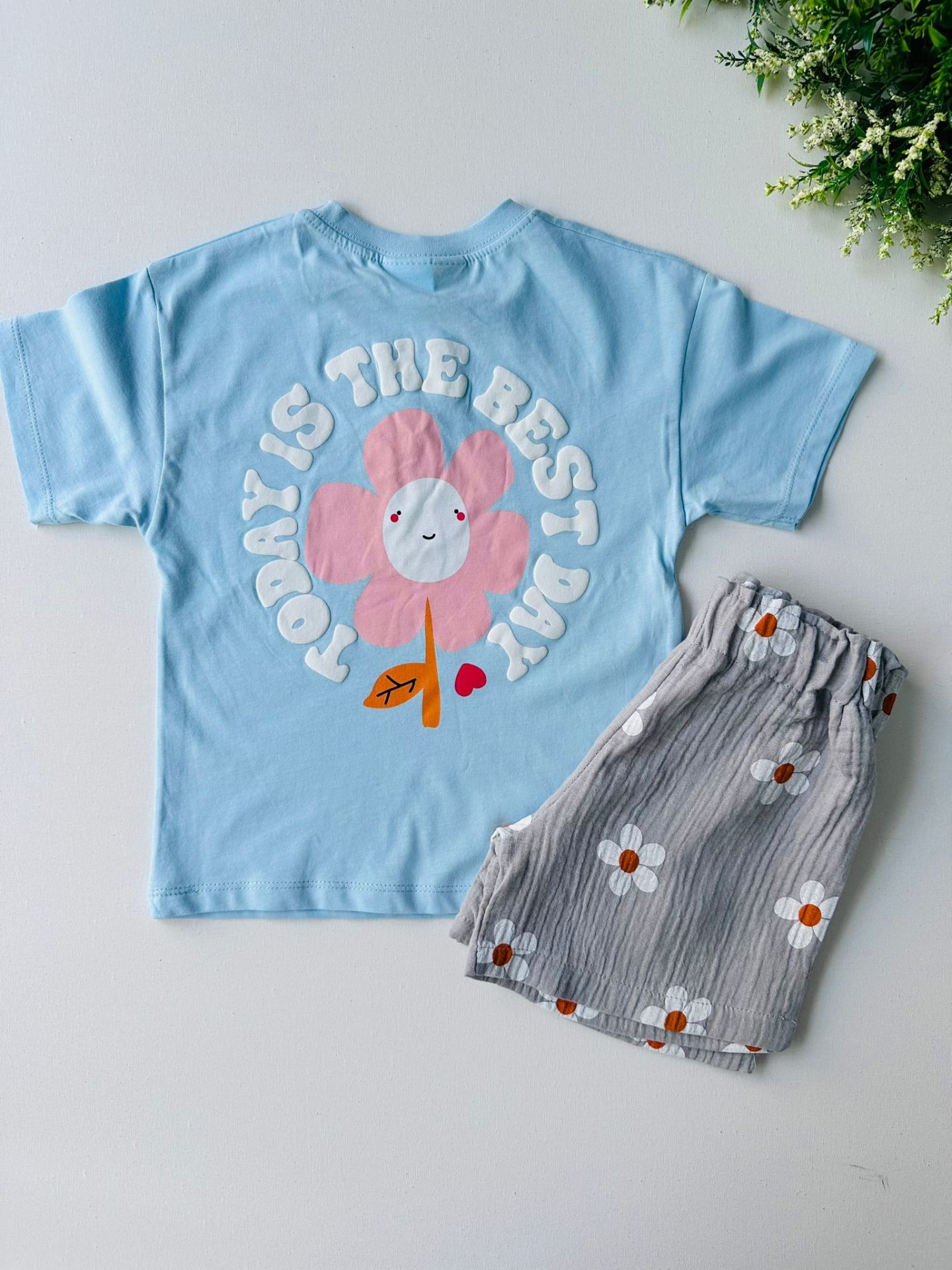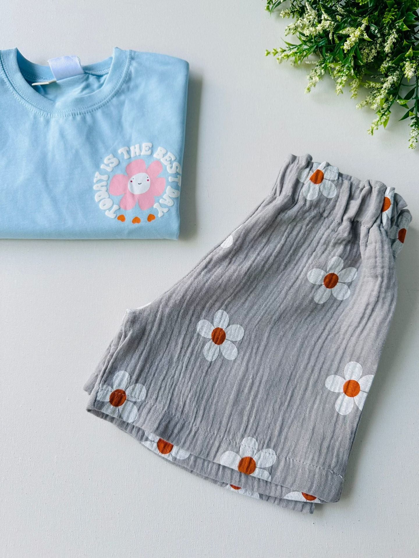 Papatya Desenli Müslin Şortlu Takım - Mavi 7/8 Yaş