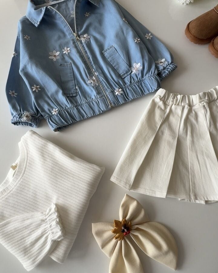 Papatya Nakışlı 3’lü Kız Takım - Mavi