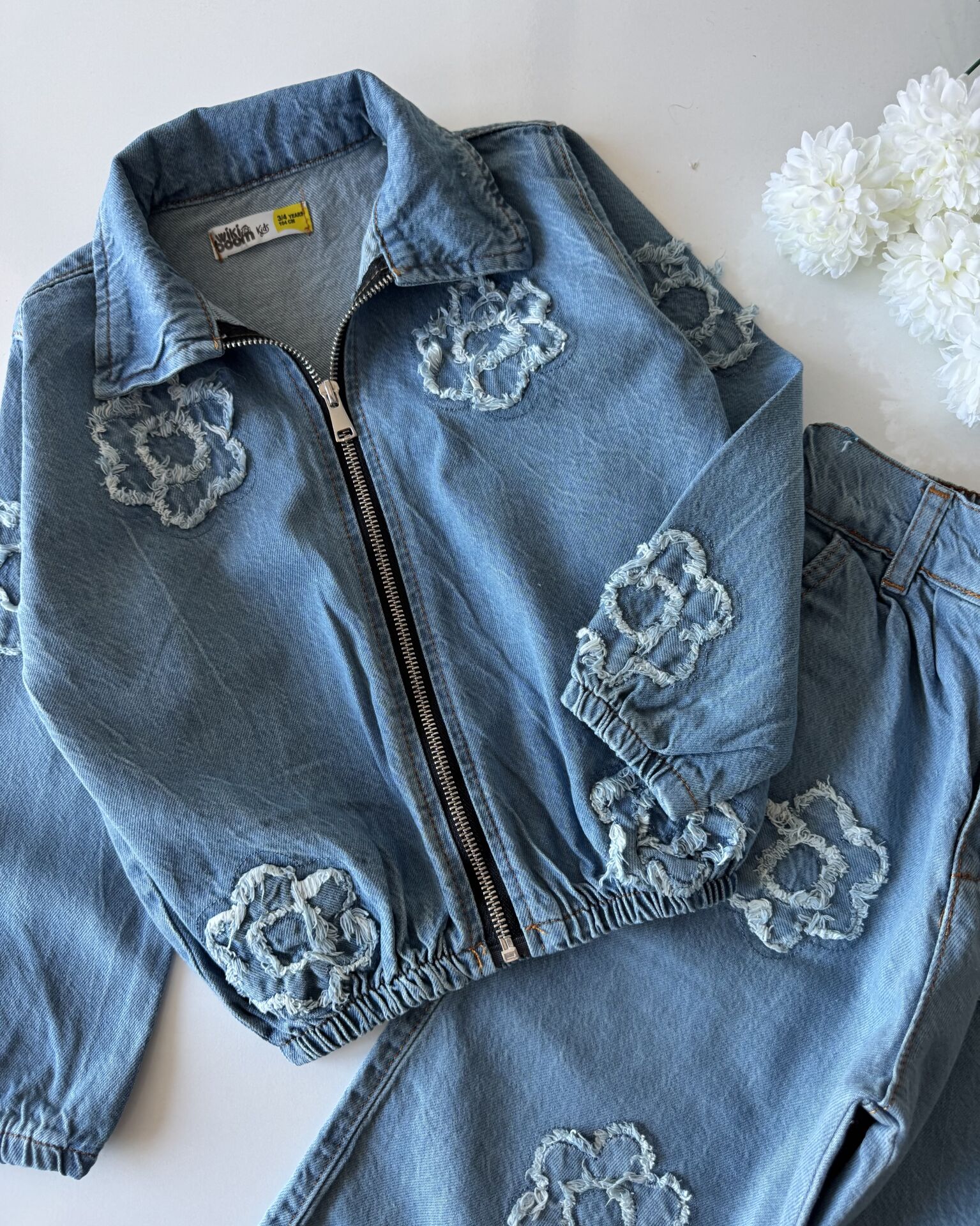 Papatya Saçaklı 2'li Denim Takım - Mavi