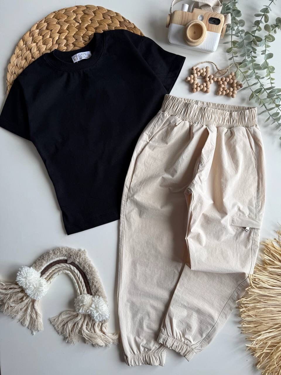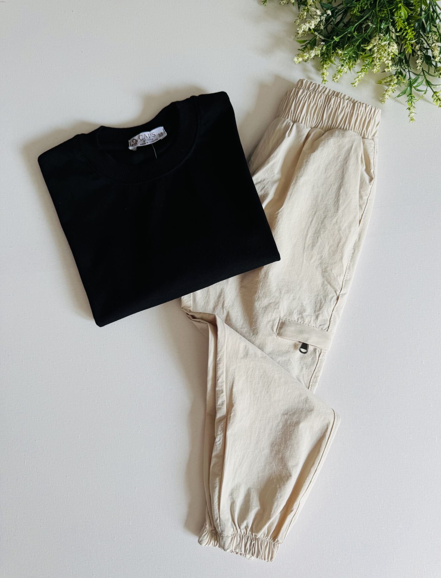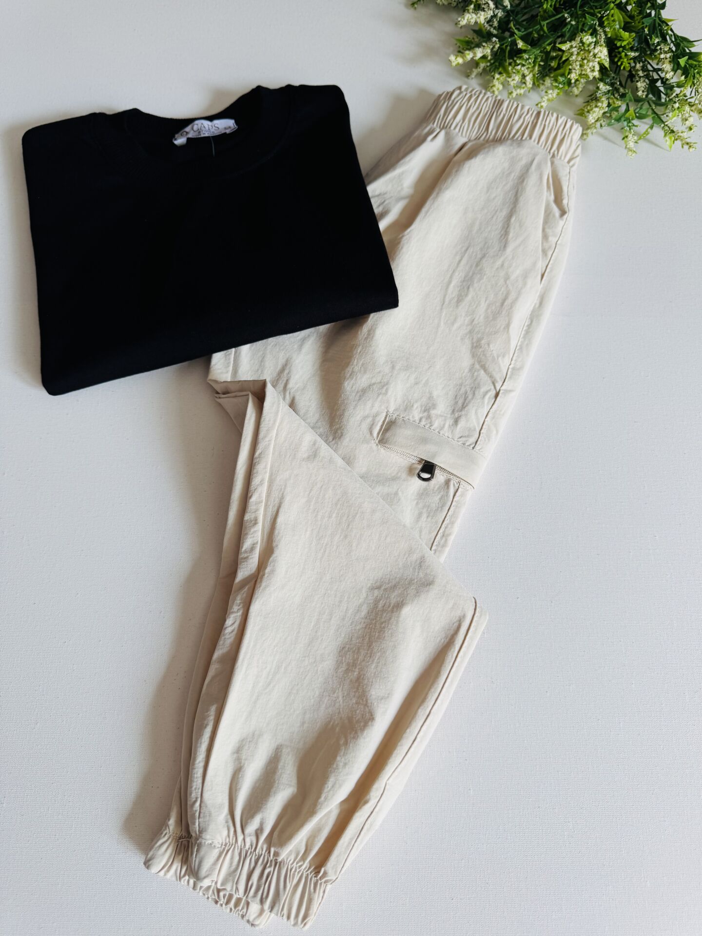 Paraşüt Pantolonlu Anıl Takım - Siyah Krem
