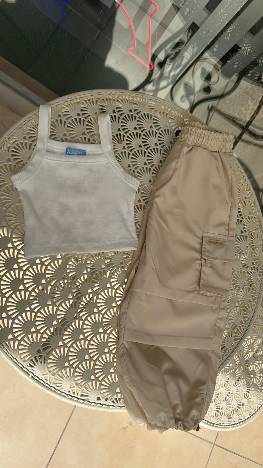 Ürün Bilgisi : Kaşkorse kumaş crop ip askılı badi ve son zamanların en çok satanı paraşüt pantolon ve tabiki La'ciel kalites ile