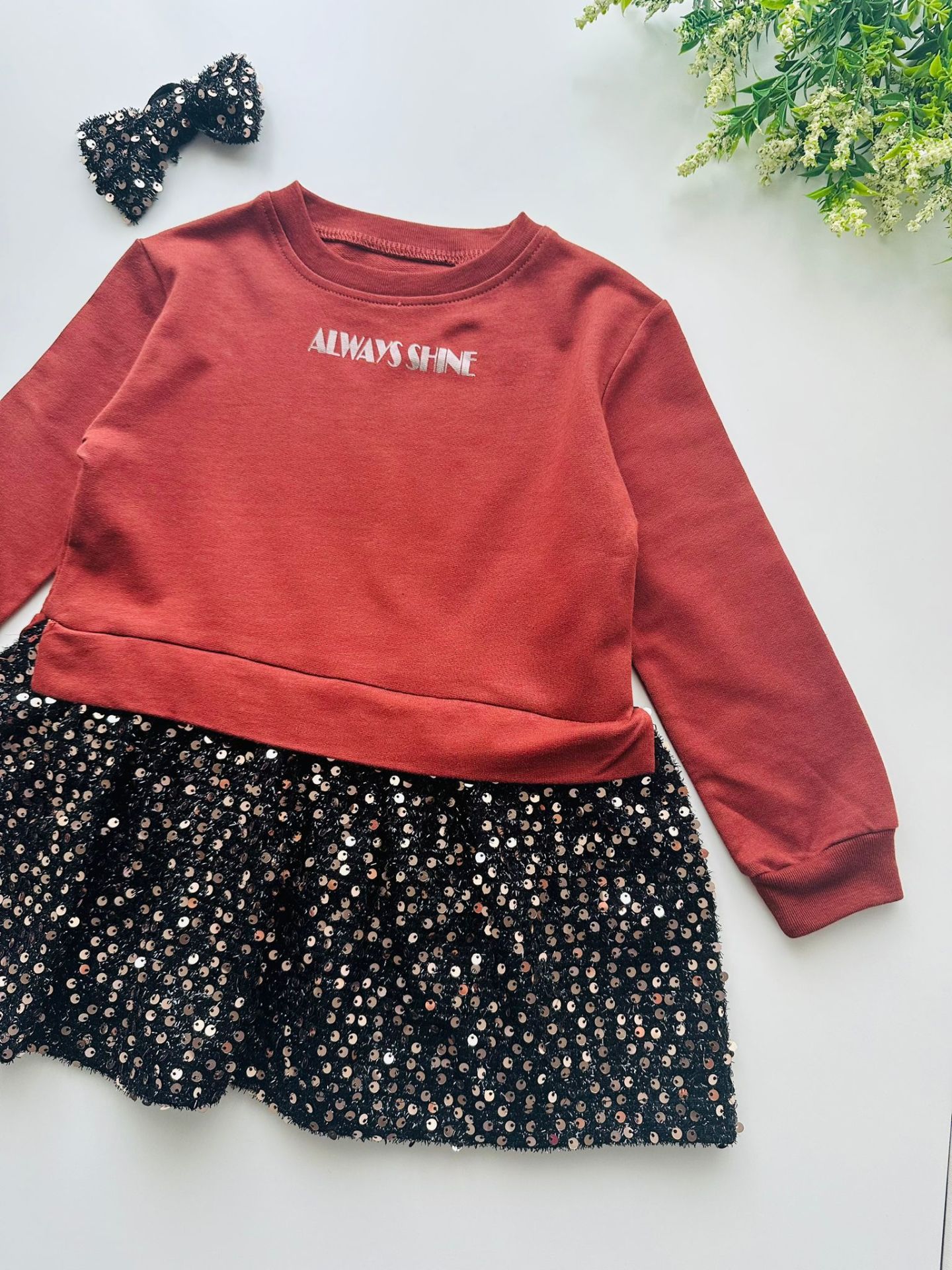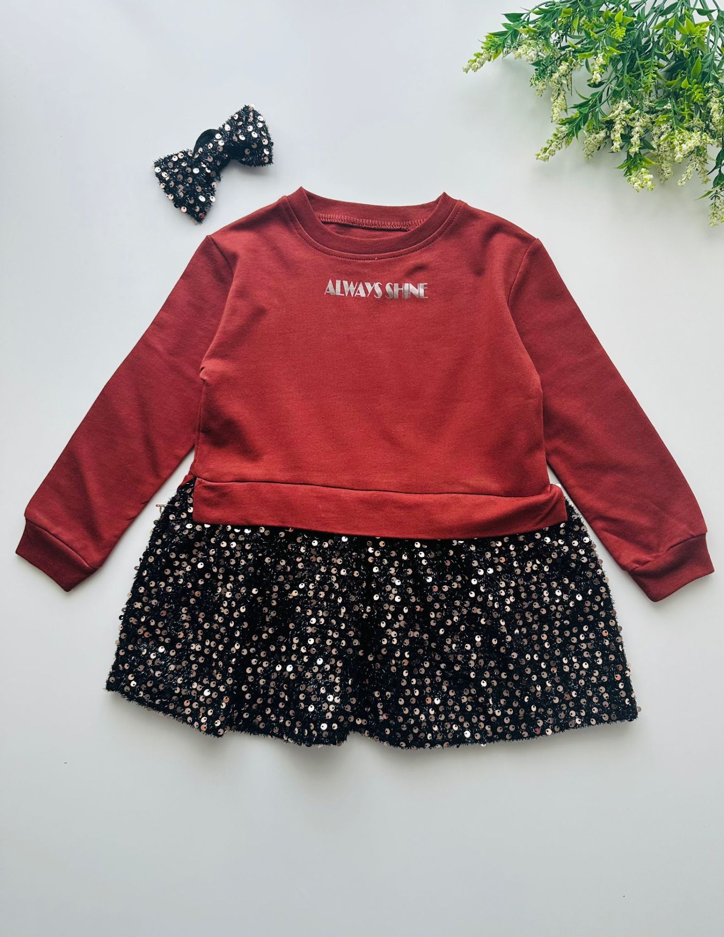 2 iplik, pul payet detaylı sweat elbise 30C’de yıkanabilir, pamuklu üründür.
