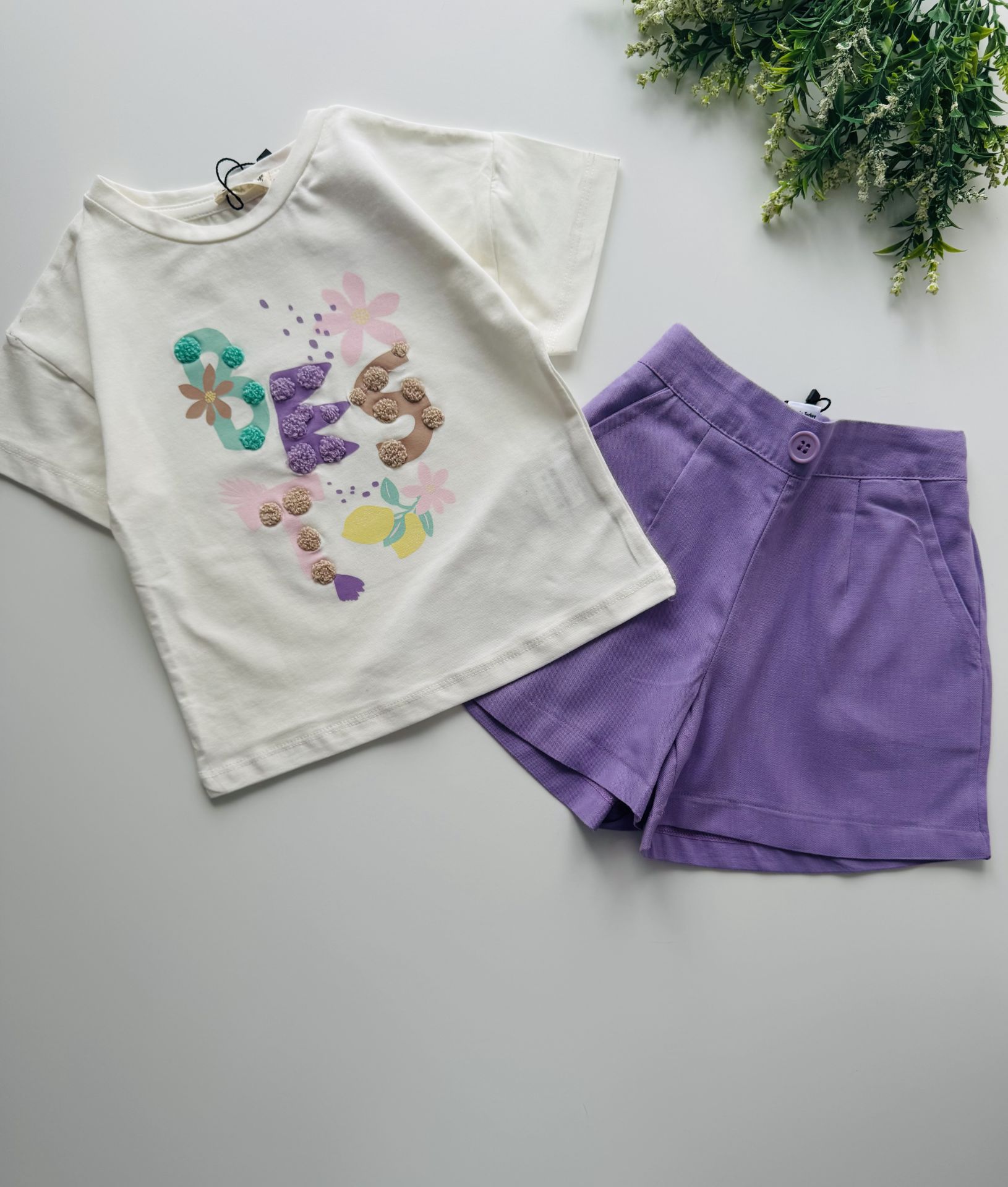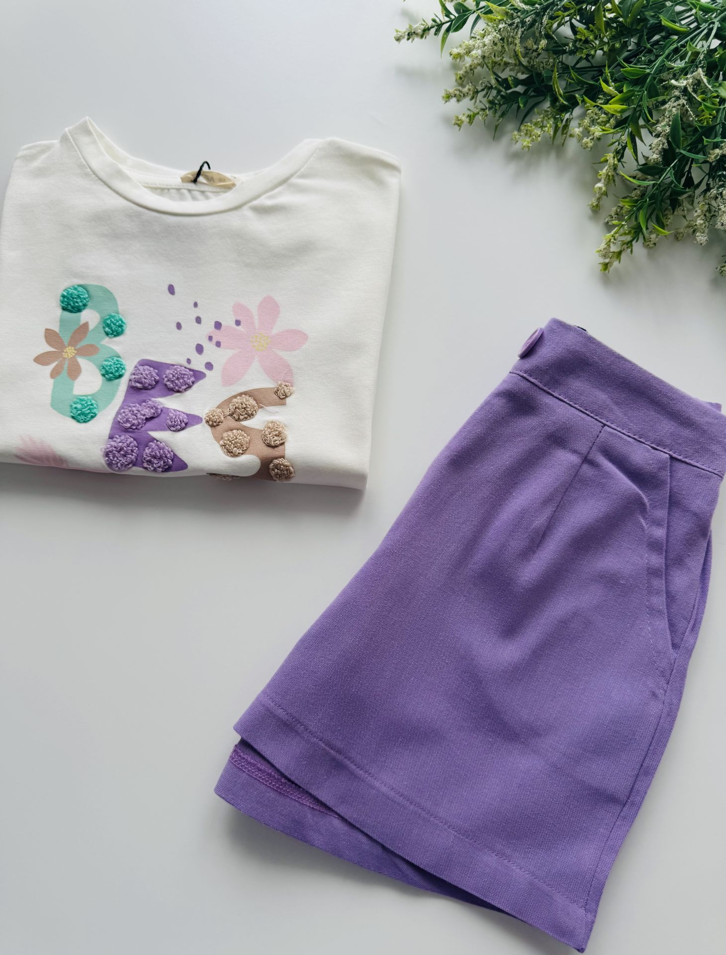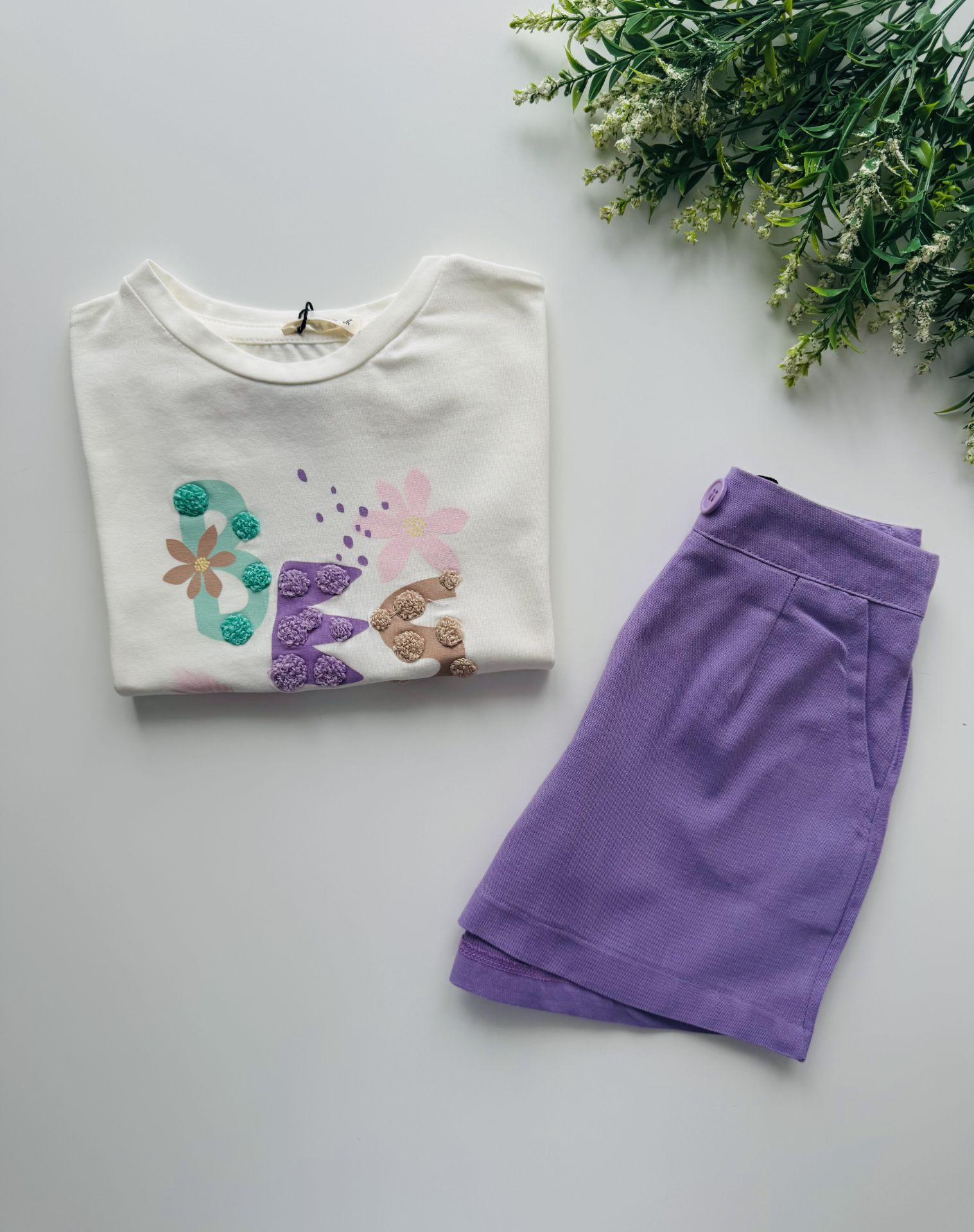 Punch Nakışlı Şortlu Leyla Takım - Lila