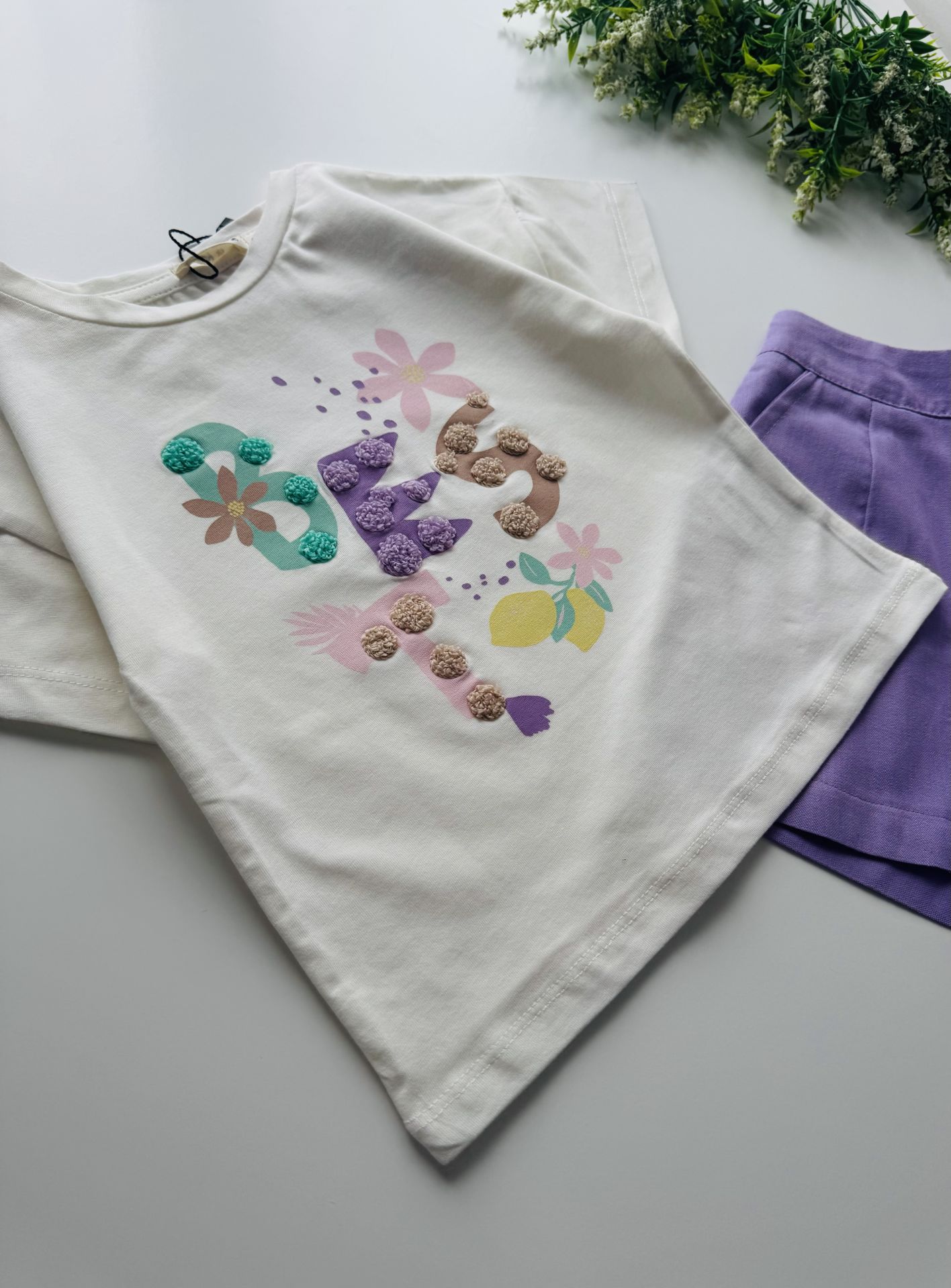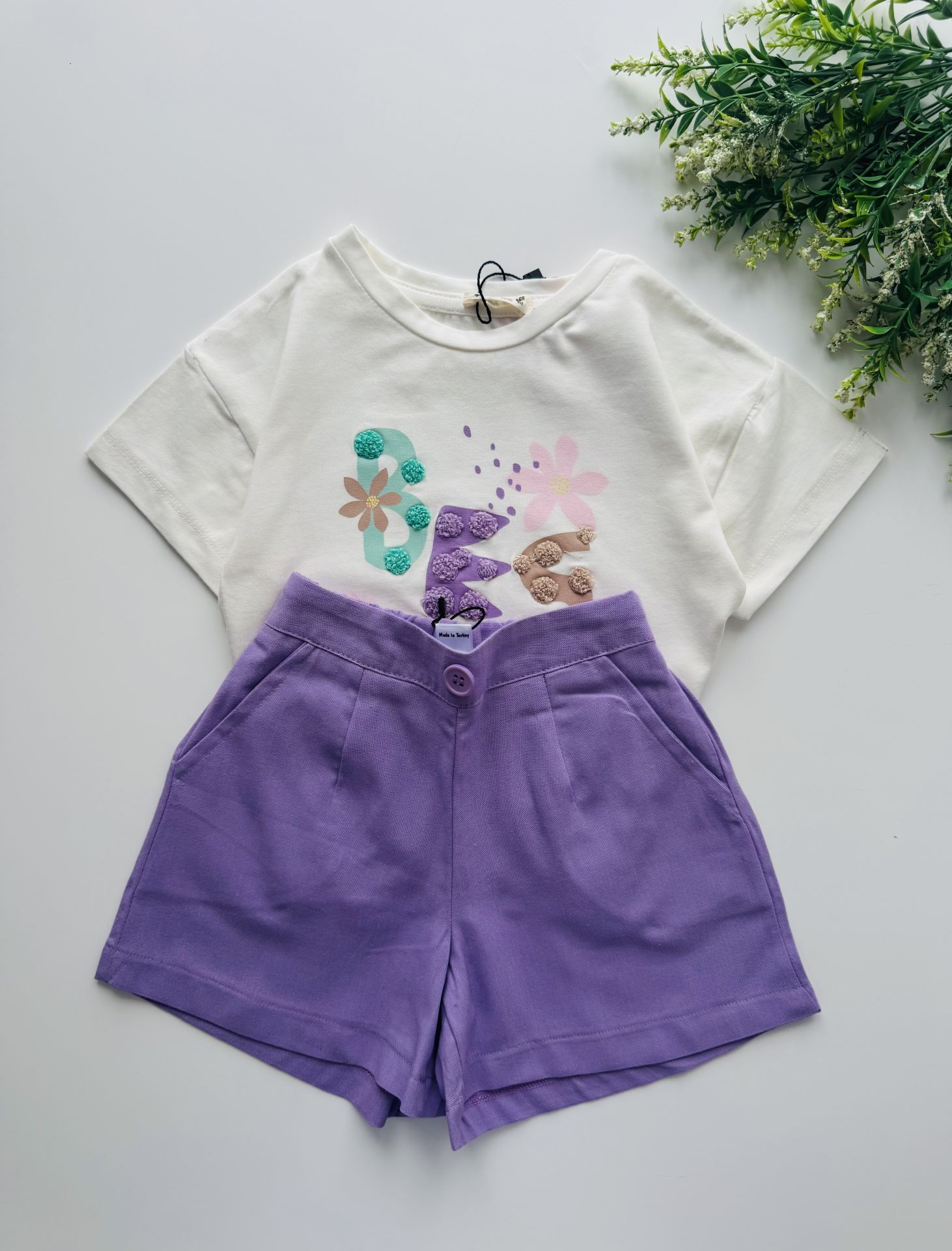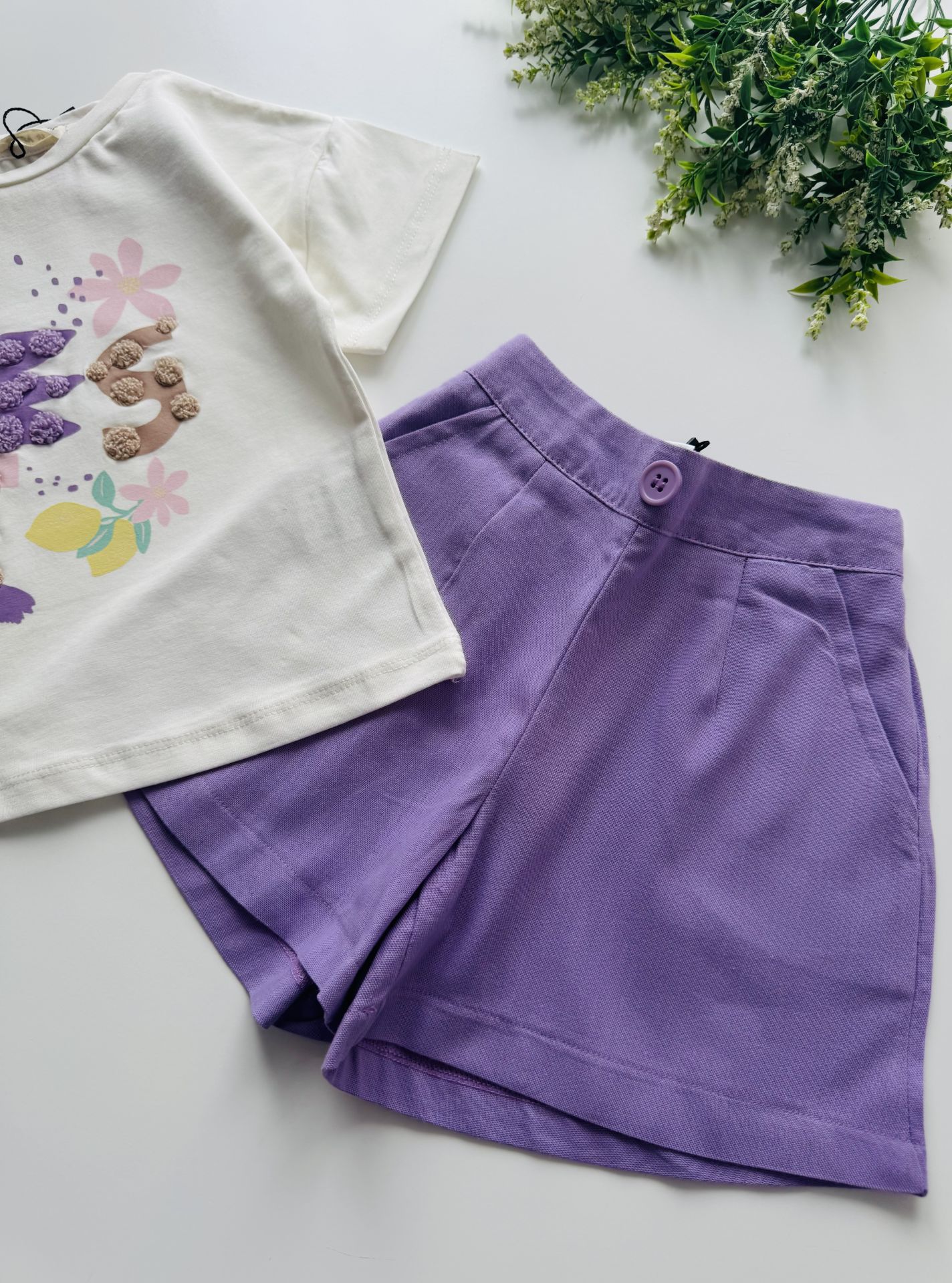 Punch Nakışlı Şortlu Leyla Takım - Lila
