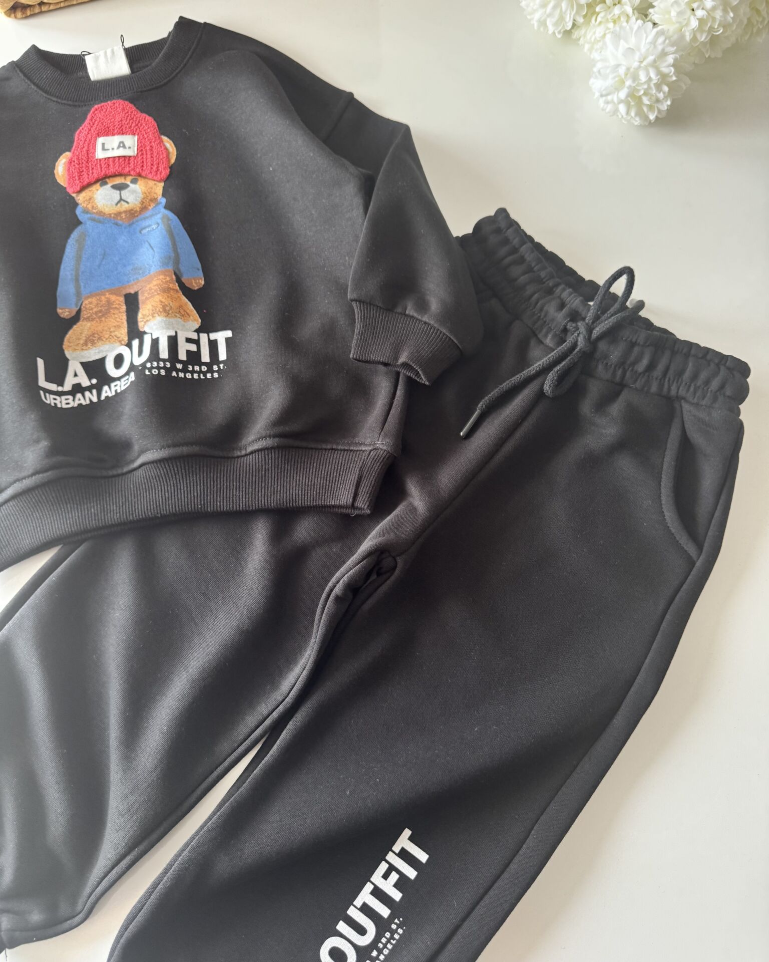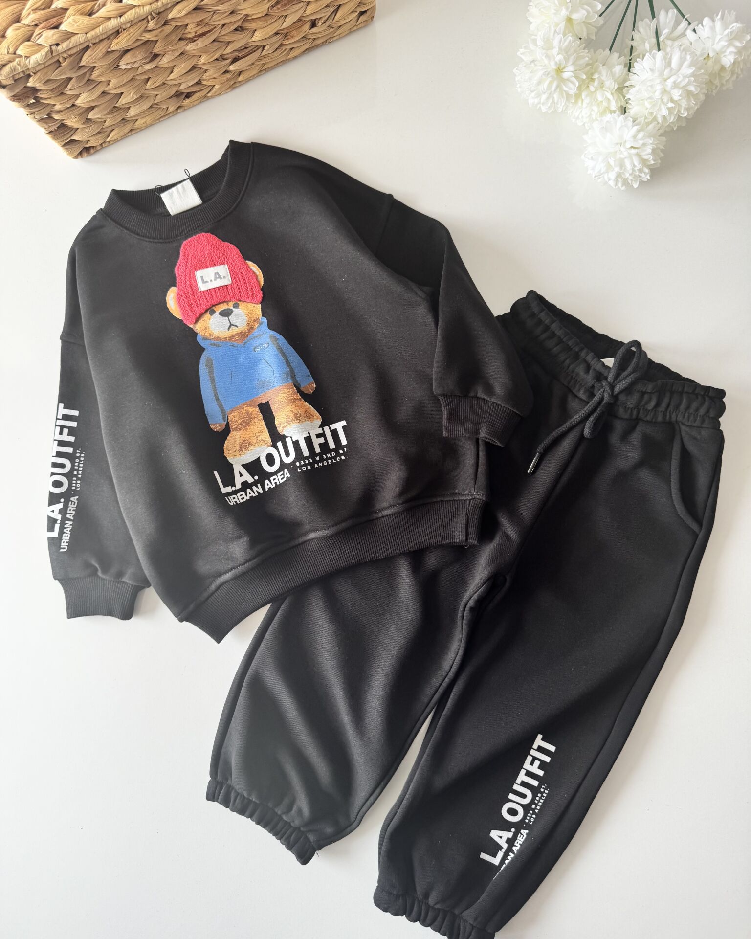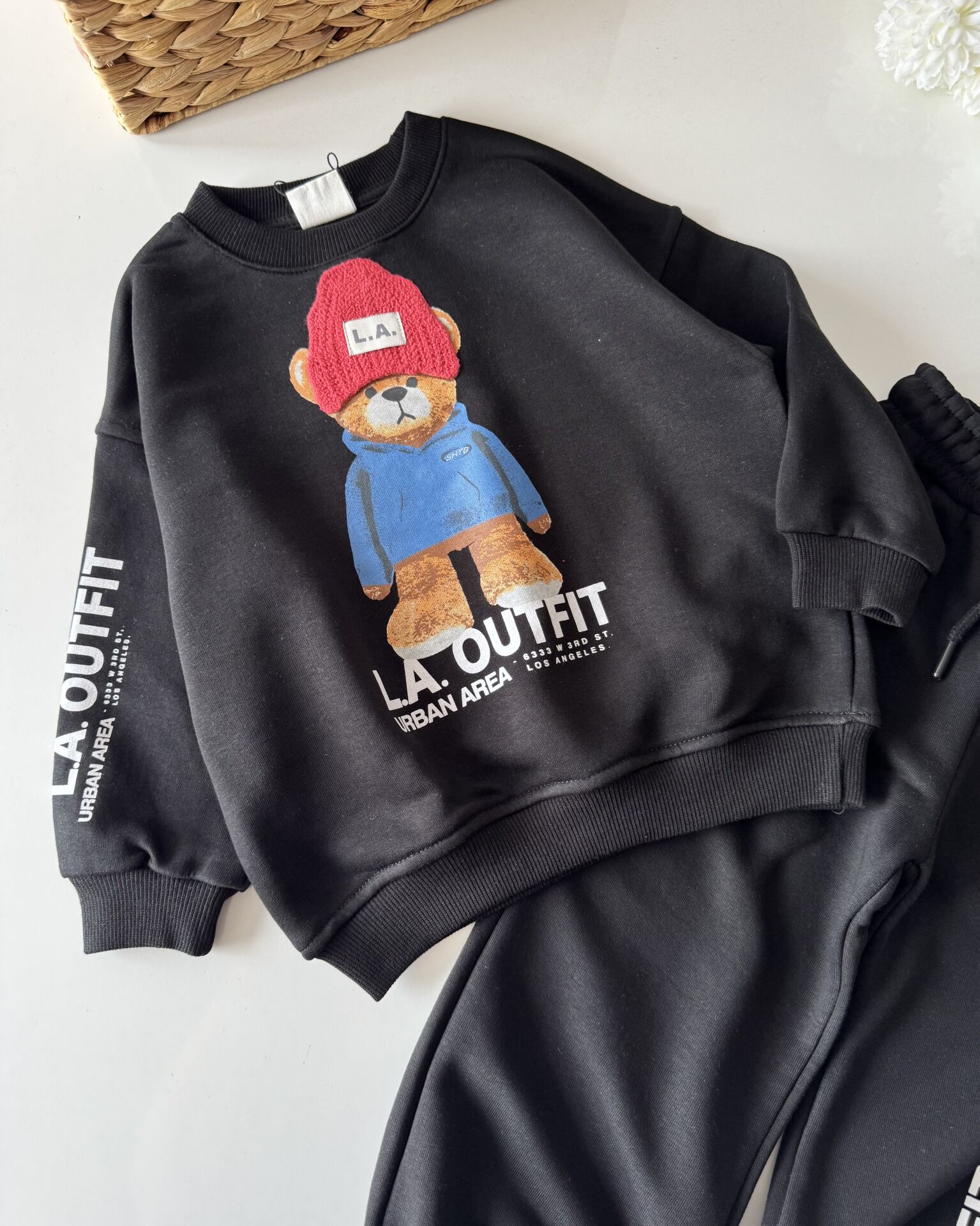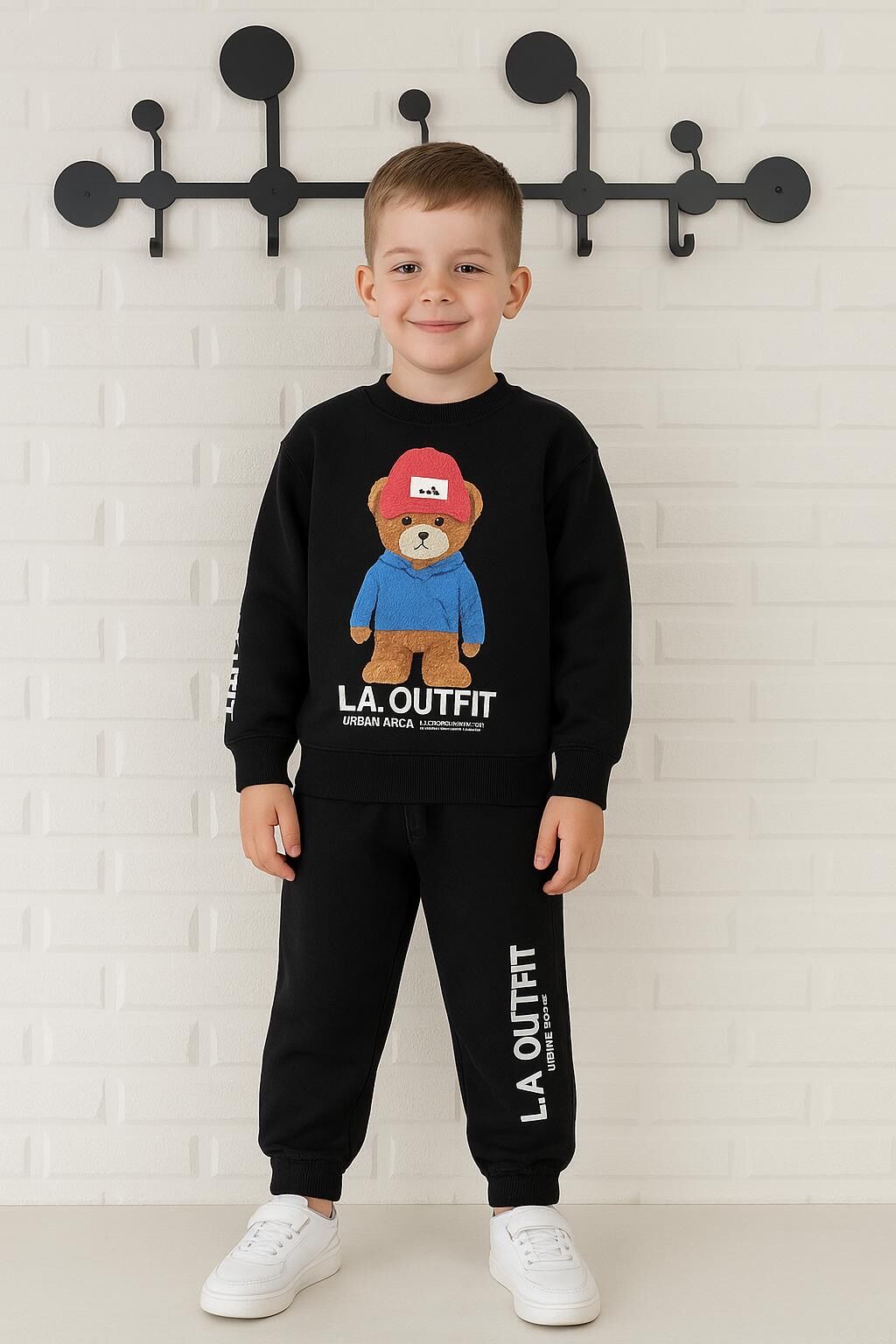 Şapka Aplikeli Ayıcık Takım - Siyah