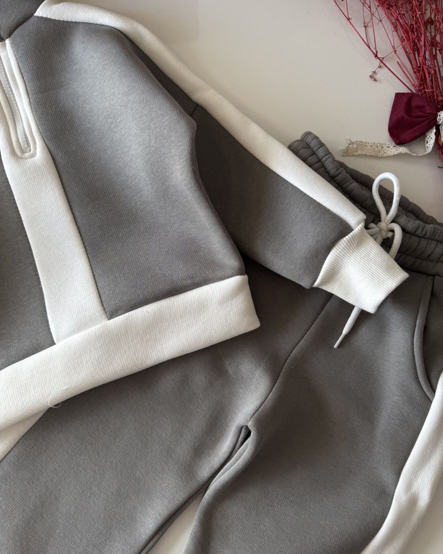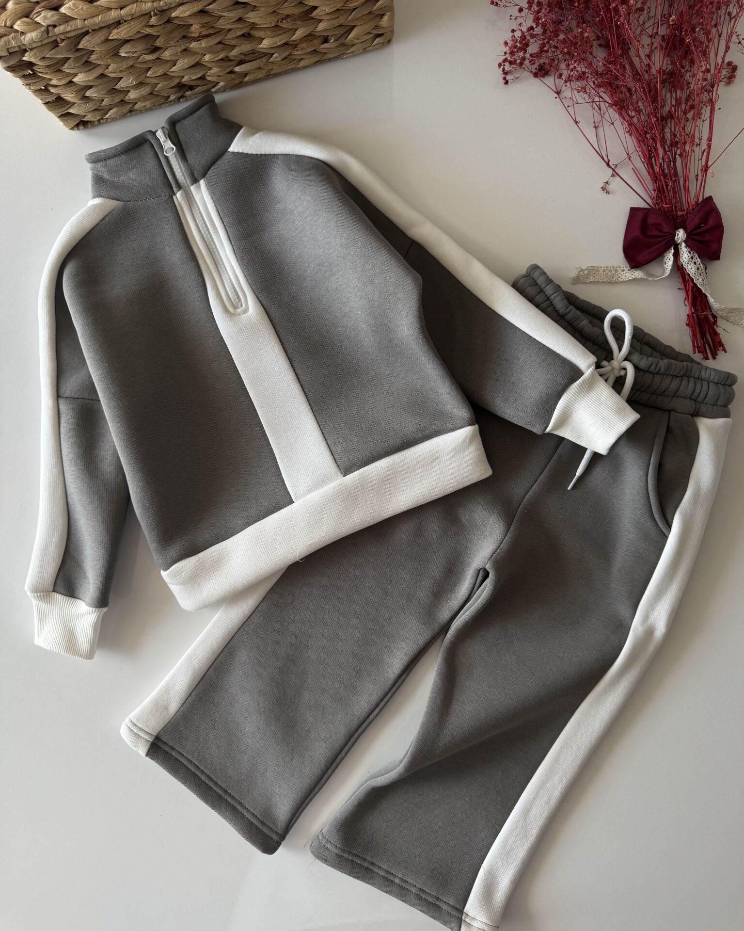 Şardonlu Bloklu Önü Fermuarlı Eşofman Takımı - Gri