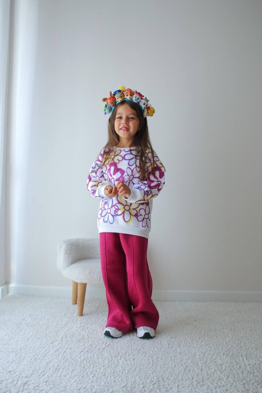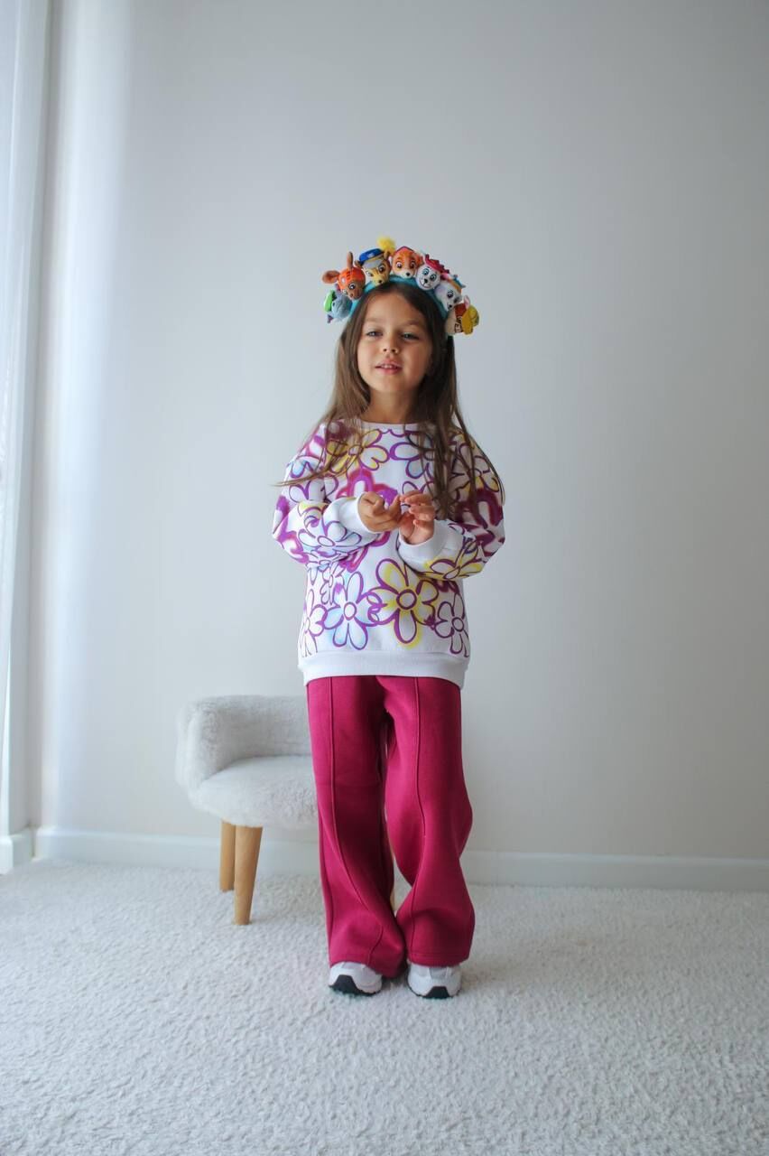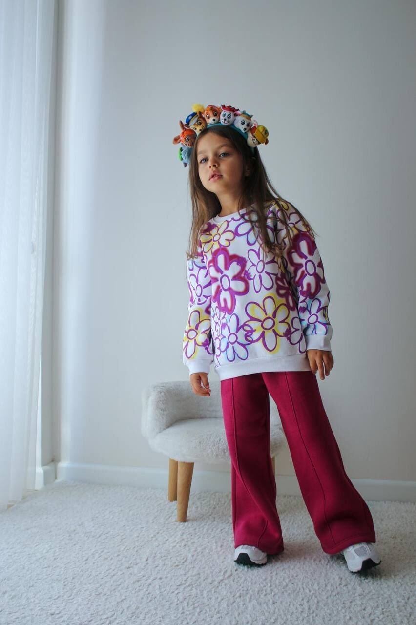 Şardonlu Bol Paça Çiçekli Takım - Pembe