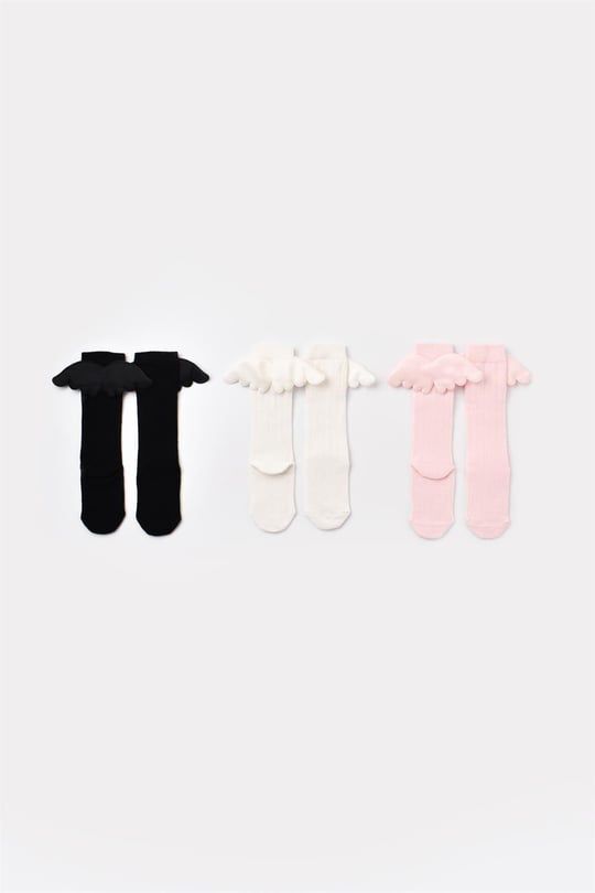 Saten Melek Kanatlı Çorap 3’lü Set