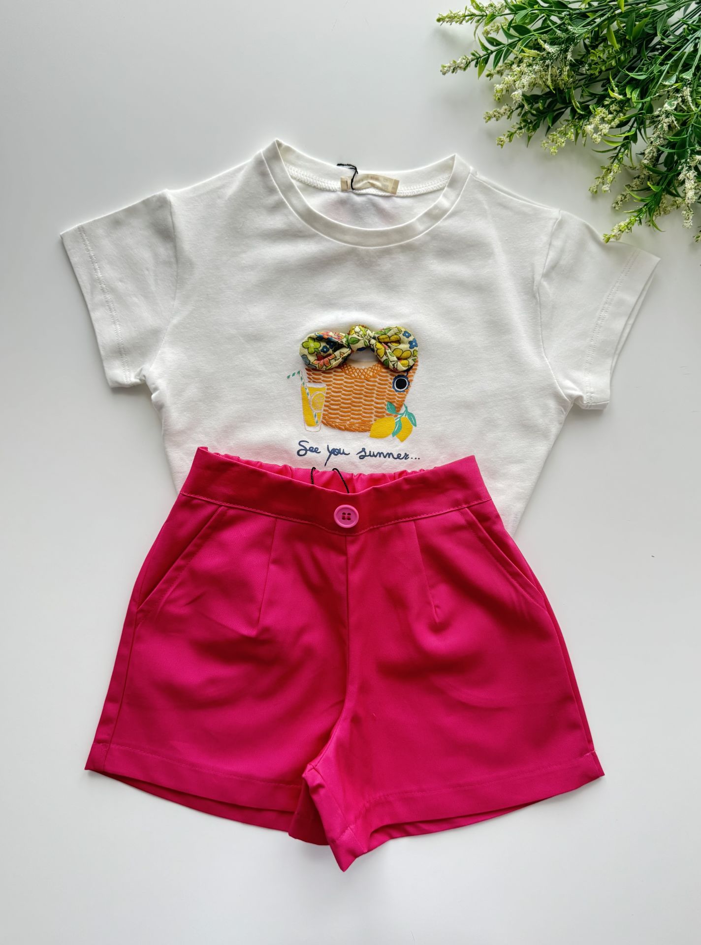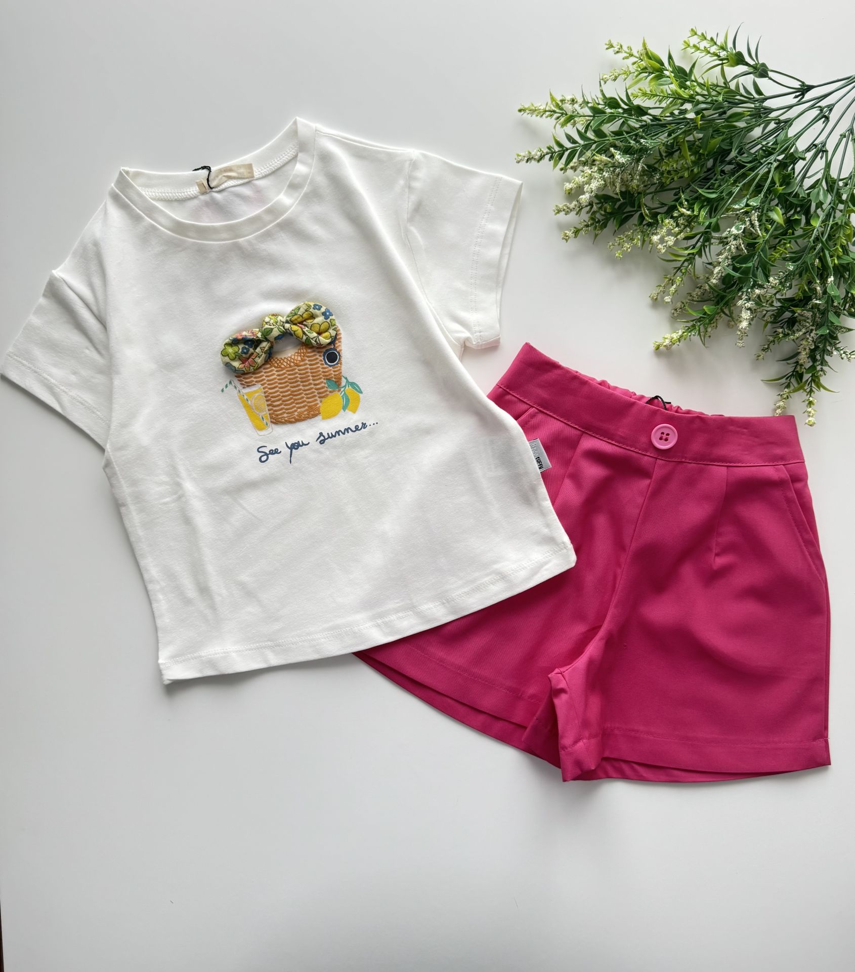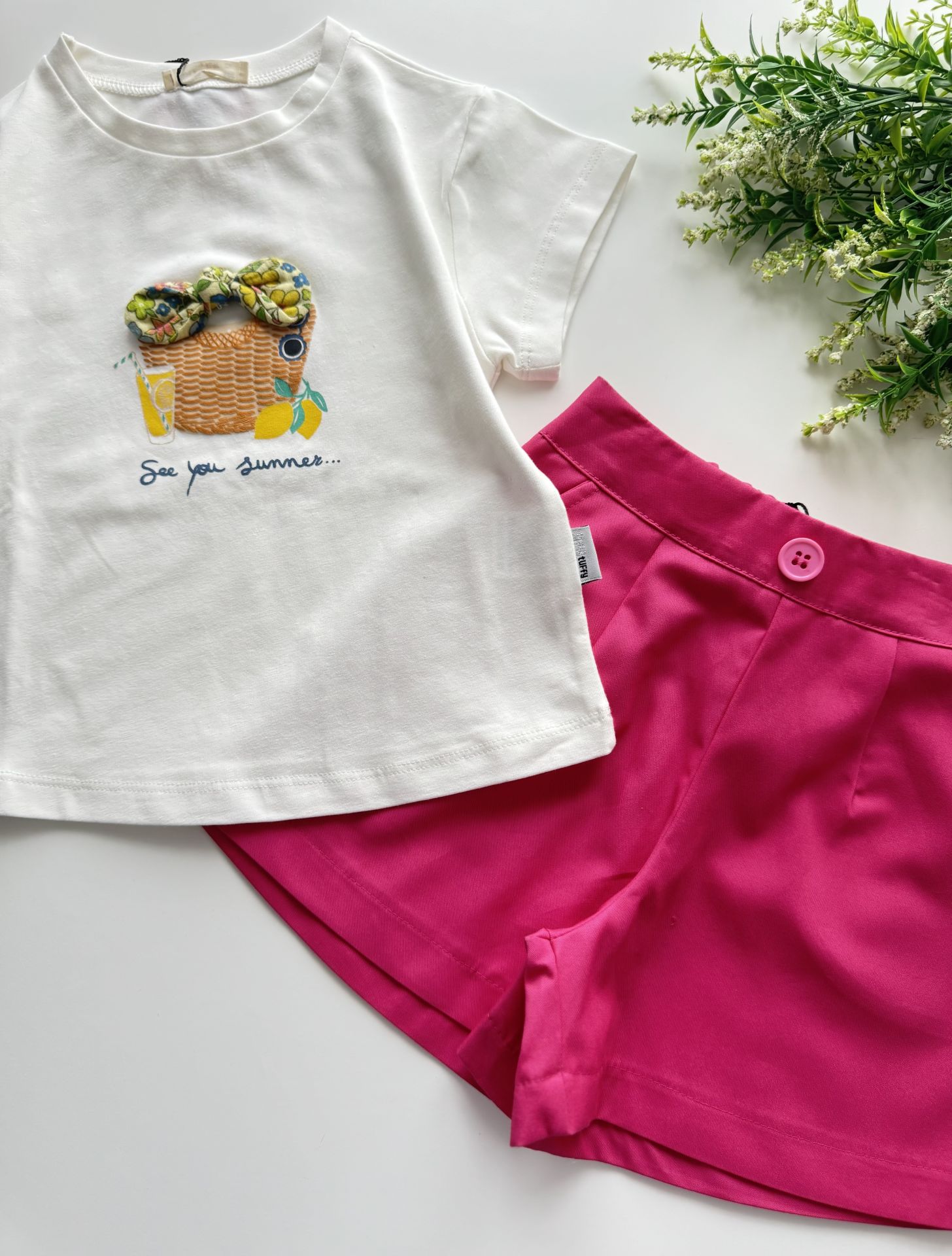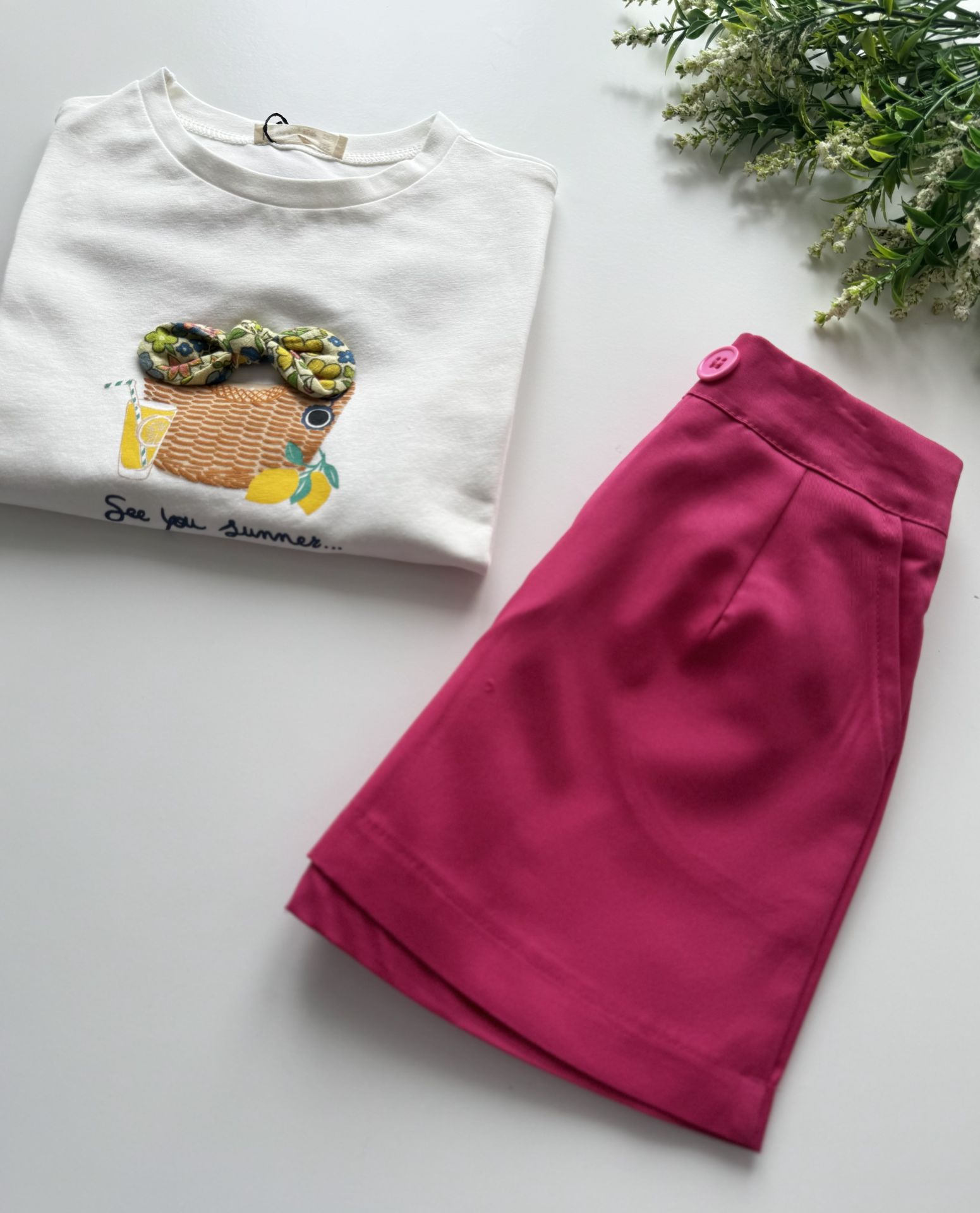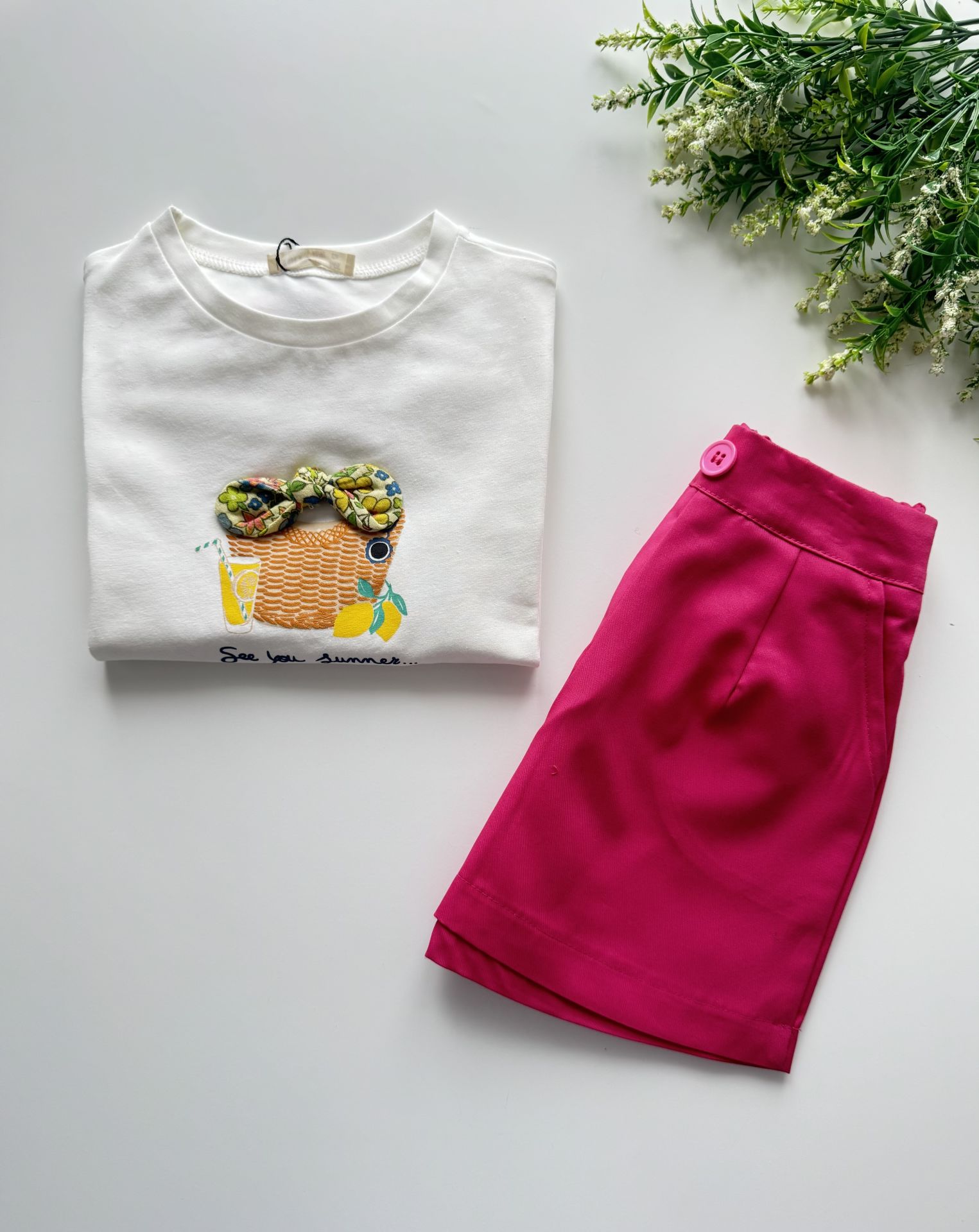 Sepet Aplikeli Şortlu Leyla Takım - Fuşya