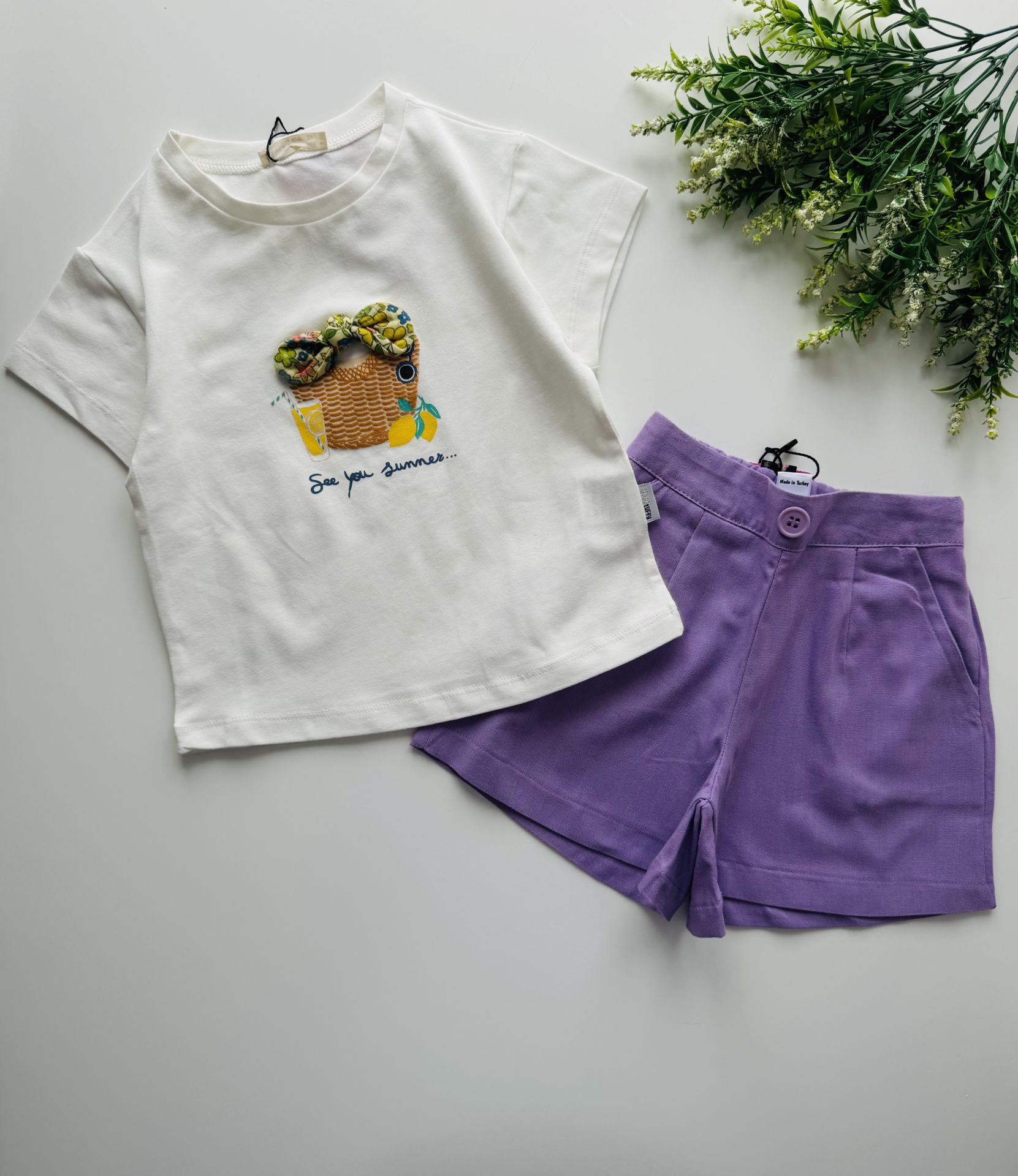 Ürün Bilgisi : Tamamı %100 pamuklu penye tişört üstü bağcık aplikeli tam yaz tişörtü! Aşırı sevimli.. Alt hafif çan gelen keten şort önde yalancı düğmesi arkası tamamen lastikli.. İnanılmaz konfor sağlar