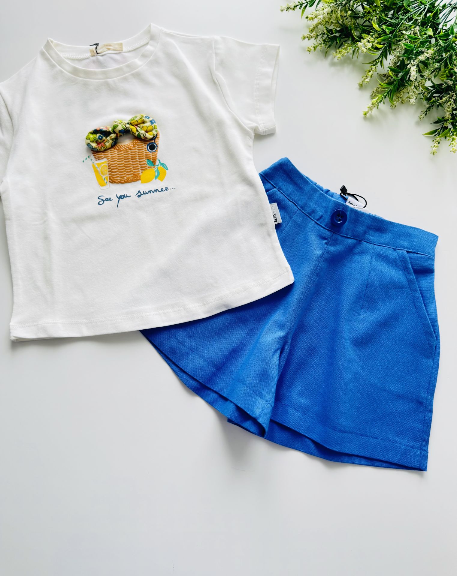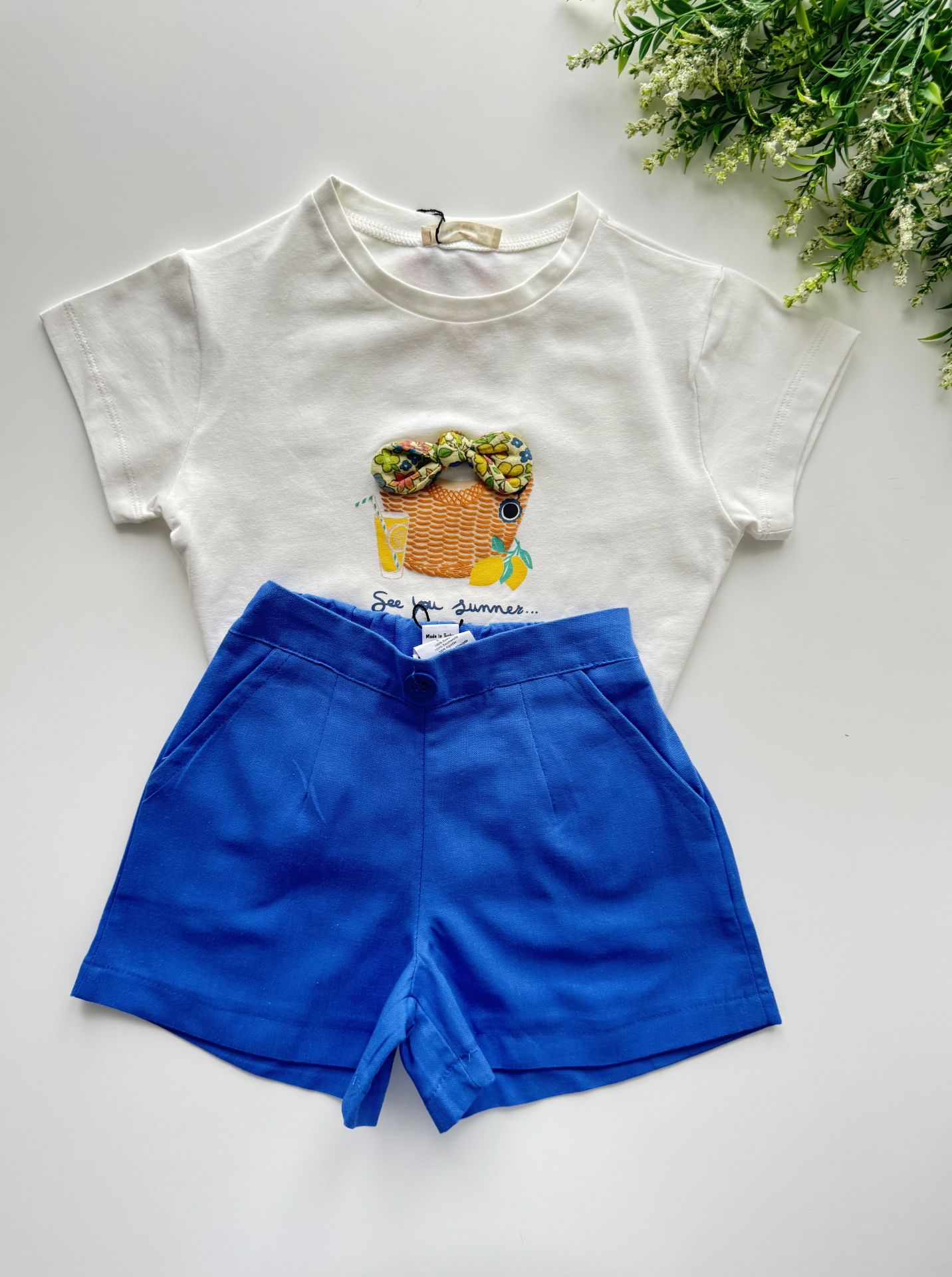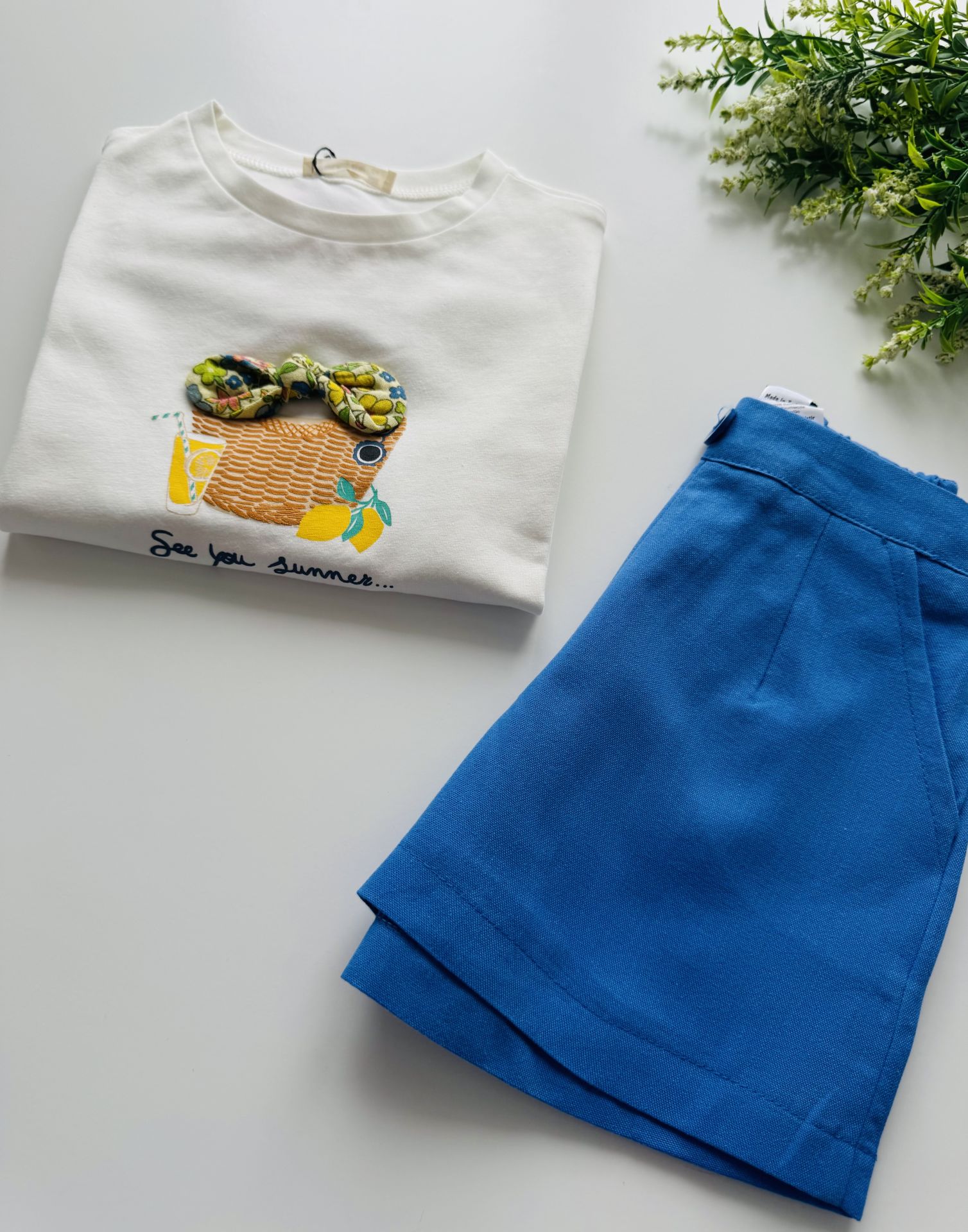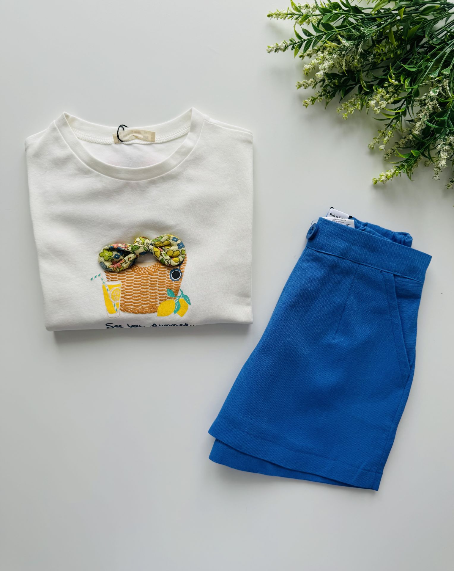 Sepet Aplikeli Şortlu Leyla Takım - Mavi