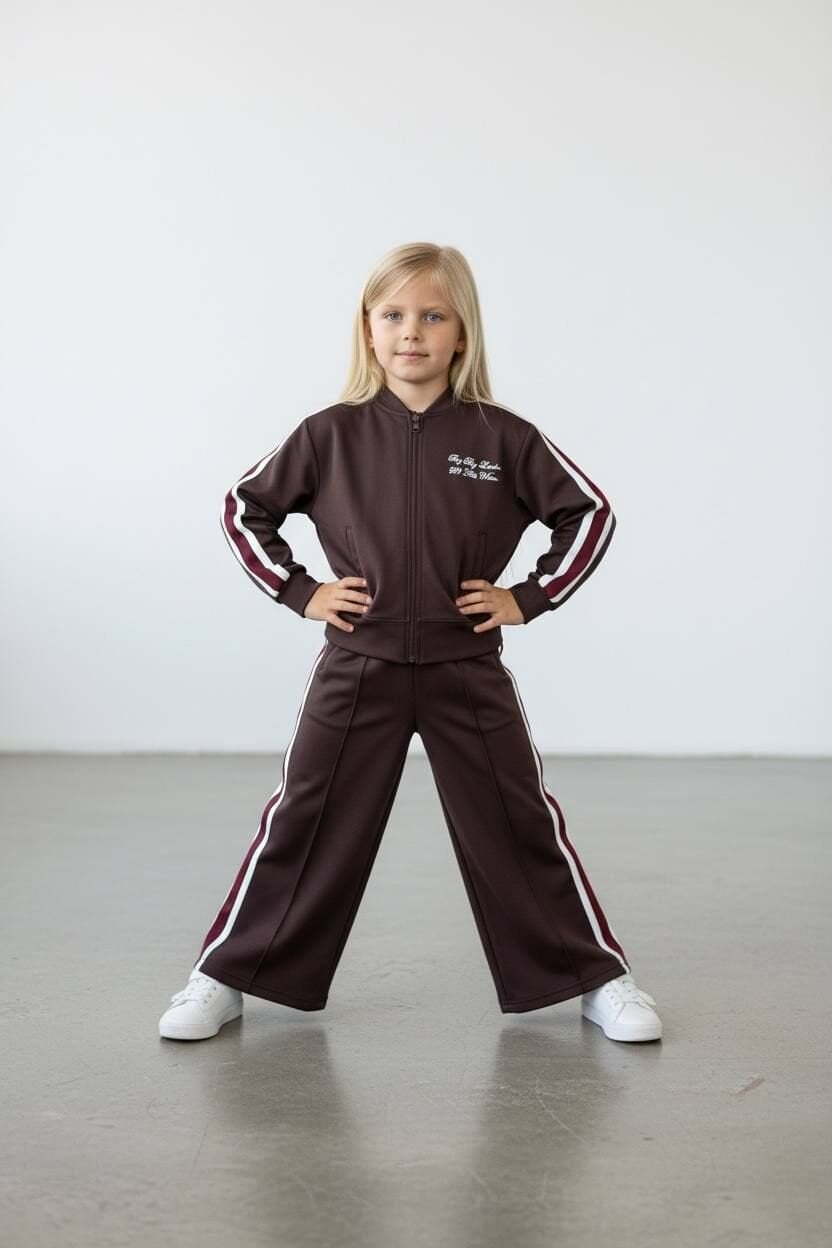Şeritli Fermuarlı Modal Kumaş 2'li Takım - Kahve