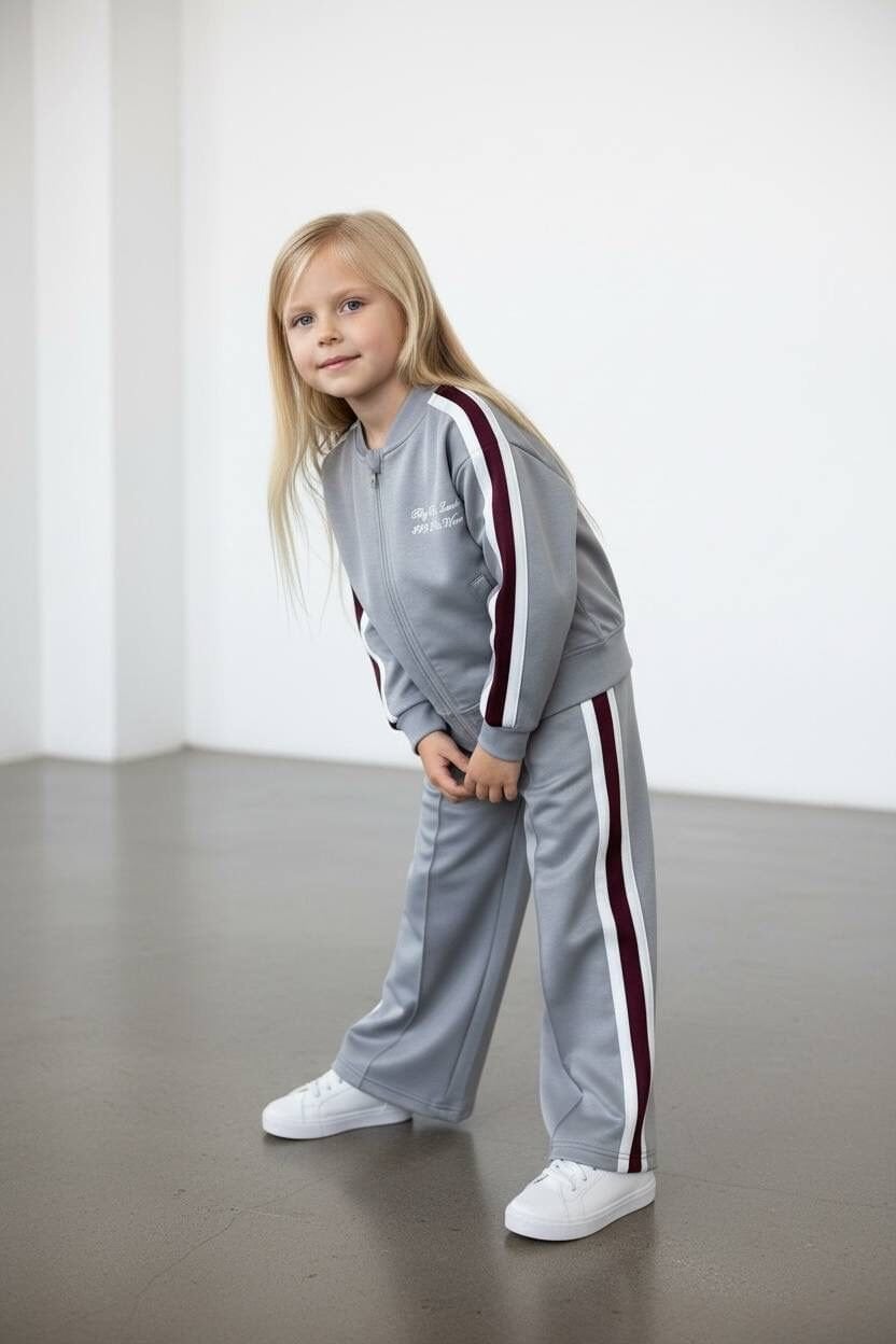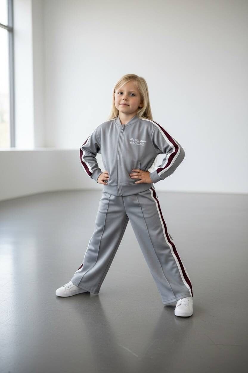 Şeritli Fermuarlı Modal Kumaş 2'li Takım - Gri