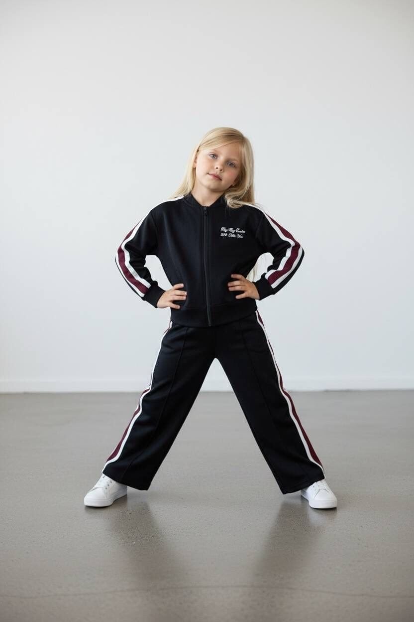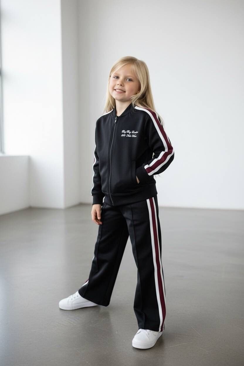 Şeritli Fermuarlı Modal Kumaş 2'li Takım - Siyah