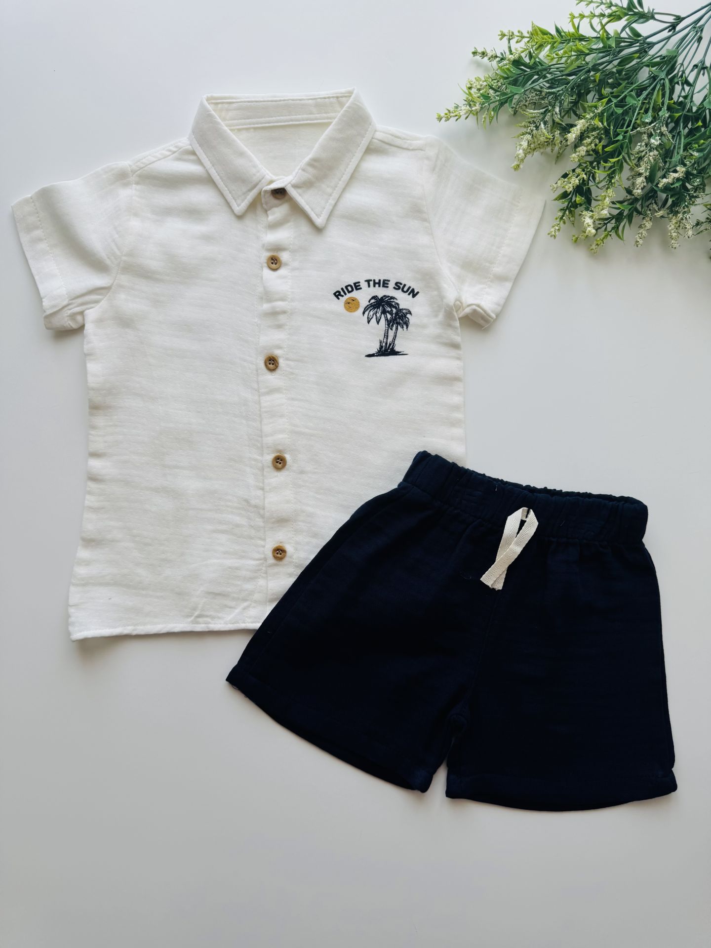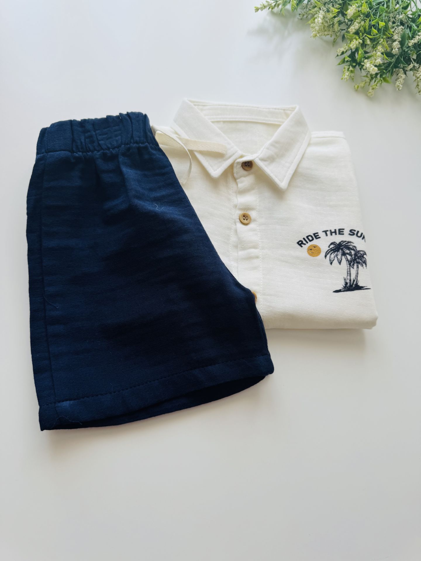 Slogan Baskılı Müslin Ali Takım - Lacivert ( 6 Aydan Başlar )