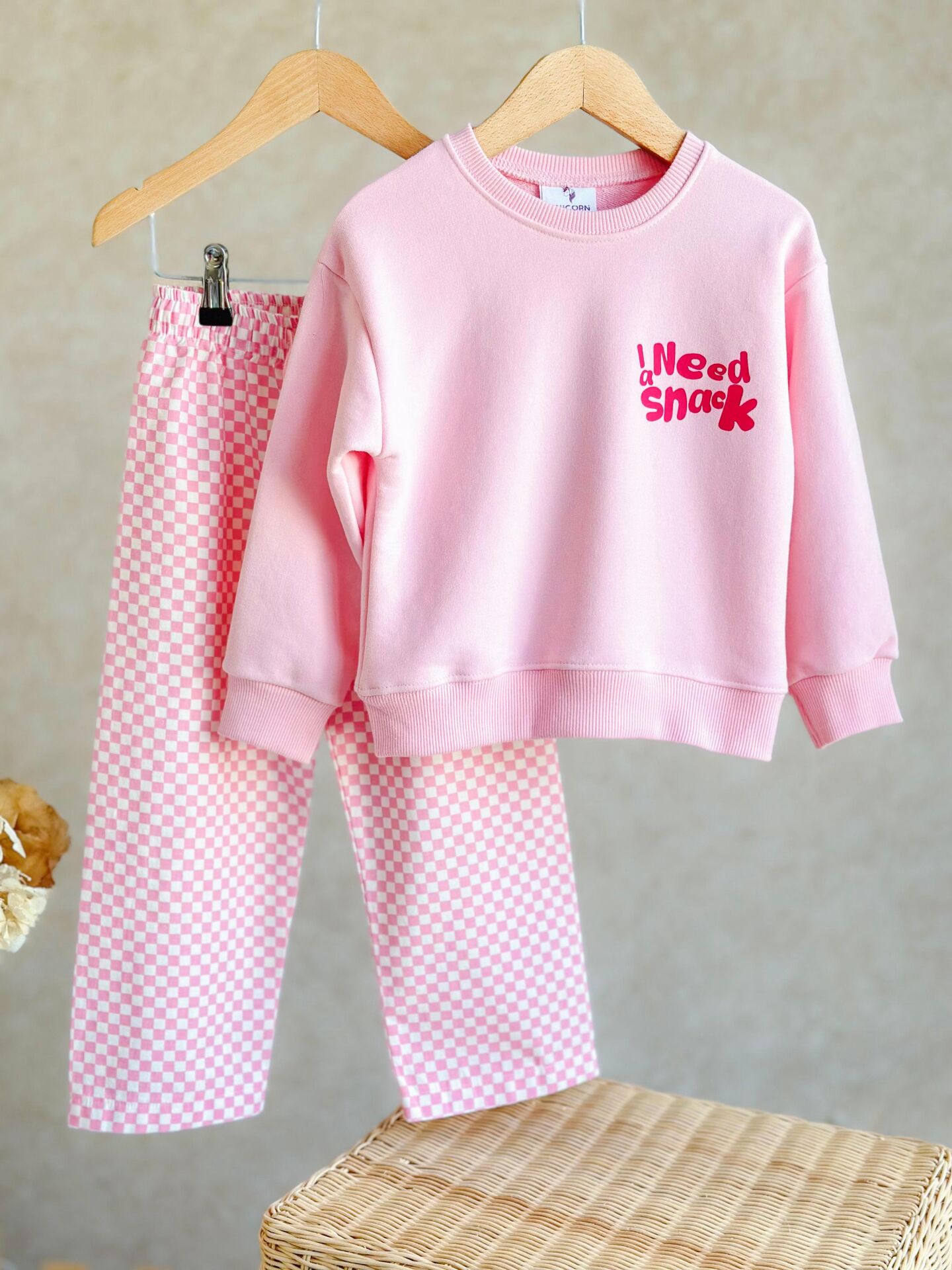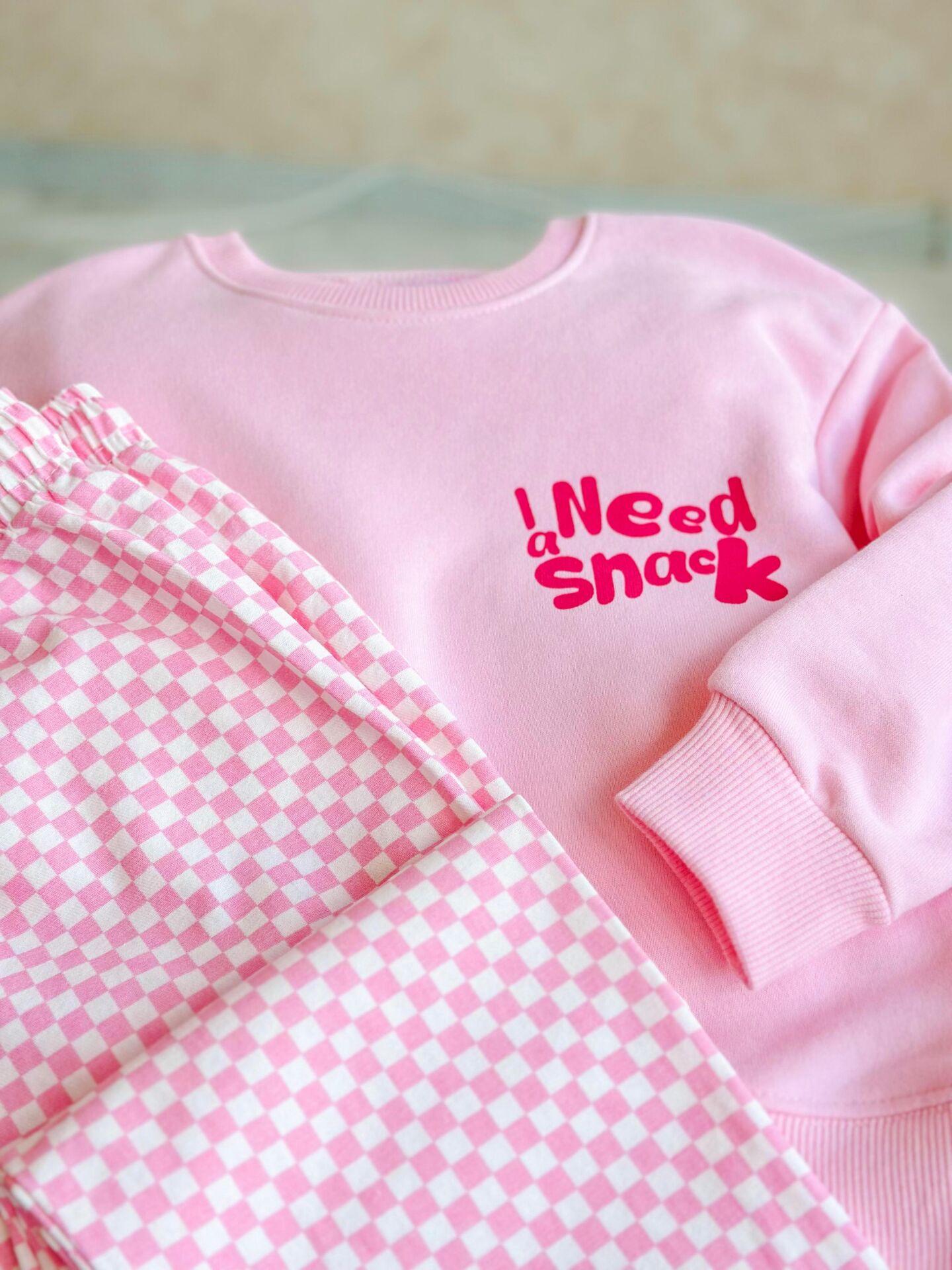 Slogan Snack Damalı Takım - Pembe