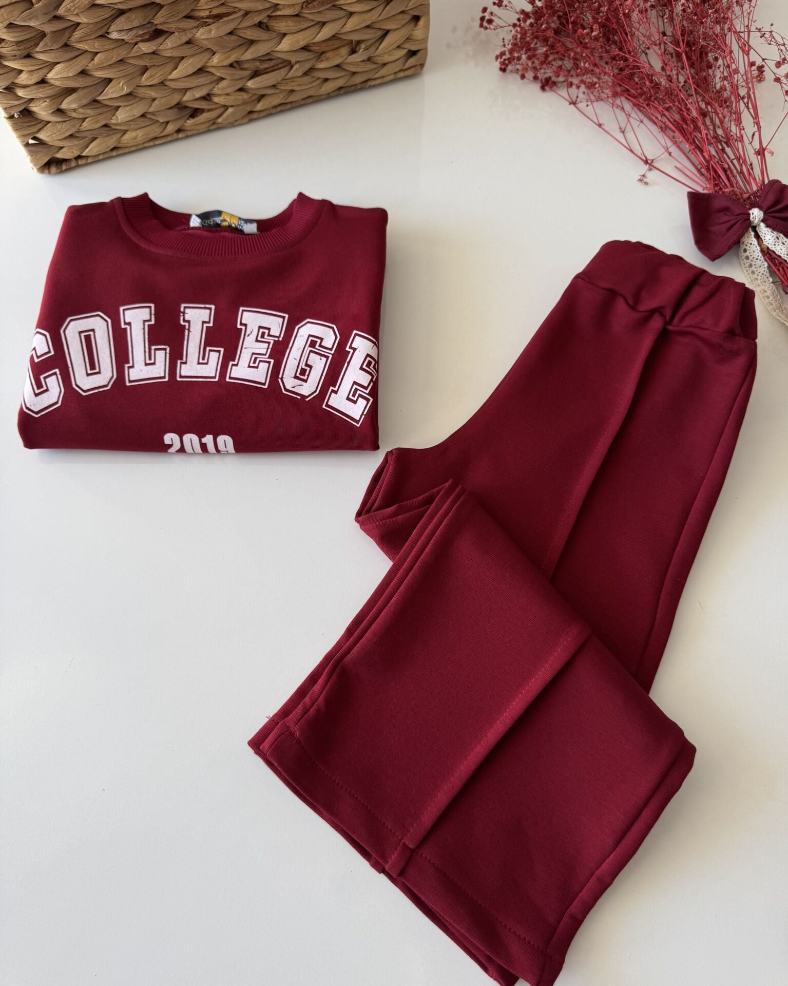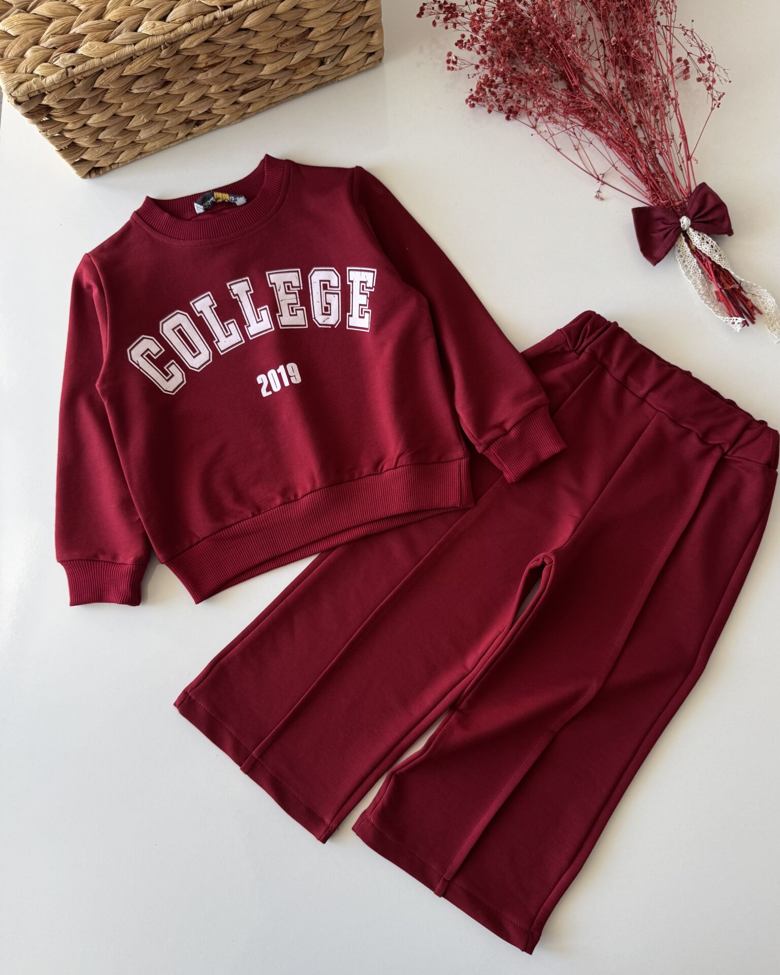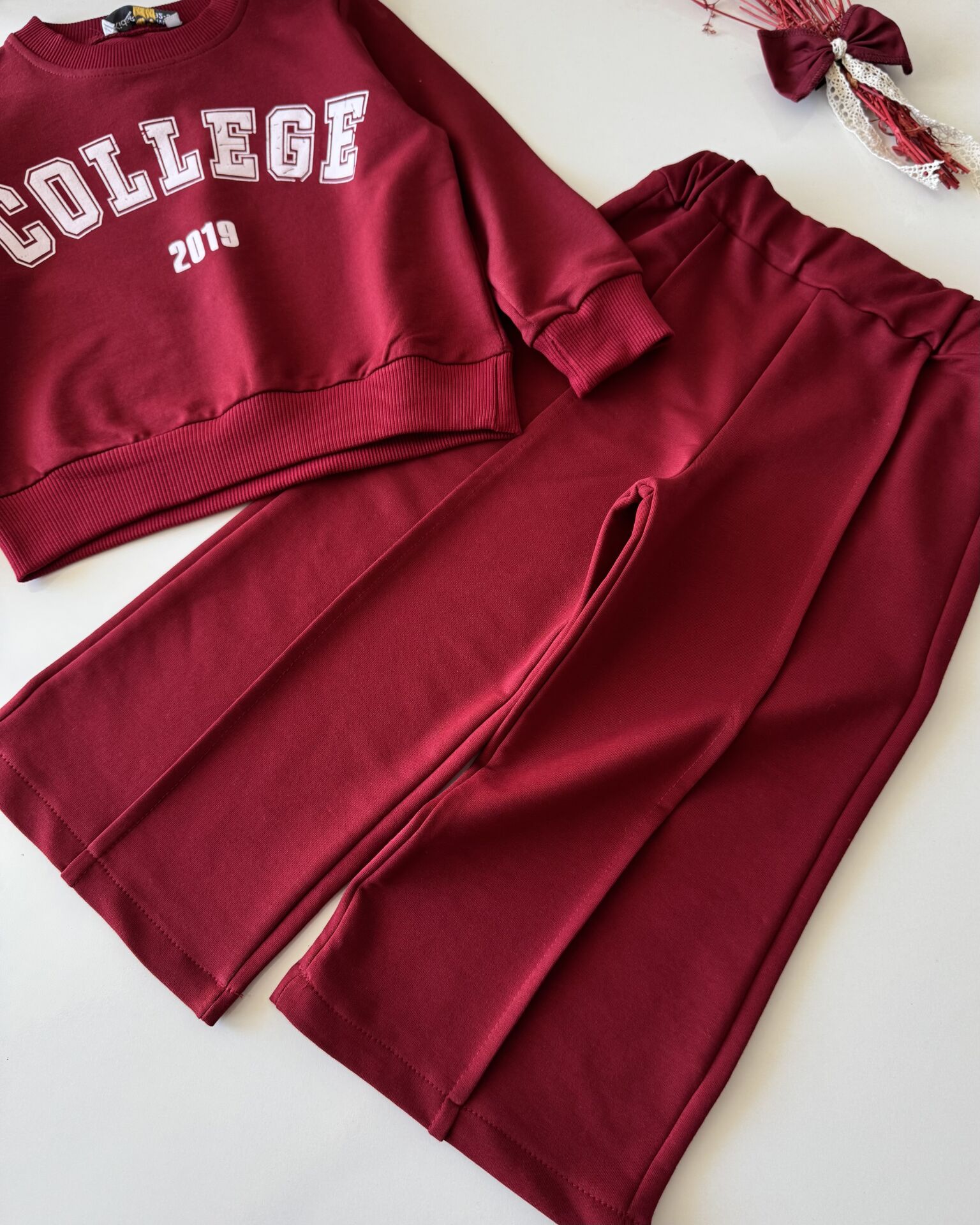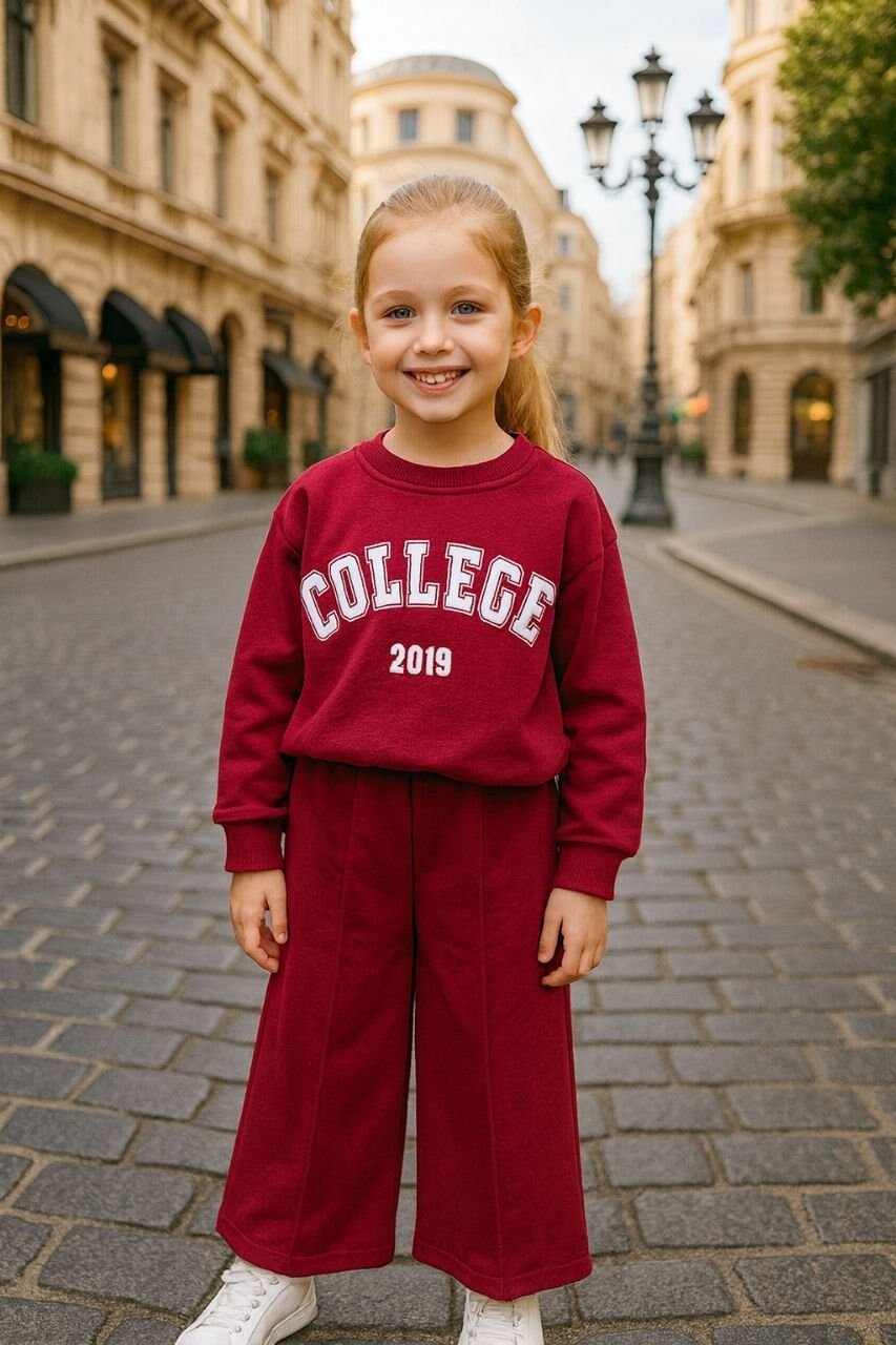 Sloganlı Bol Paça Lina Takım - Bordo