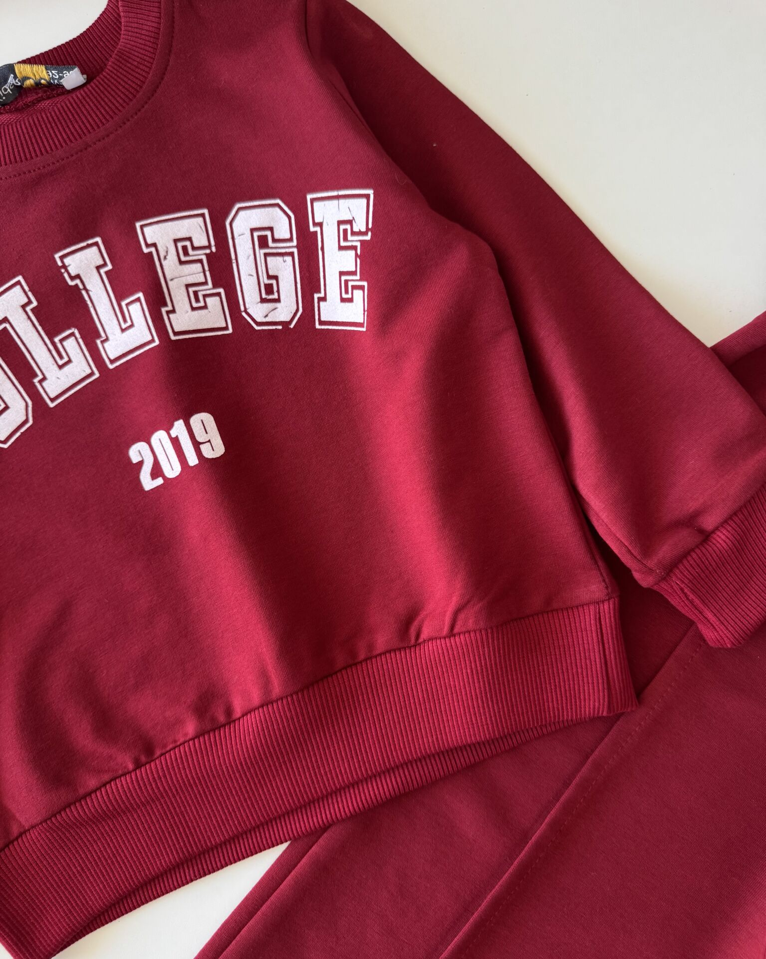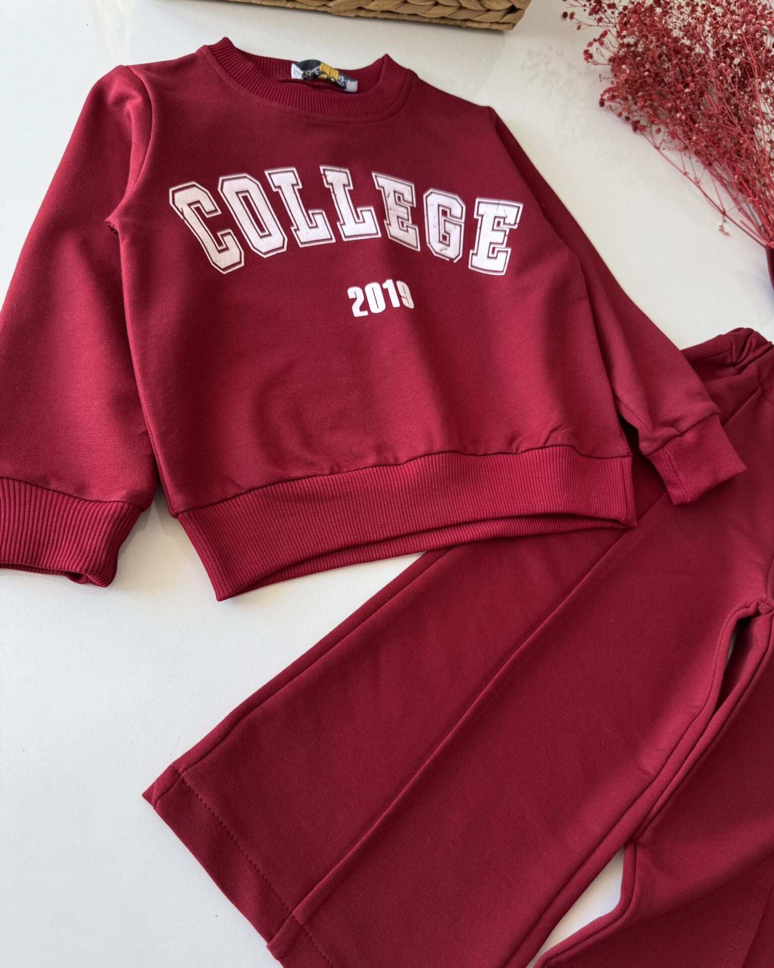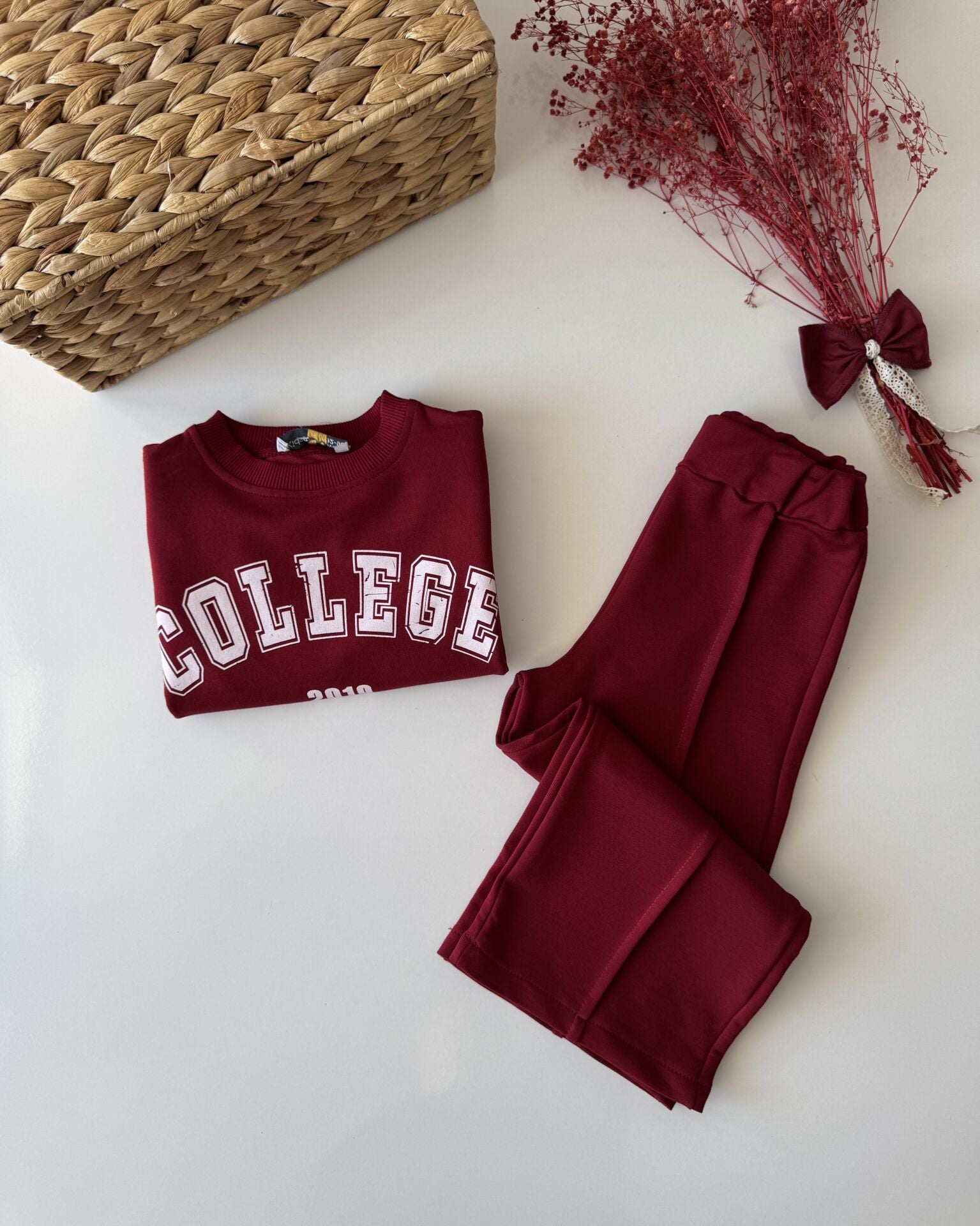 Sloganlı Bol Paça Lina Takım - Bordo
