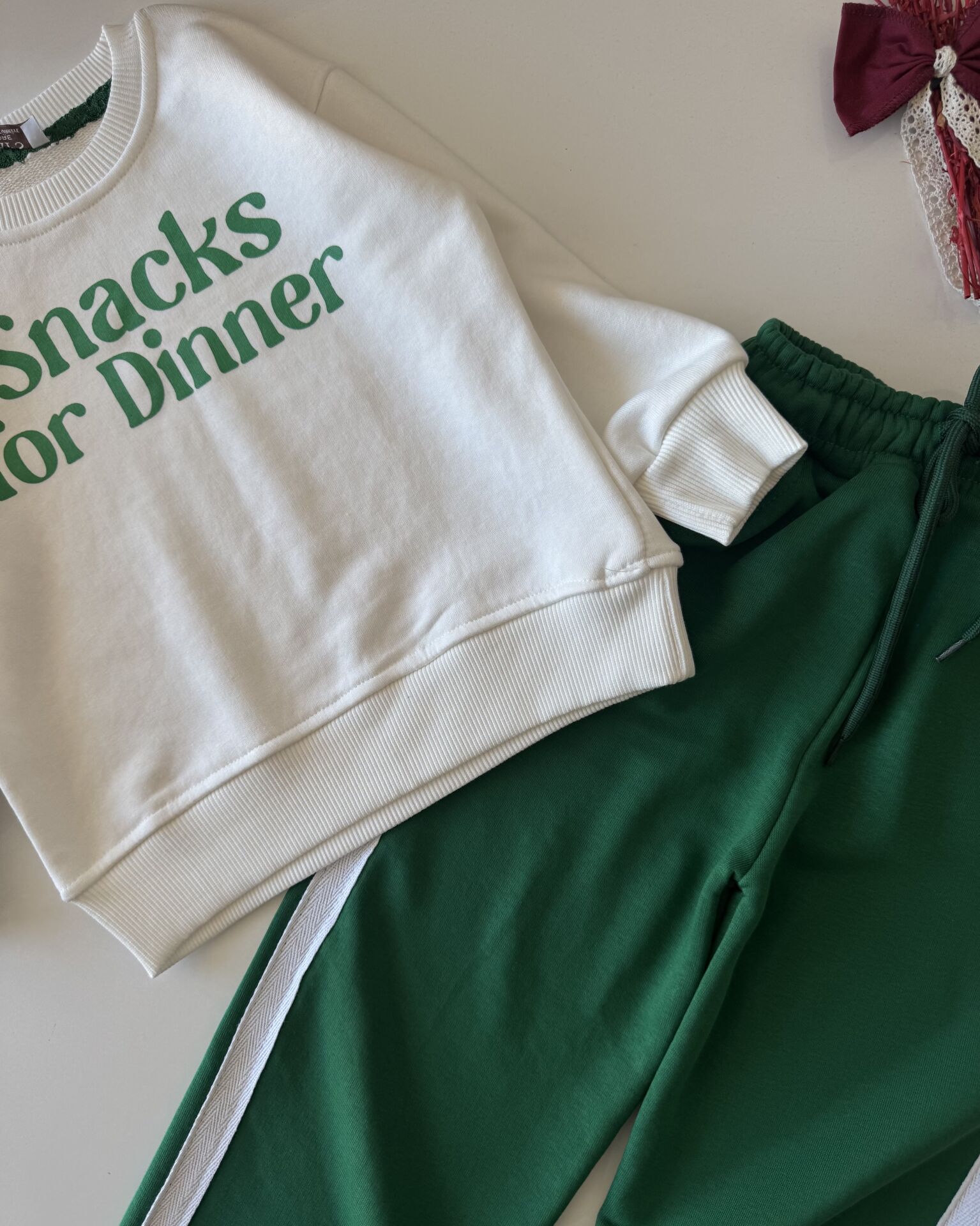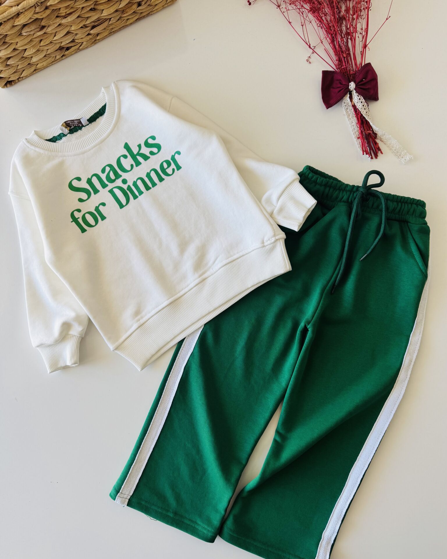 Sloganlı Çizgili Takım - Yeşil Beyaz