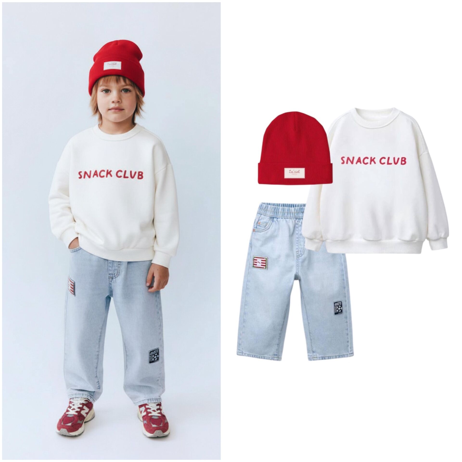 Snack Clup Sloganlı Denim 2'li Takım - Beyaz