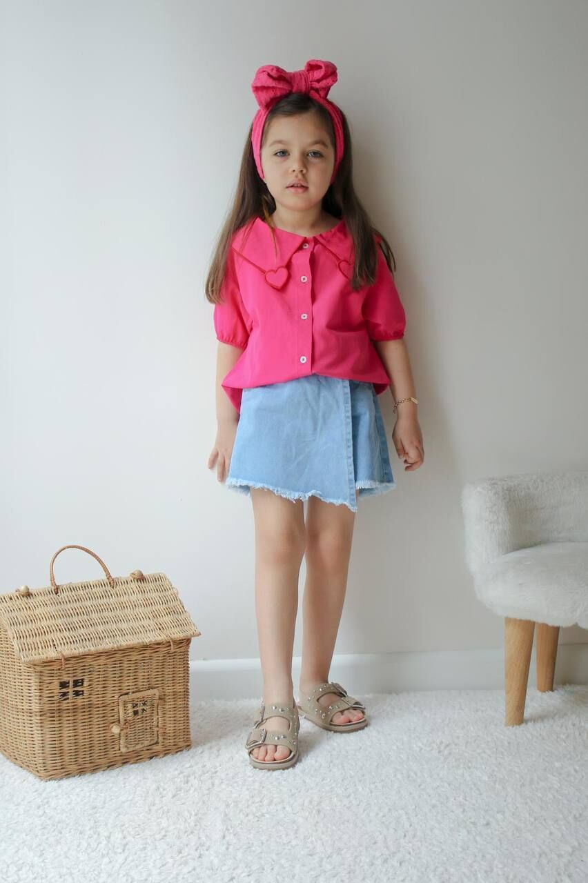 Ürün Bilgisi : Pamuklu poplin kumaş üzrine yaka kalp aplikeli .. Alt esnek şort etek.