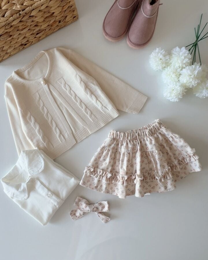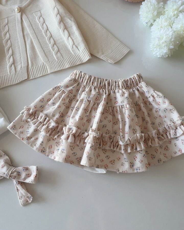 Şort Etekli Pıtır Çiçekli 3'lü Etekli Takım - Krem
