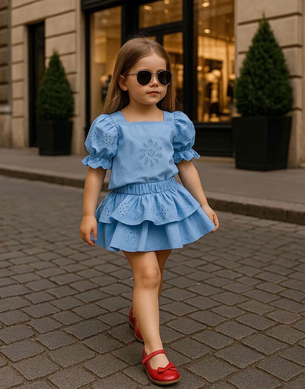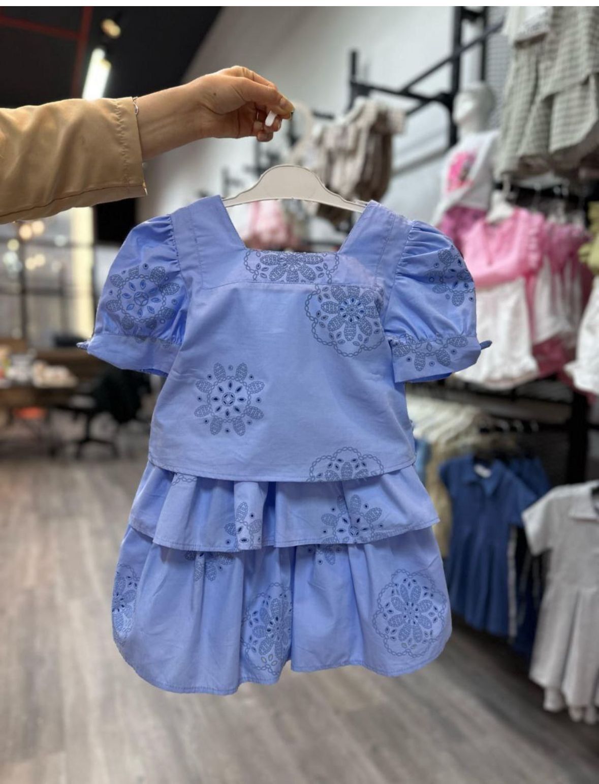 Tamamı Fistolu Etekli İpek Takım - Mavi