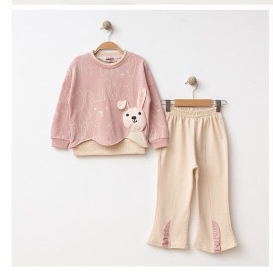 Tavşan Aplikeli Eşofman Takımı - Pembe