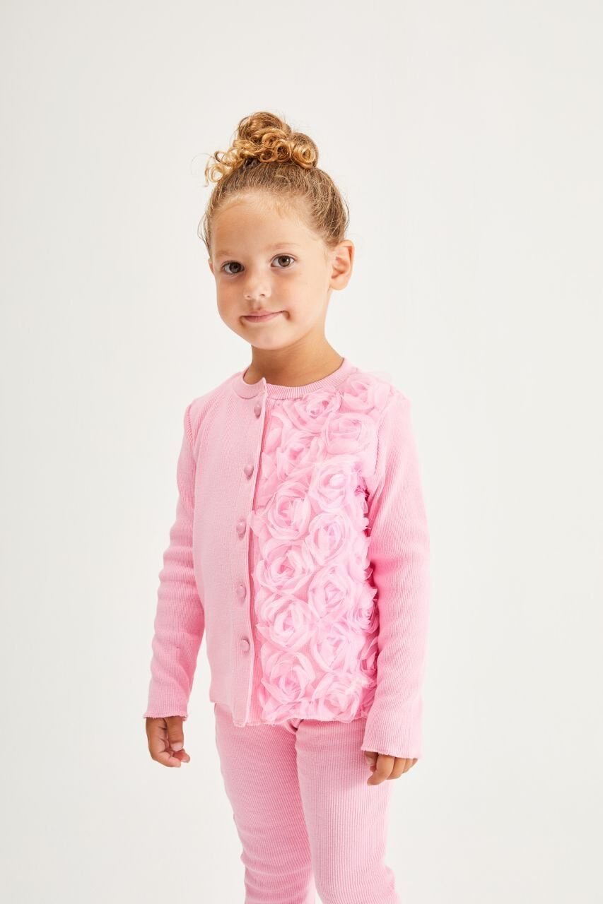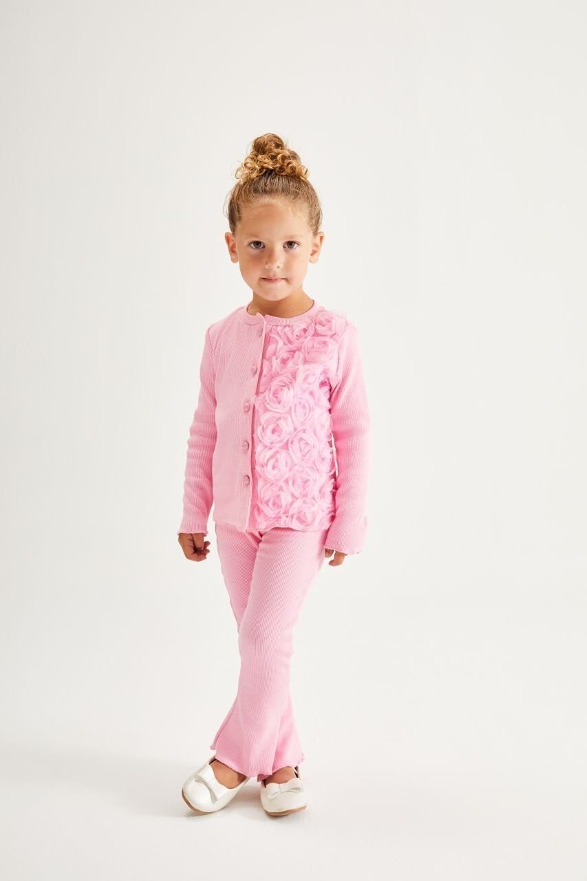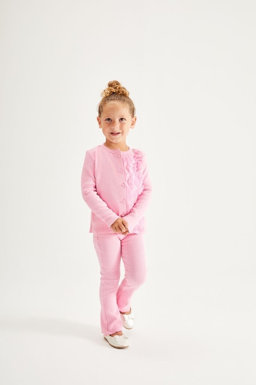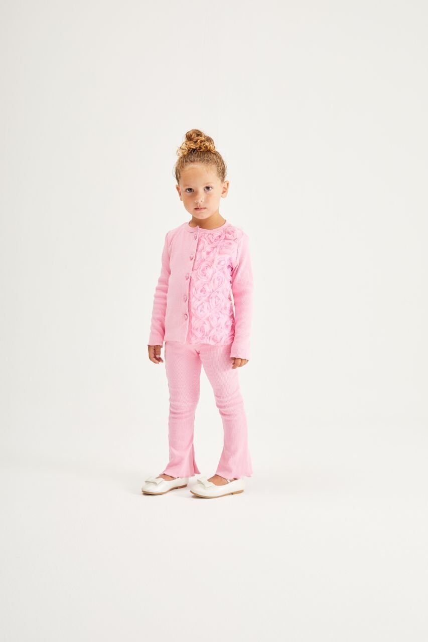 Tek Taraf Gül Aplikeli Ribana Takım - Pembe