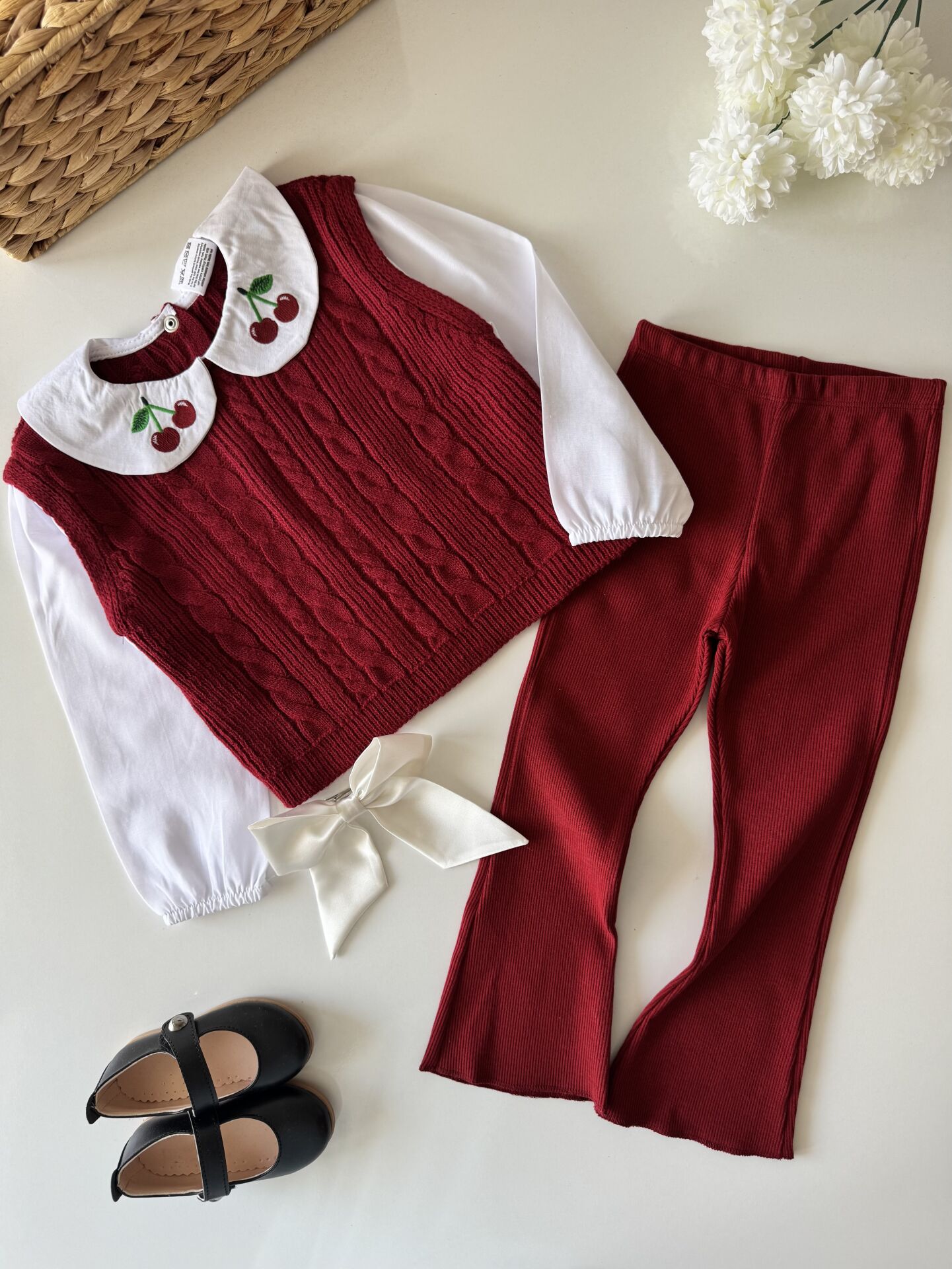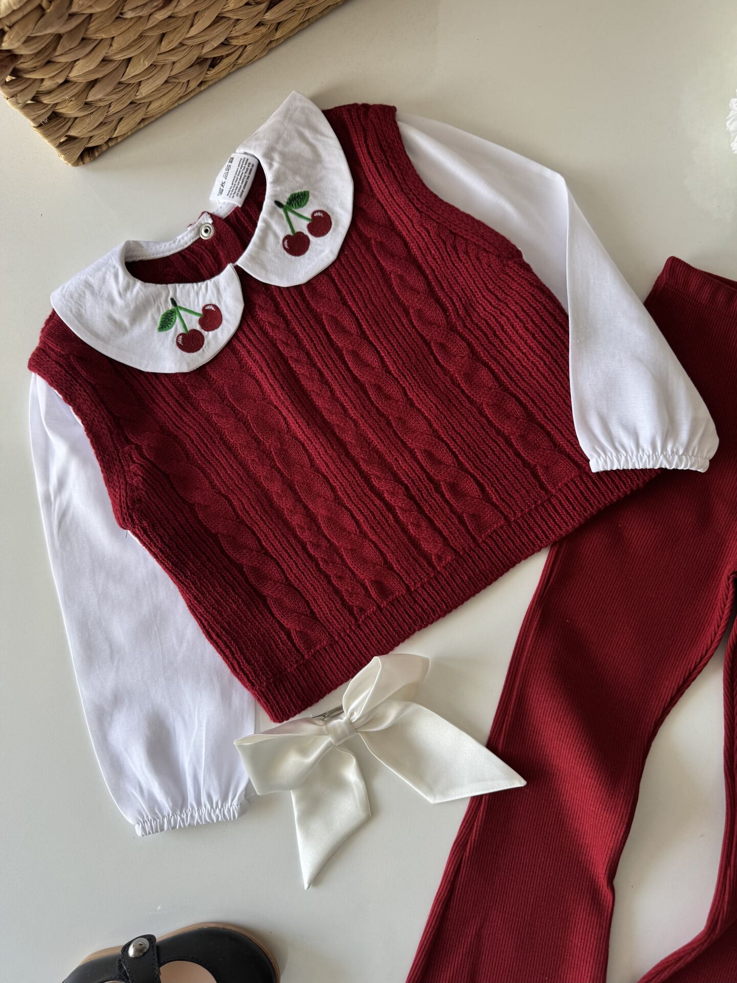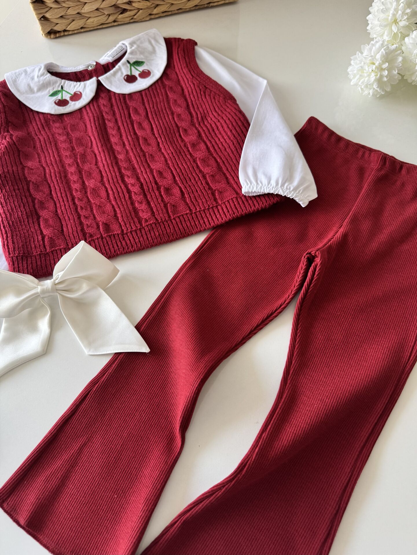 Triko Kiraz Yakalı Taytlı Takım - Bordo