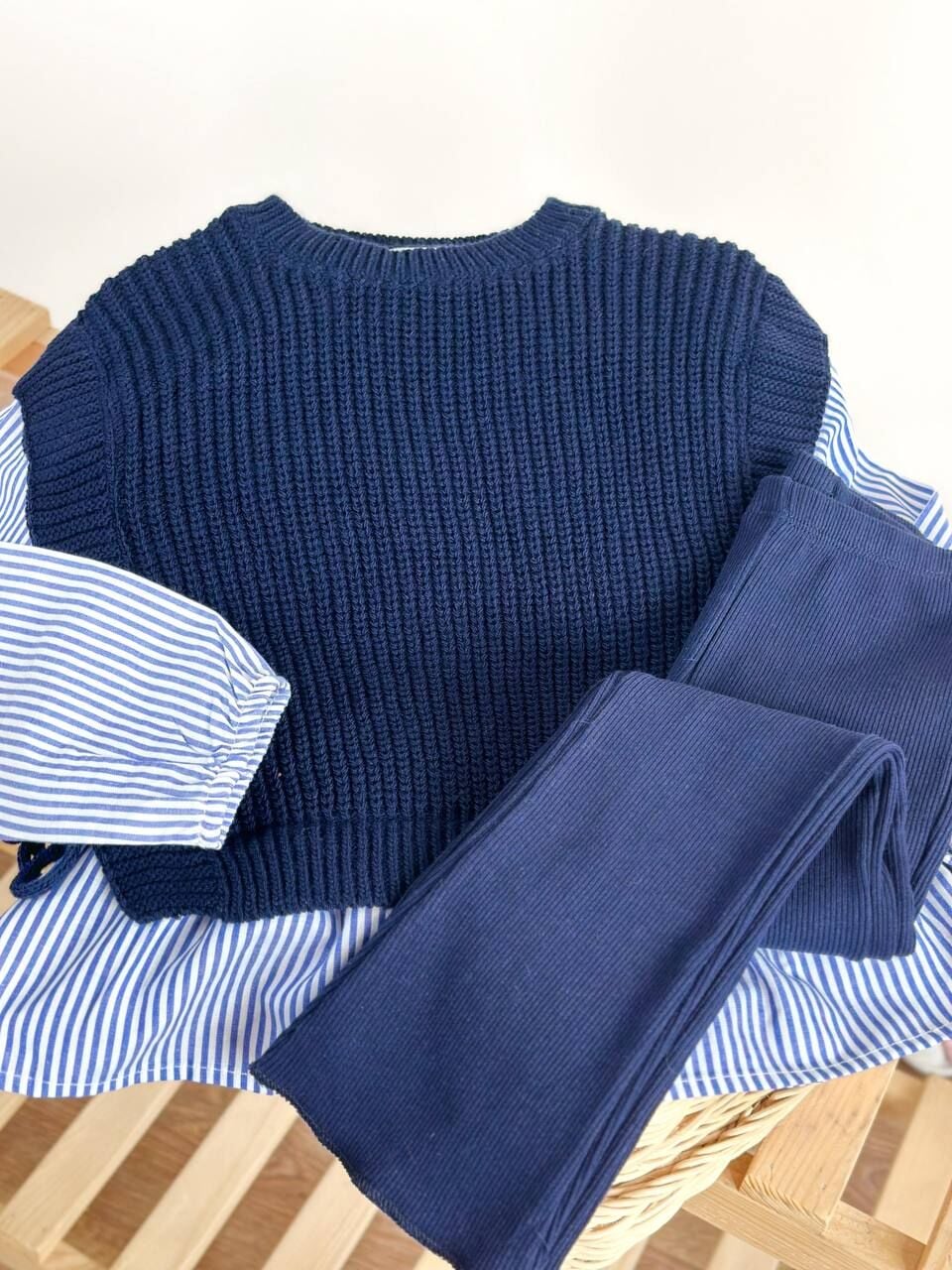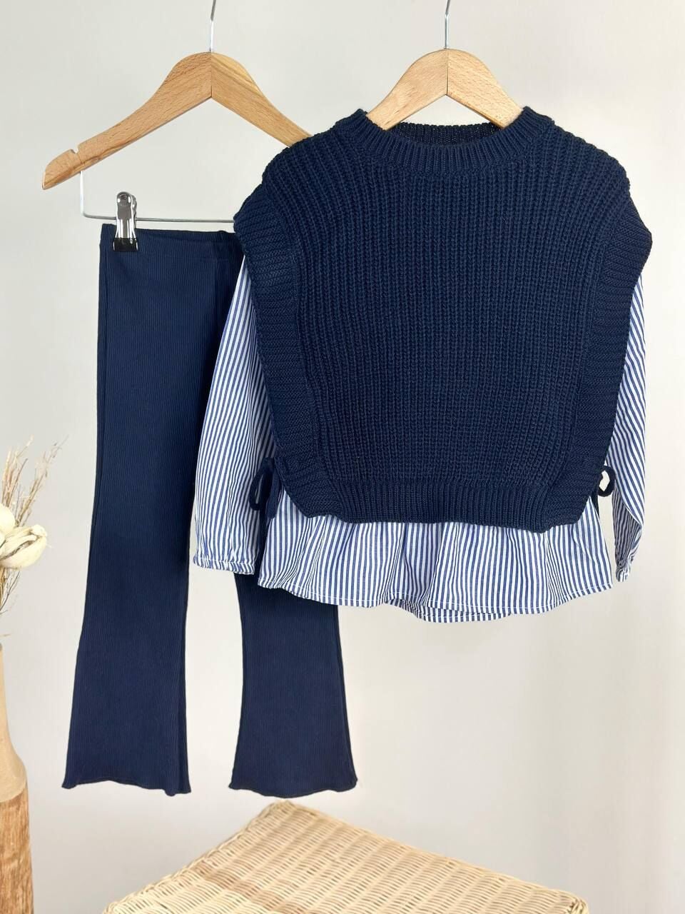 Triko Süveterli Gömlek Detaylı Taytlı Takım - Lacivert