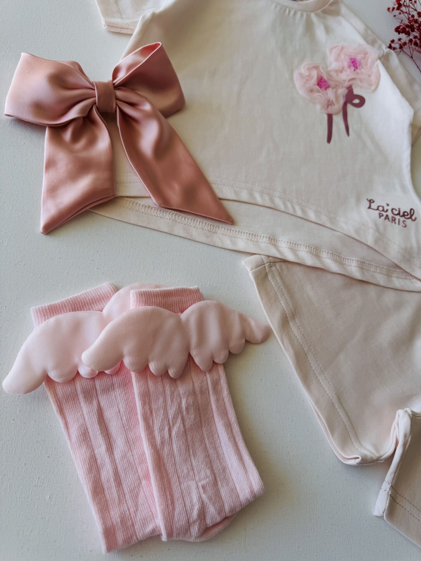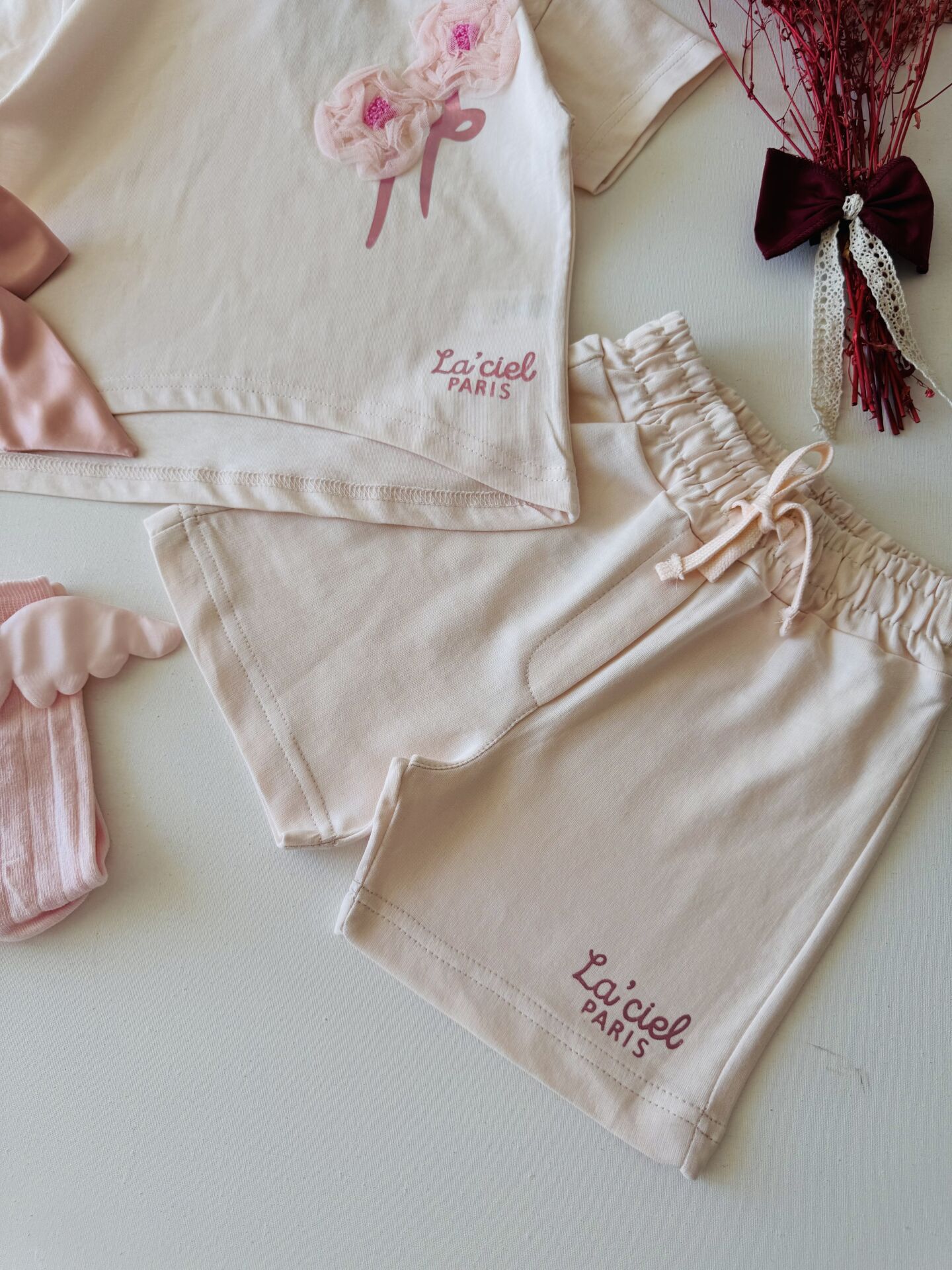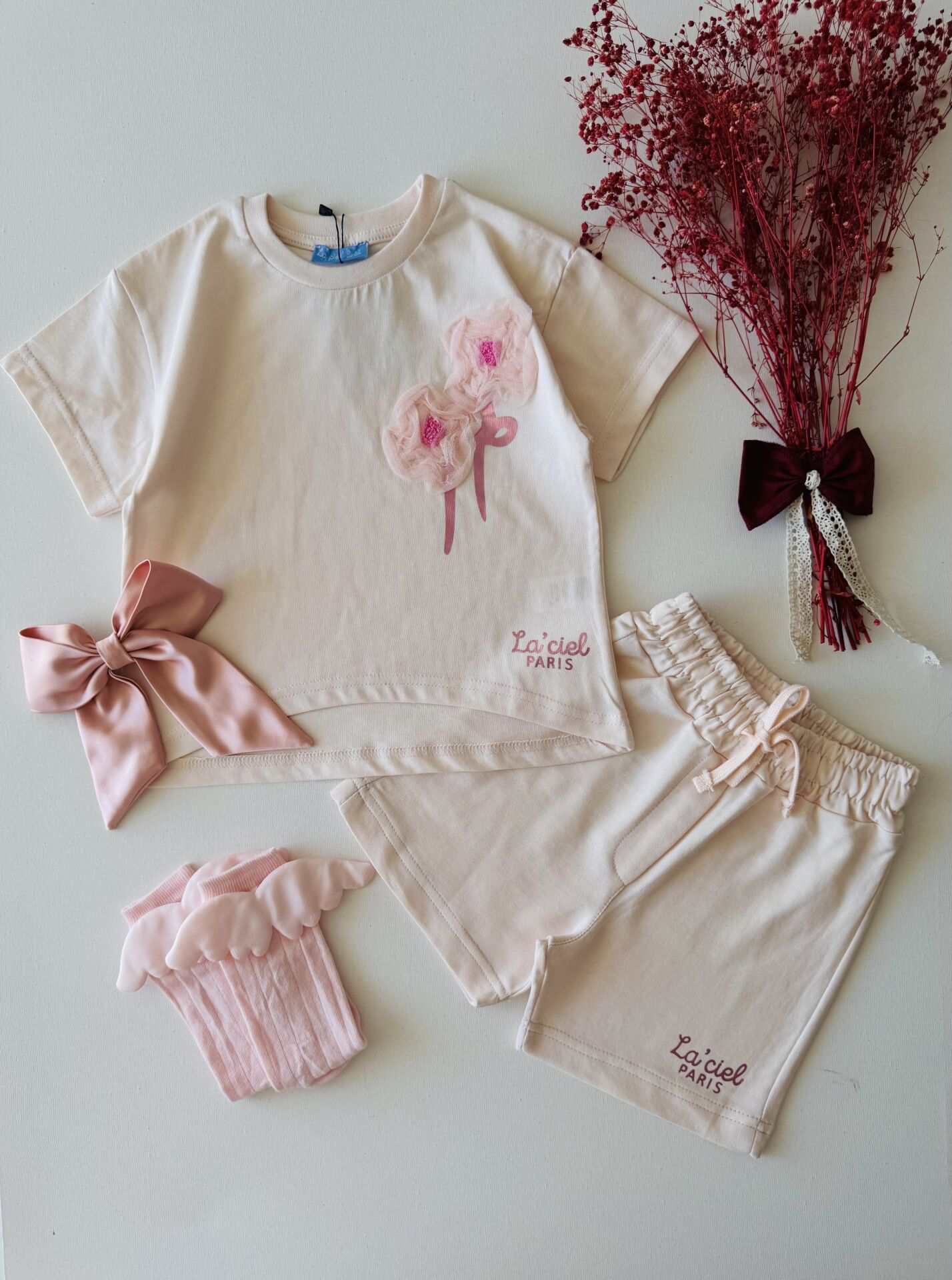 Ürün Bilgisi ; Penye kumal üzeri tül gül aplikeli sloganlı 2'li takım
