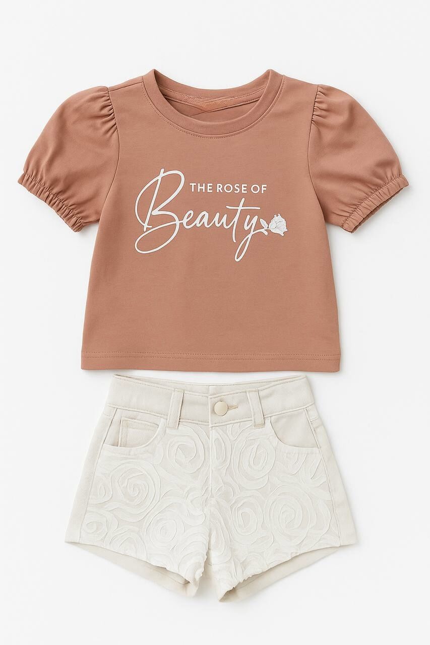 Tül Gül Şortlu Gülce Takım - Bakır