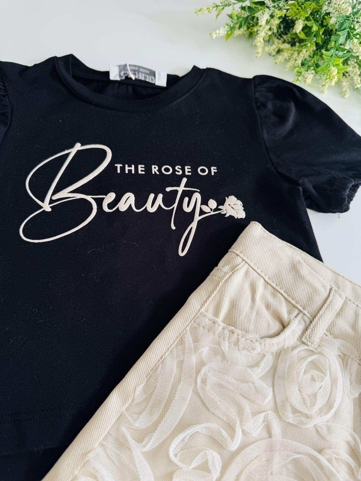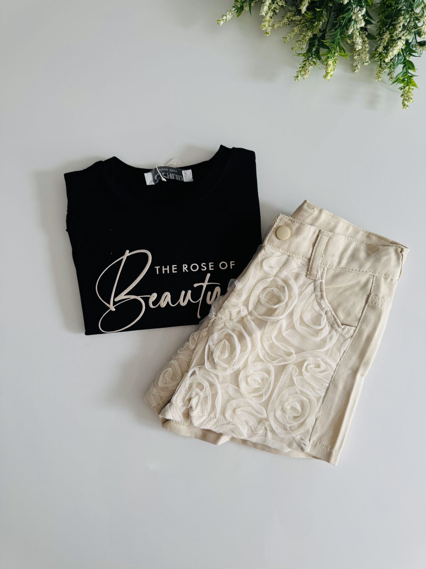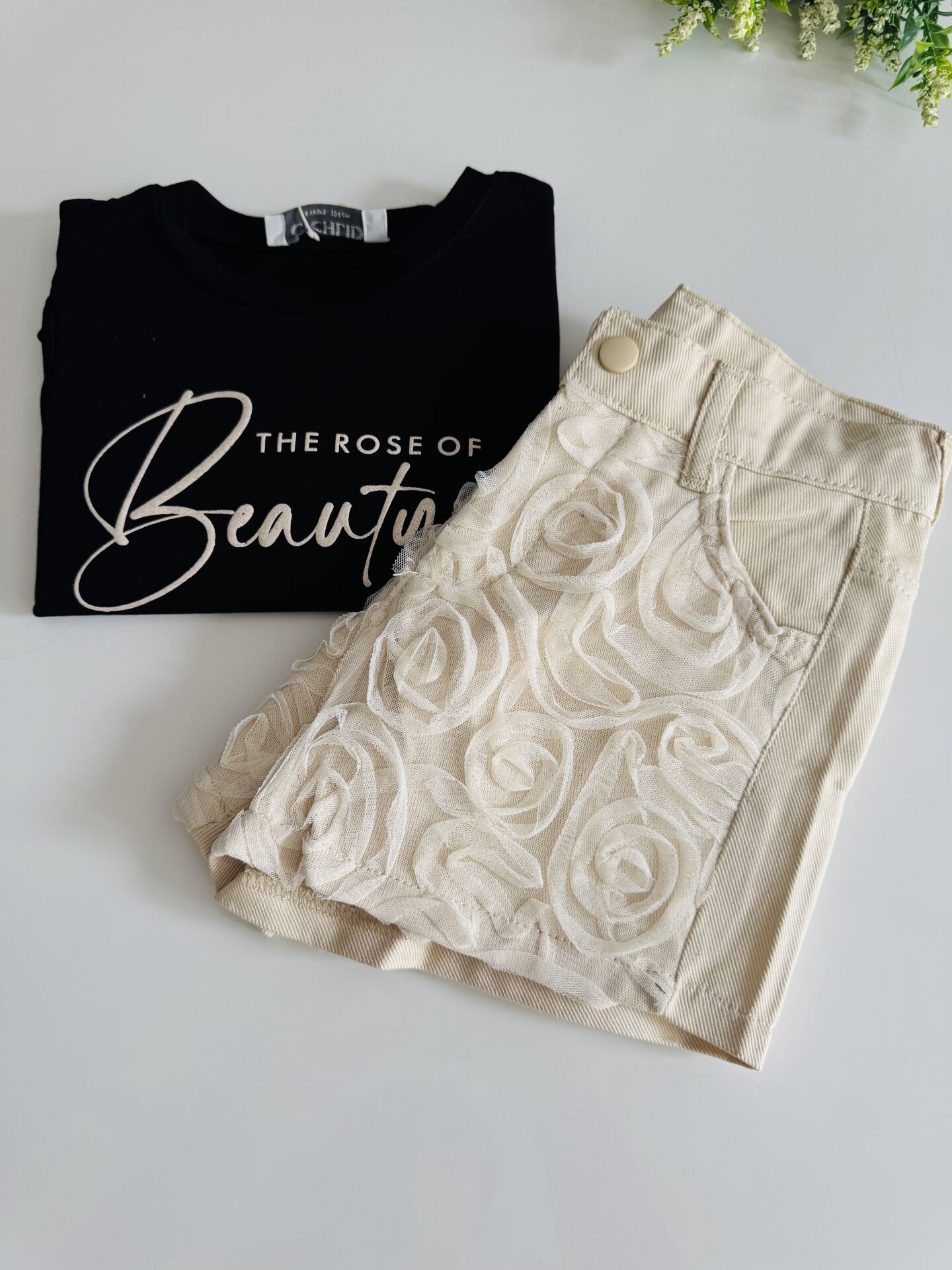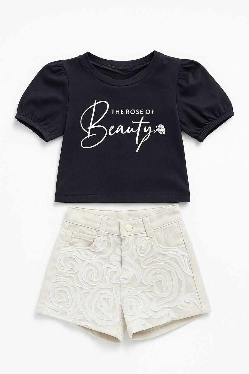 Tül Gül Şortlu Gülce Takım - Siyah
