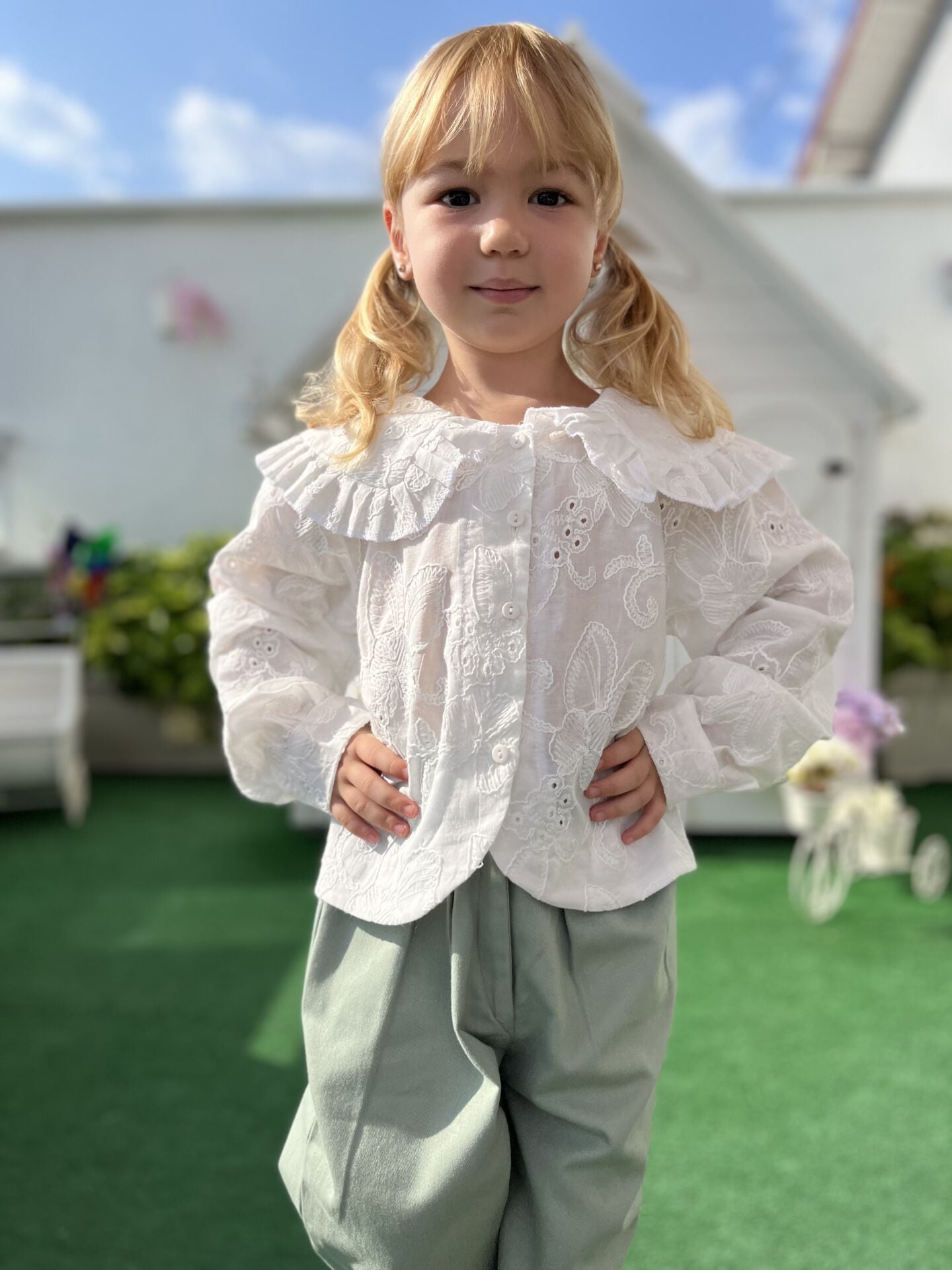 Vintage Fistolu Asya Gömlek - Beyaz