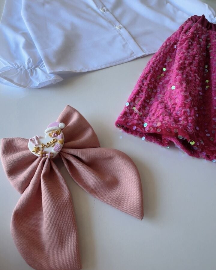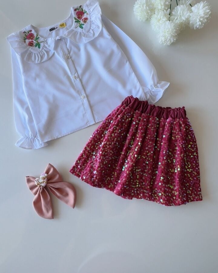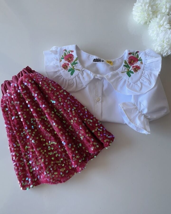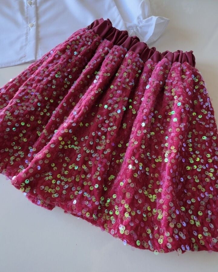 ‣ Gömlek poplin kumaş, etek kadife üstü pul payet