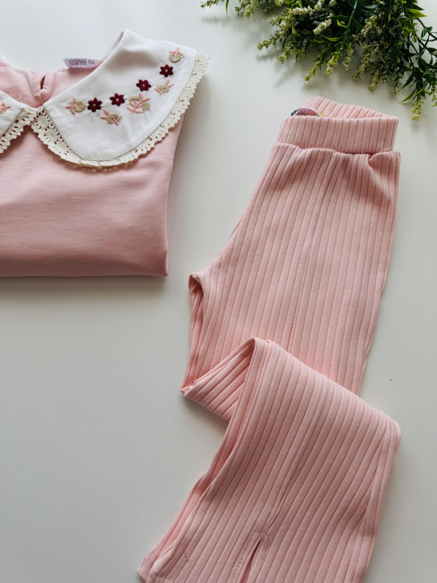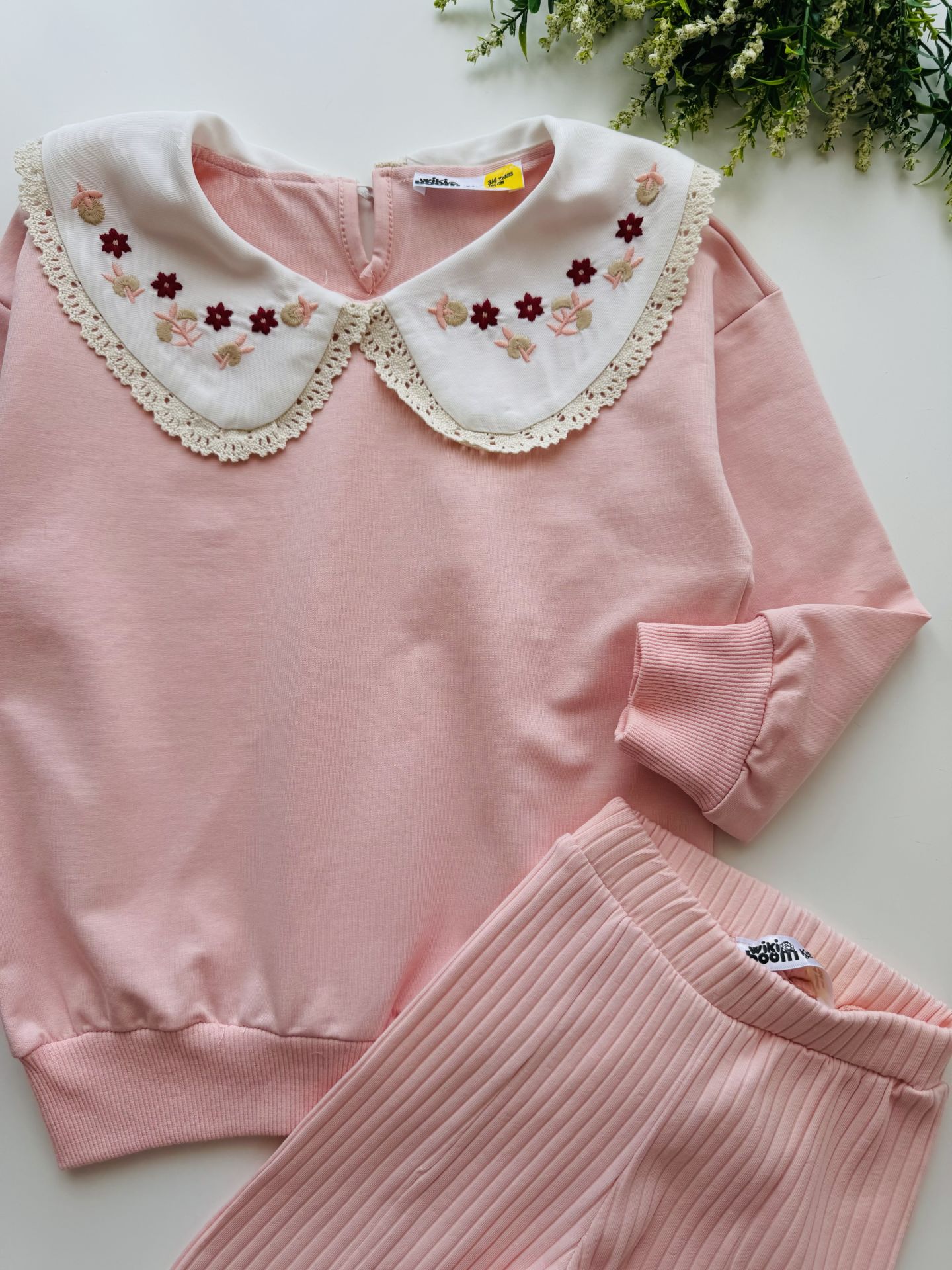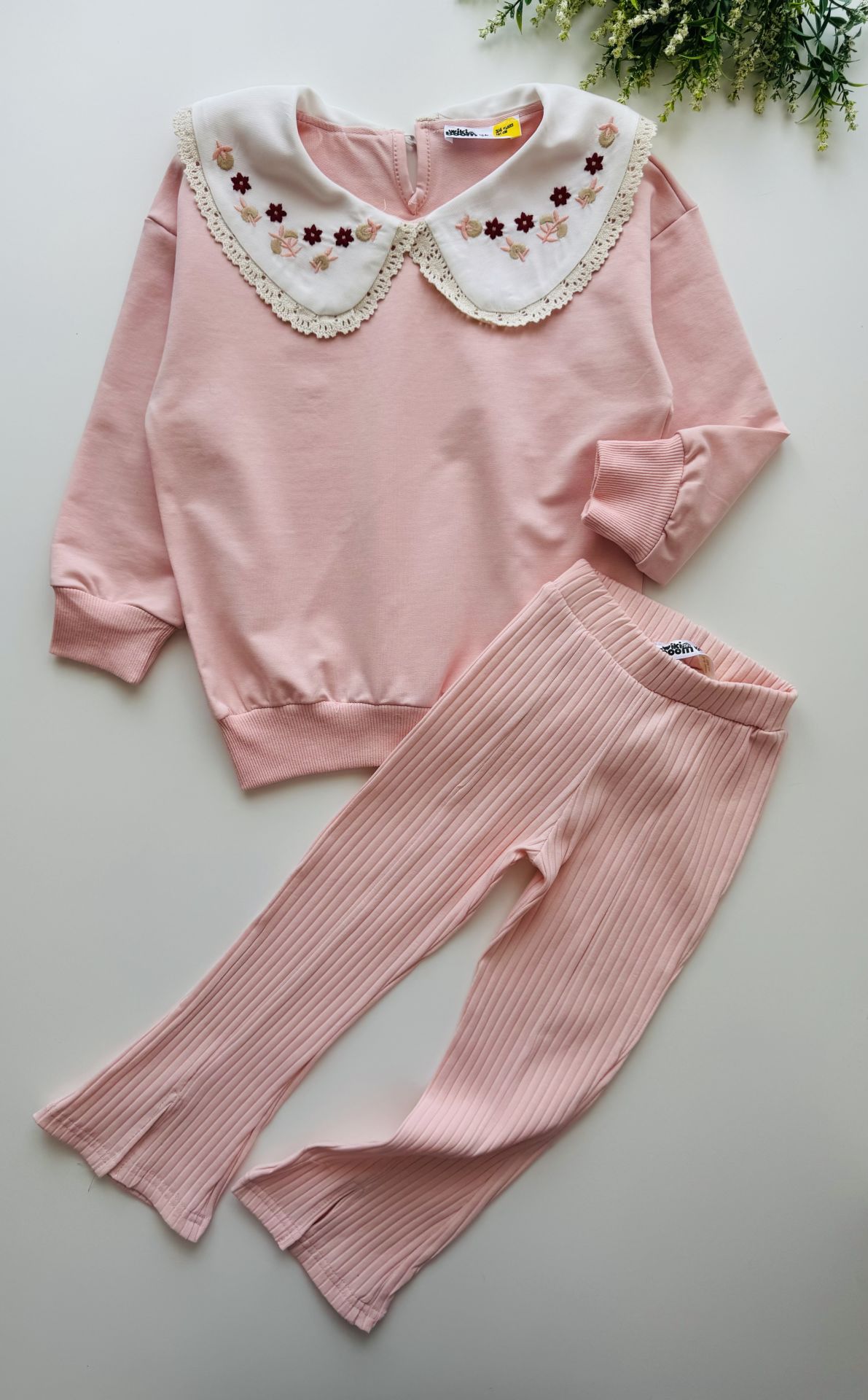 Mira Yaka Nakışlı Mevsimlik Takım - Pembe