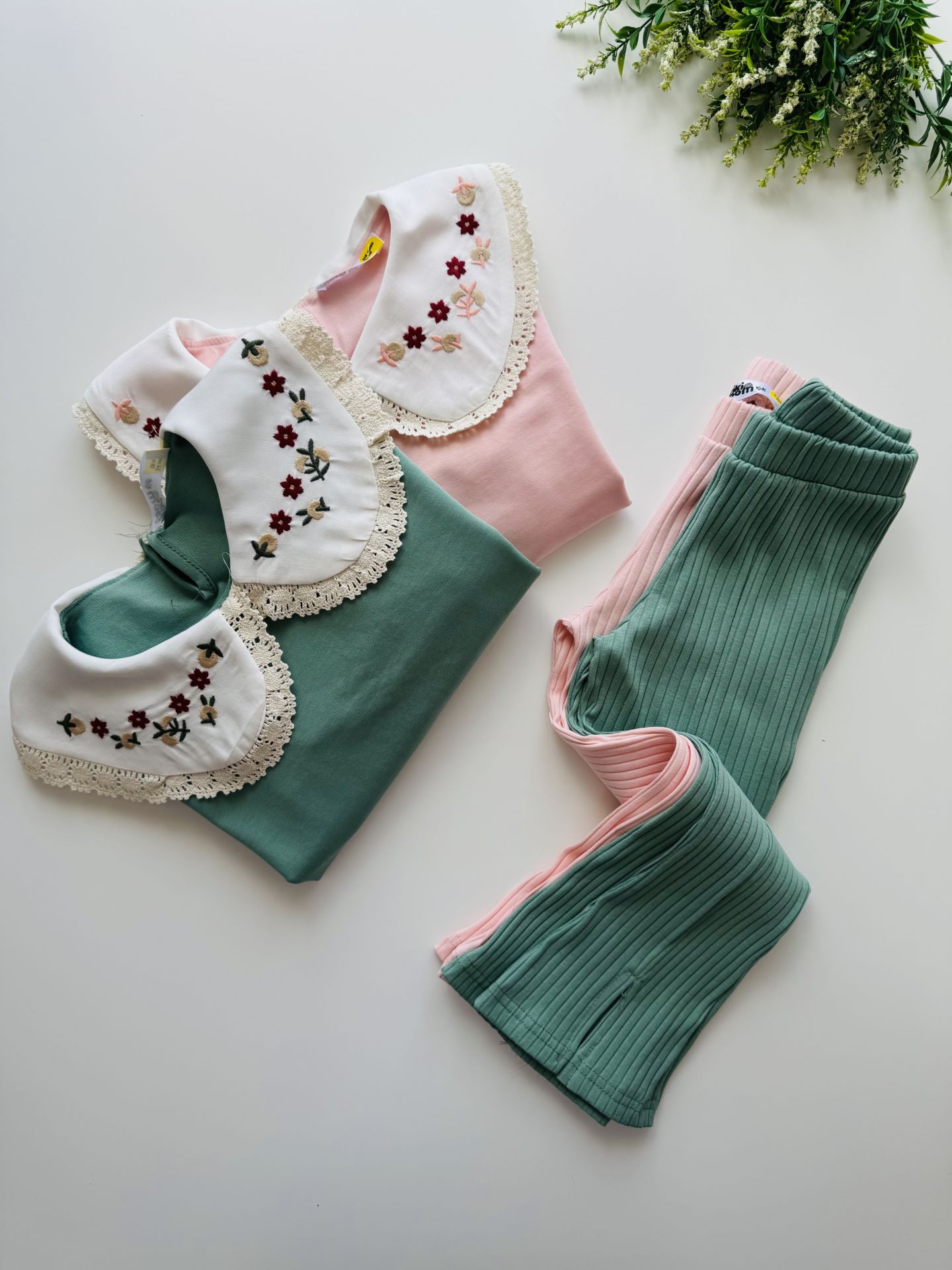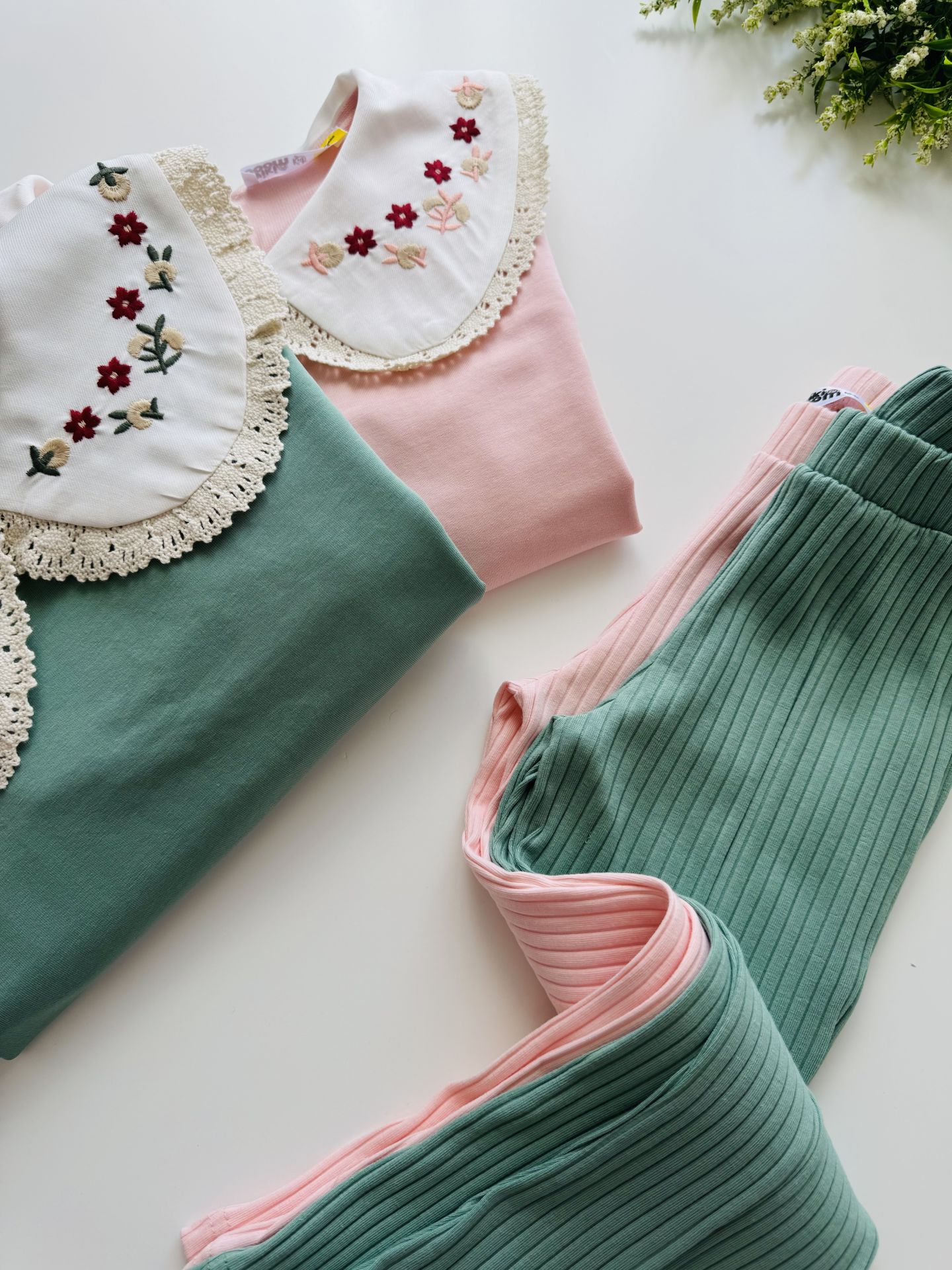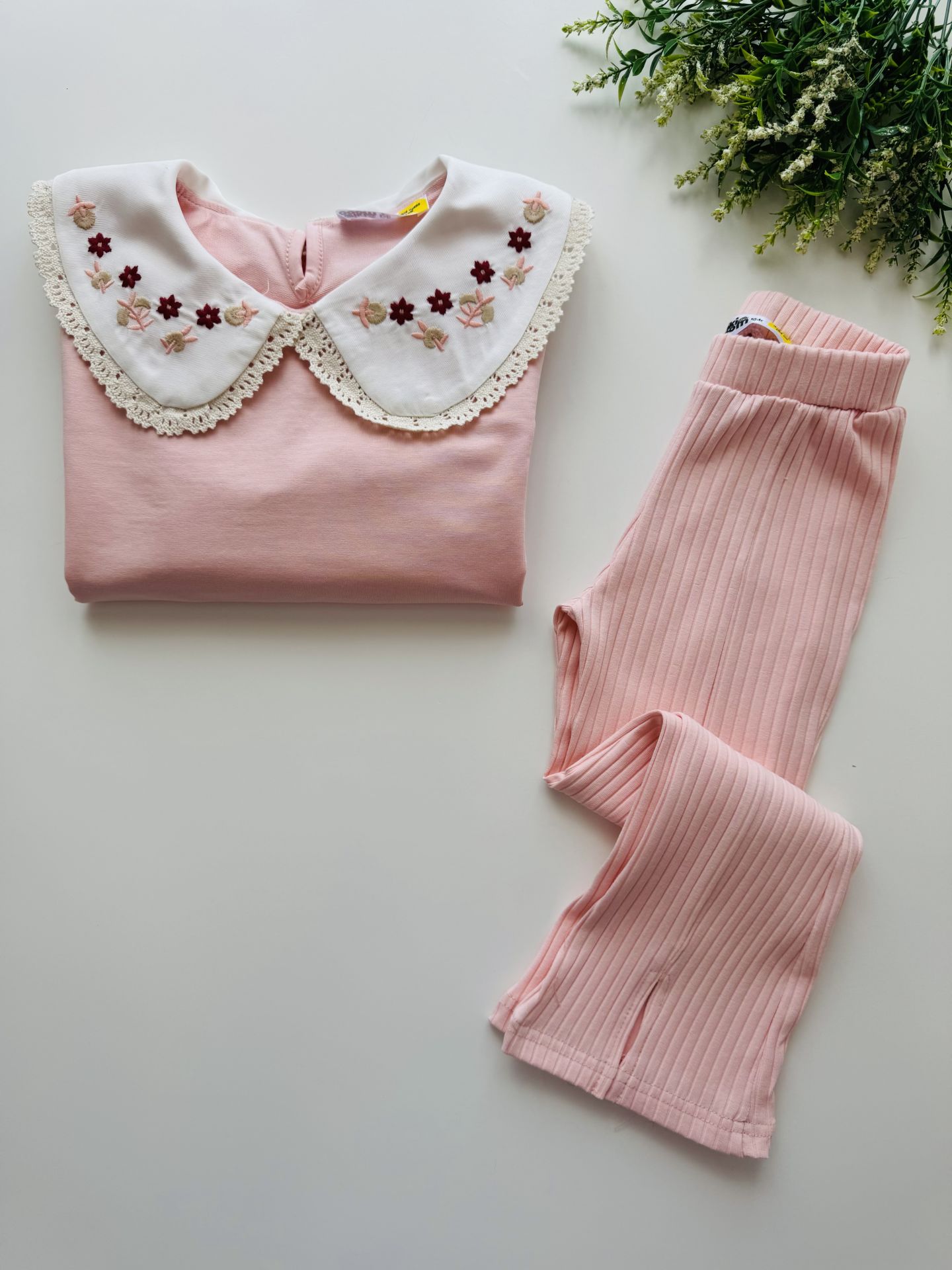 Mira Yaka Nakışlı Mevsimlik Takım - Pembe