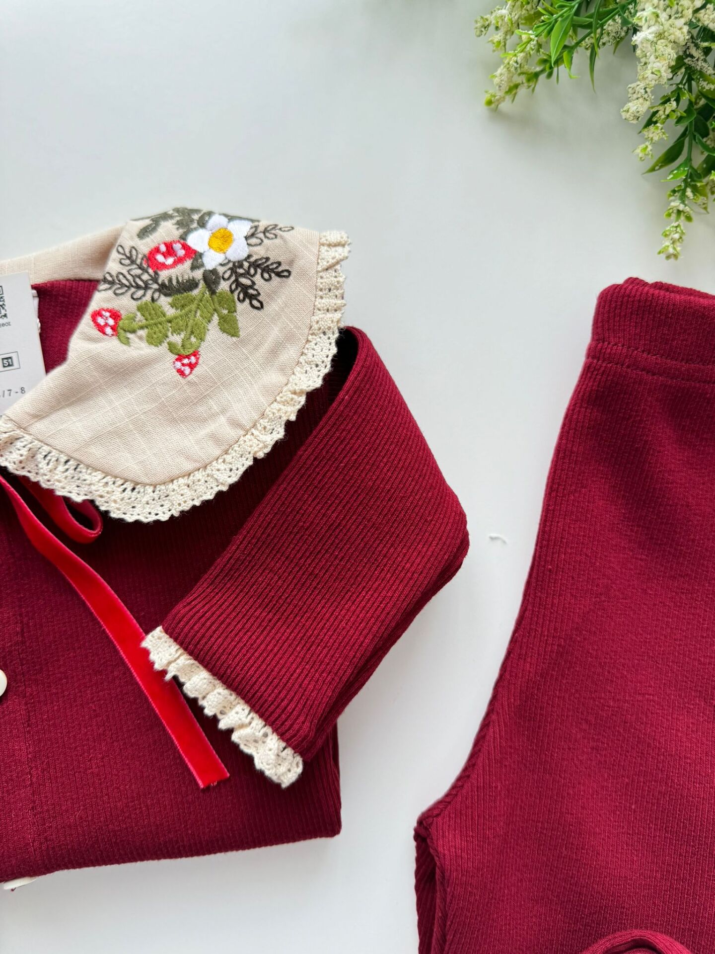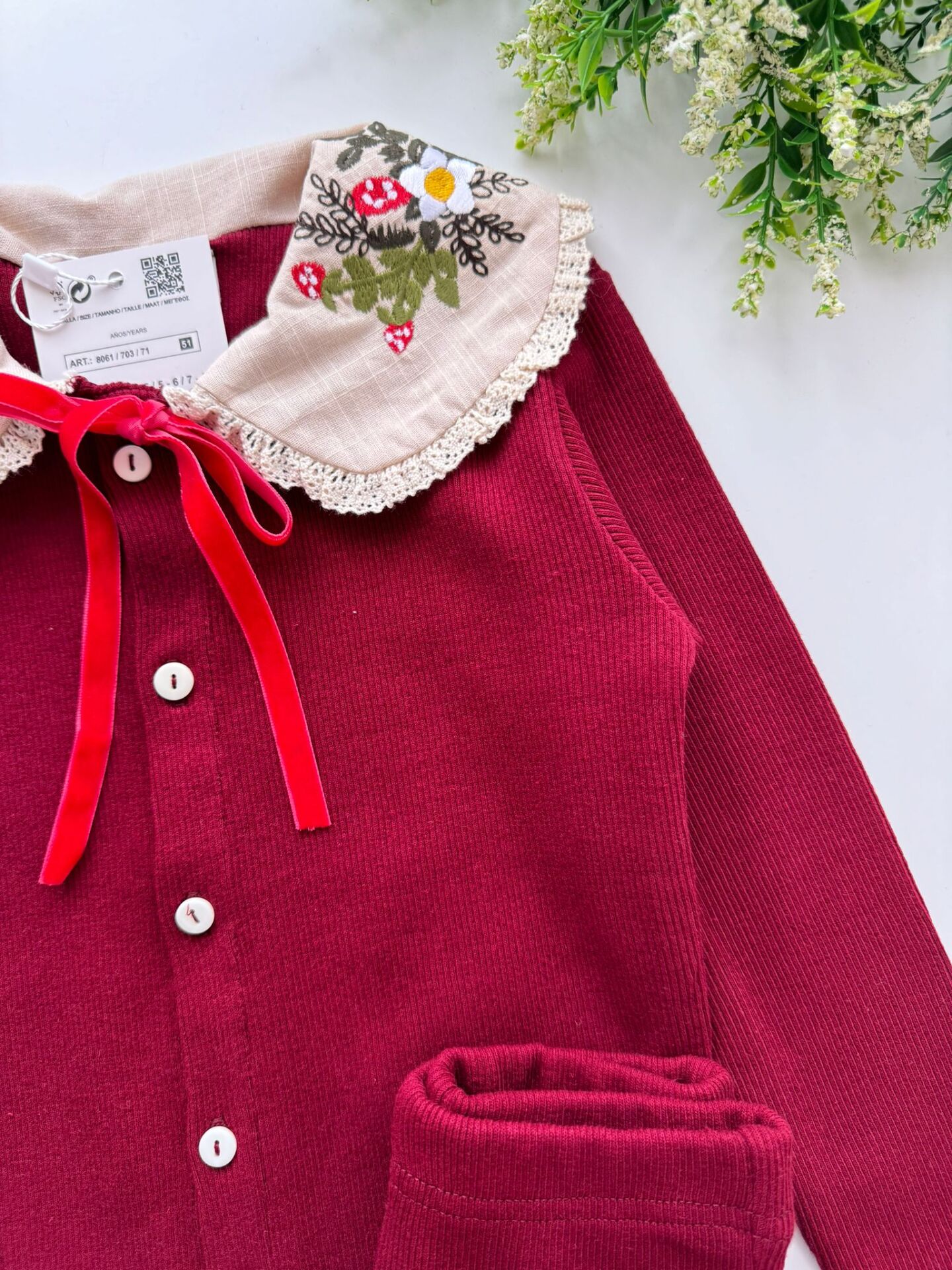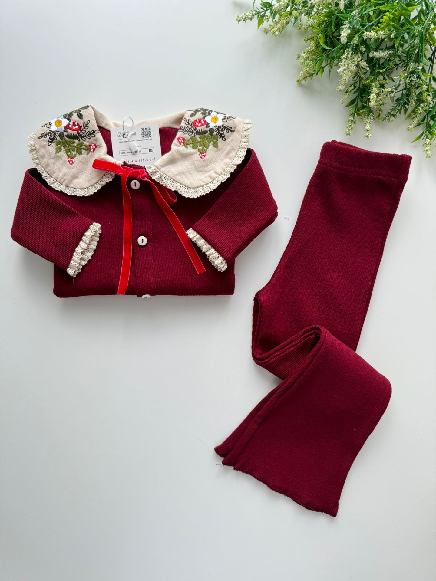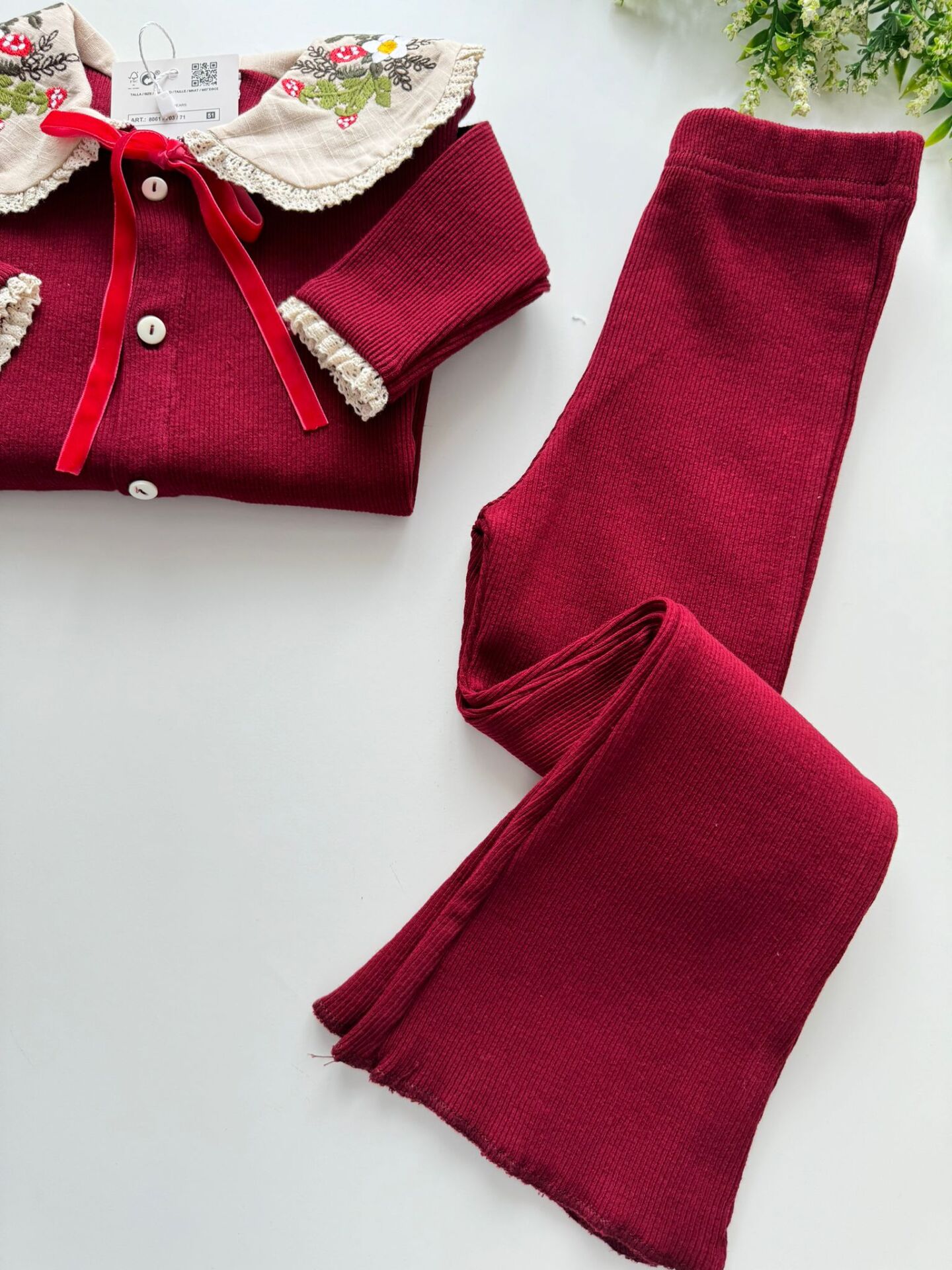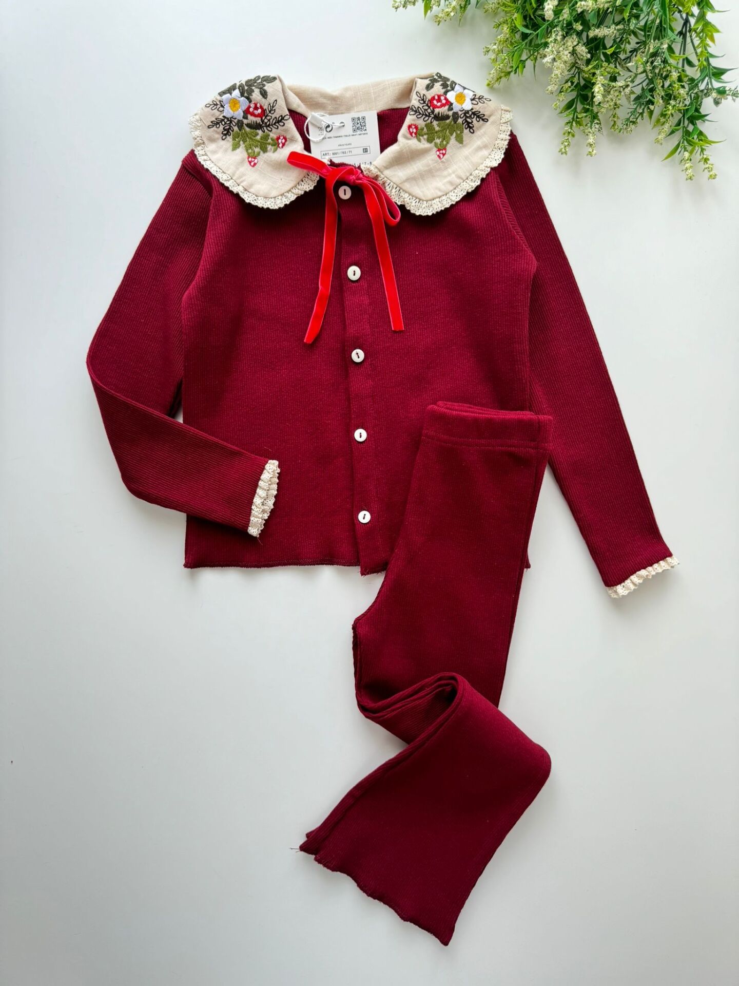 Yaka Nakışlı Ribana Takım - Bordo