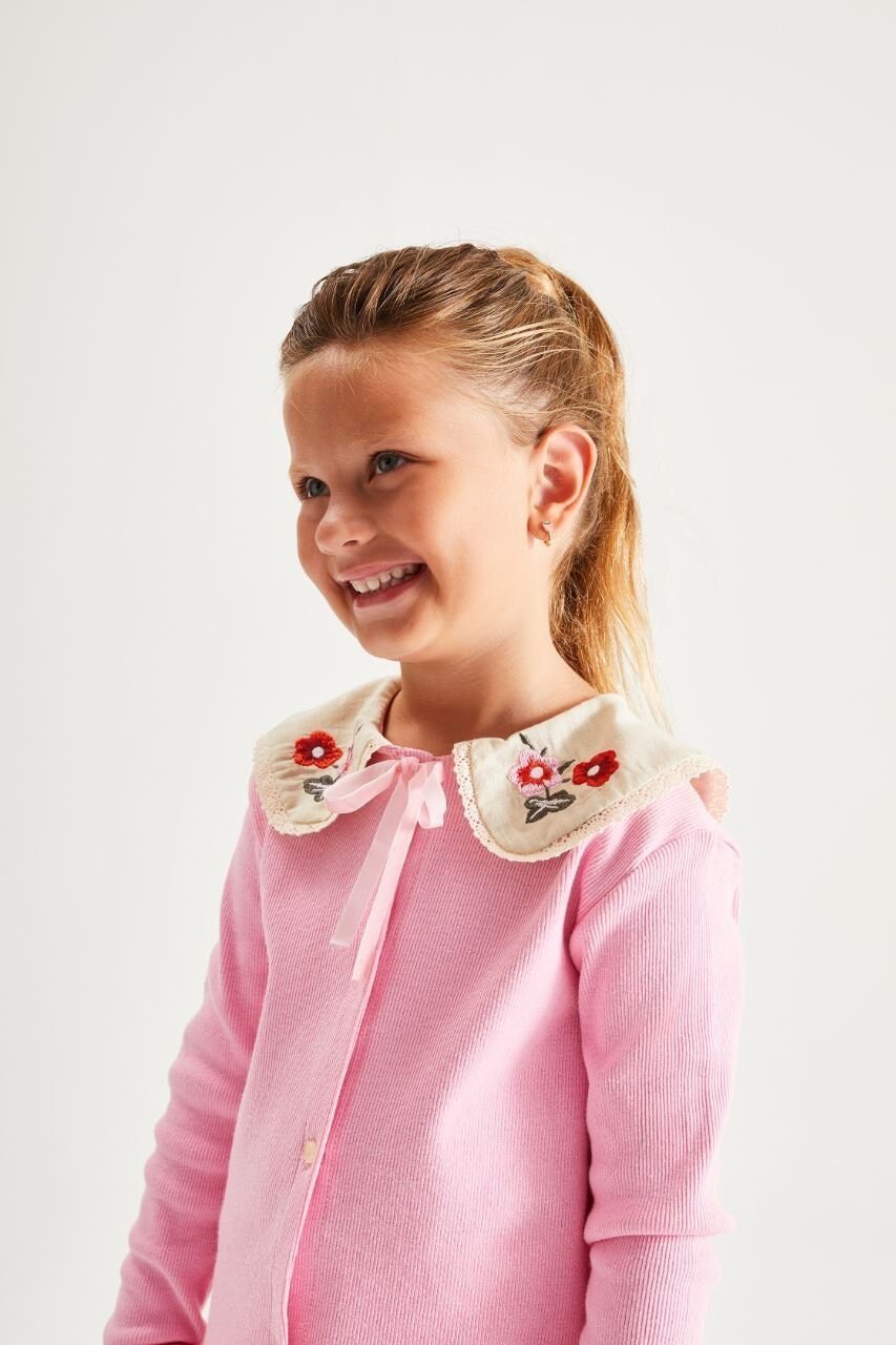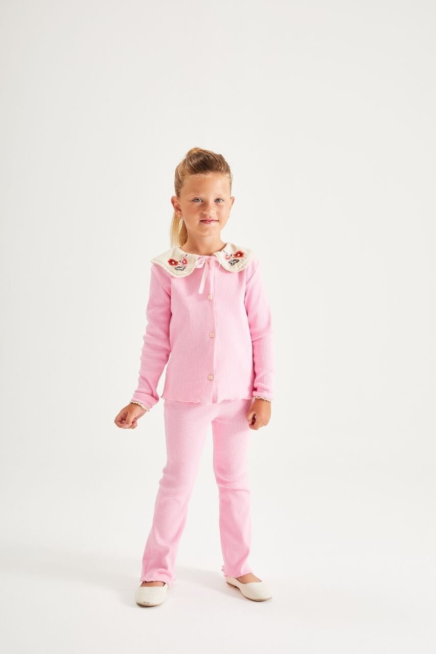 Yaka Nakışlı Ribana Takım - Pembe