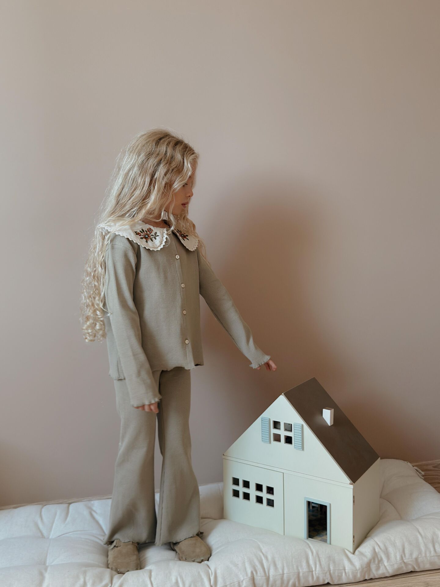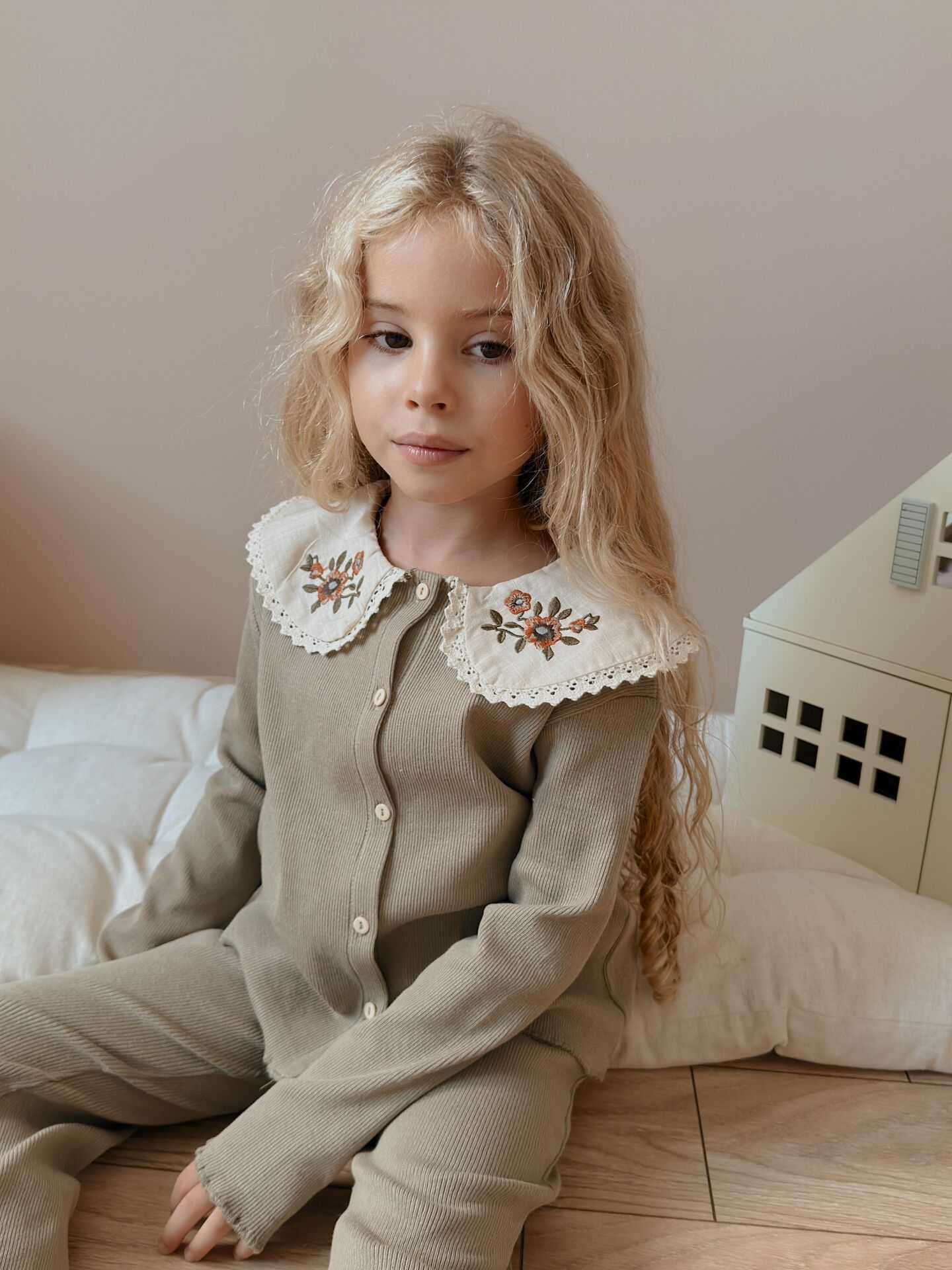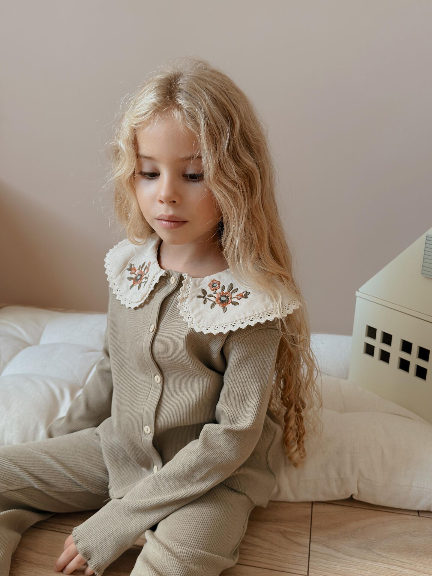 Yaka Nakışlı Ribana Taytlı Takım - Yeşil