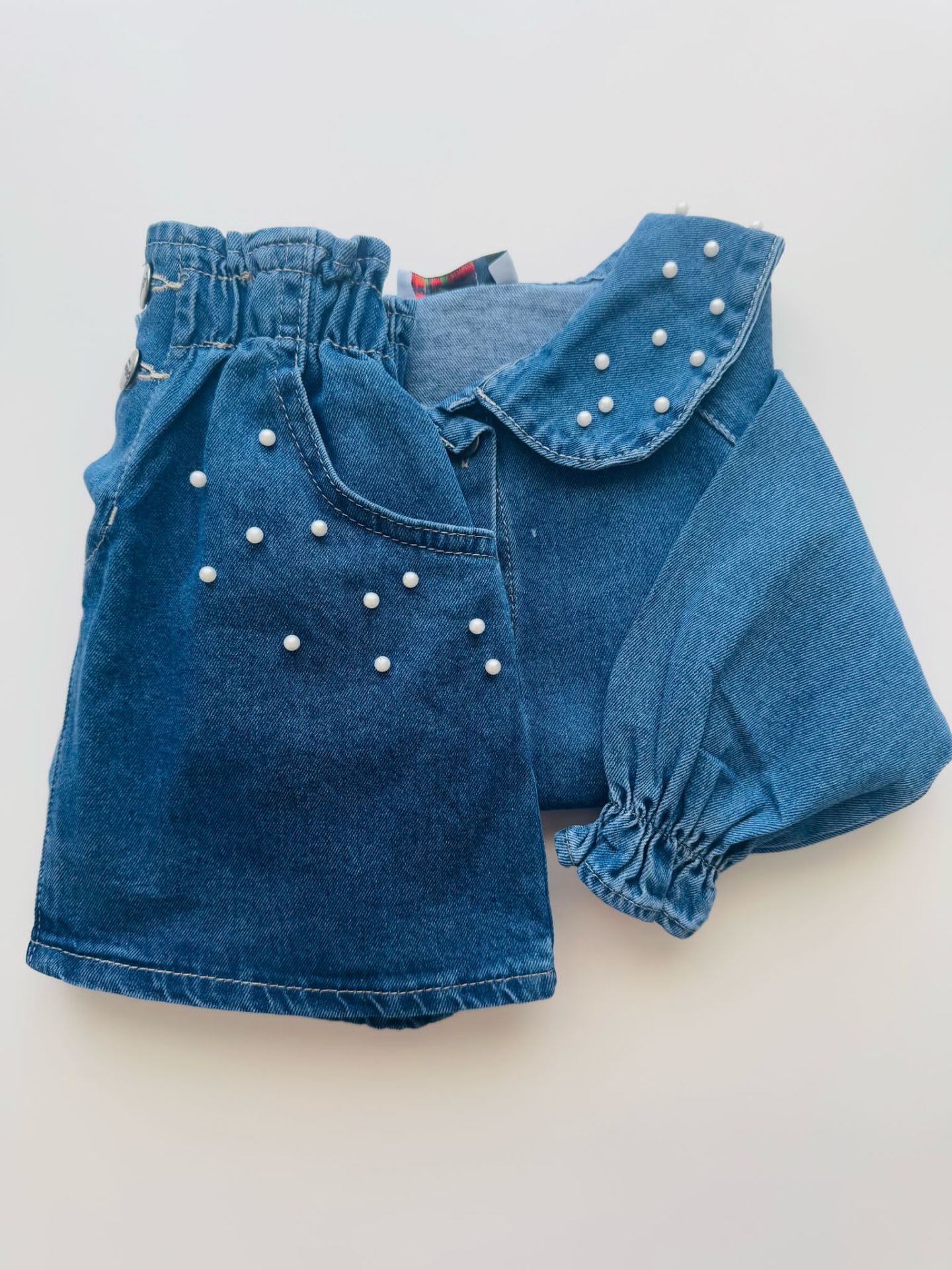 Ürün Bilgisi : Alt üst denimdir. üzerine inci işlemleri mevcuttur
