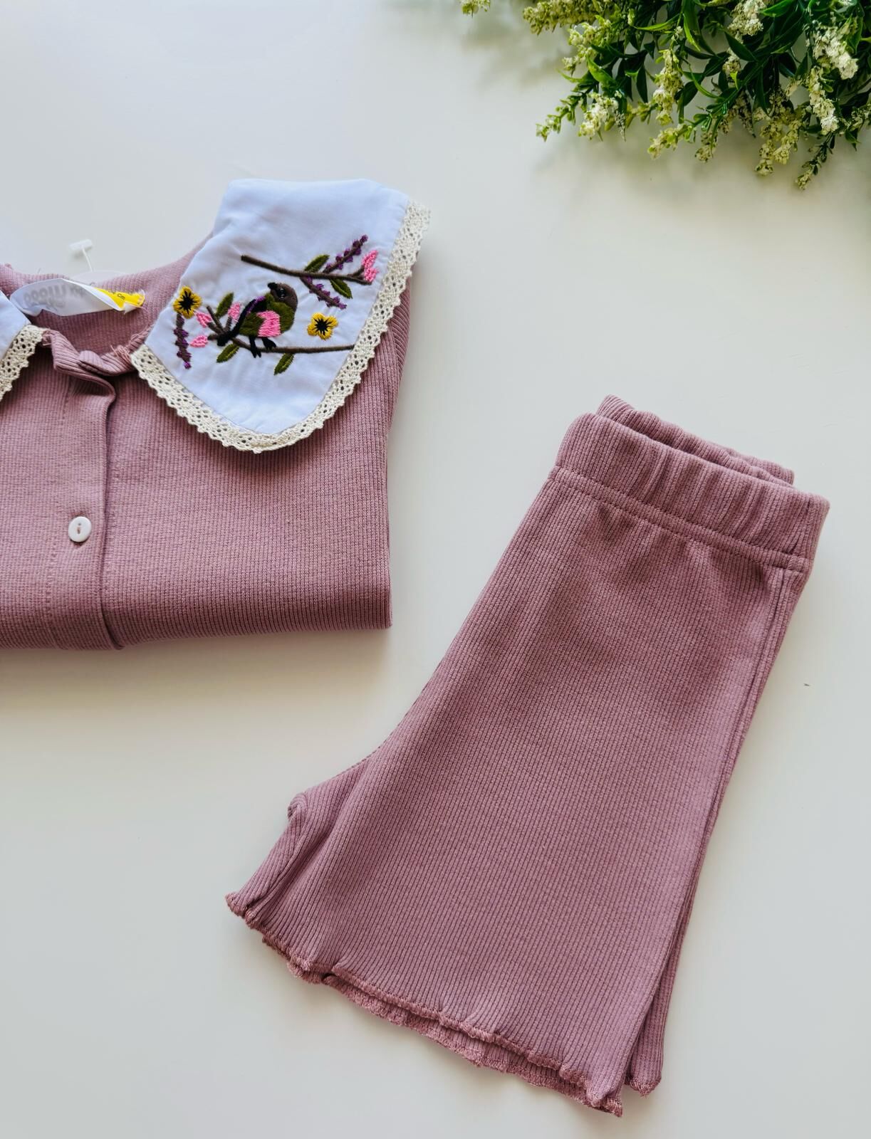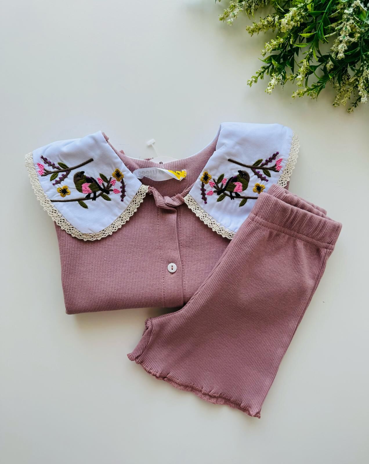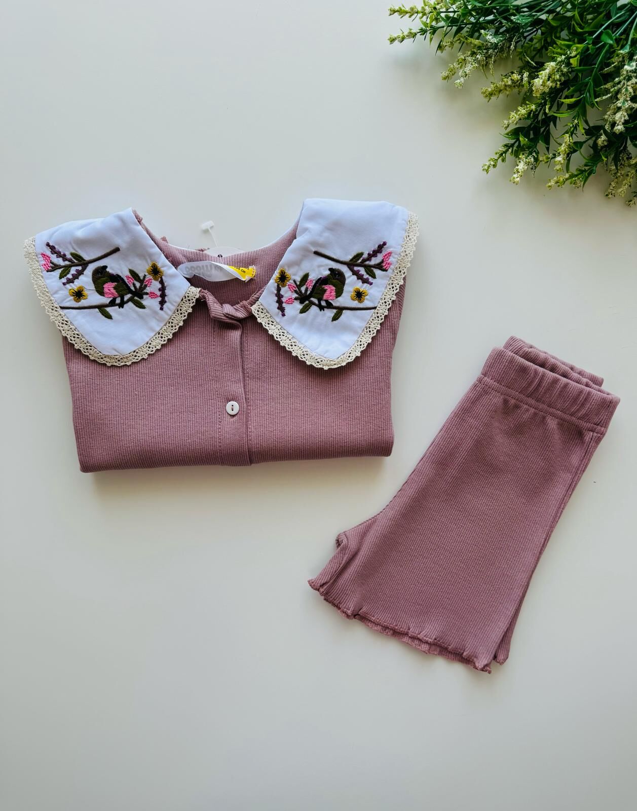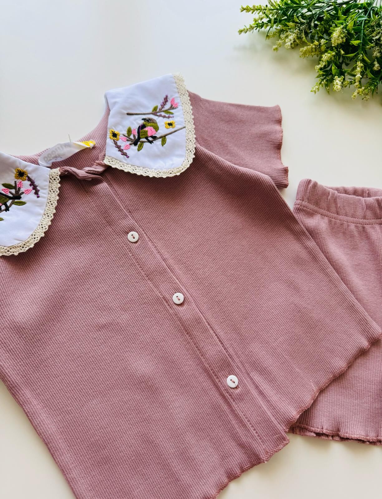 Yakası Nakışlı Deren Takım - Gül Kurusu