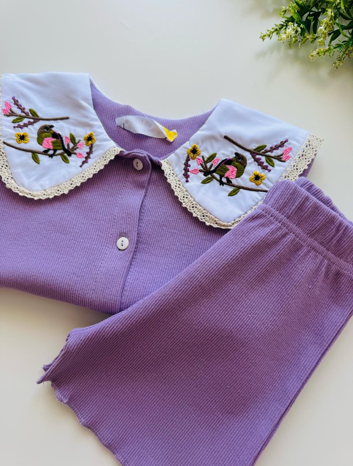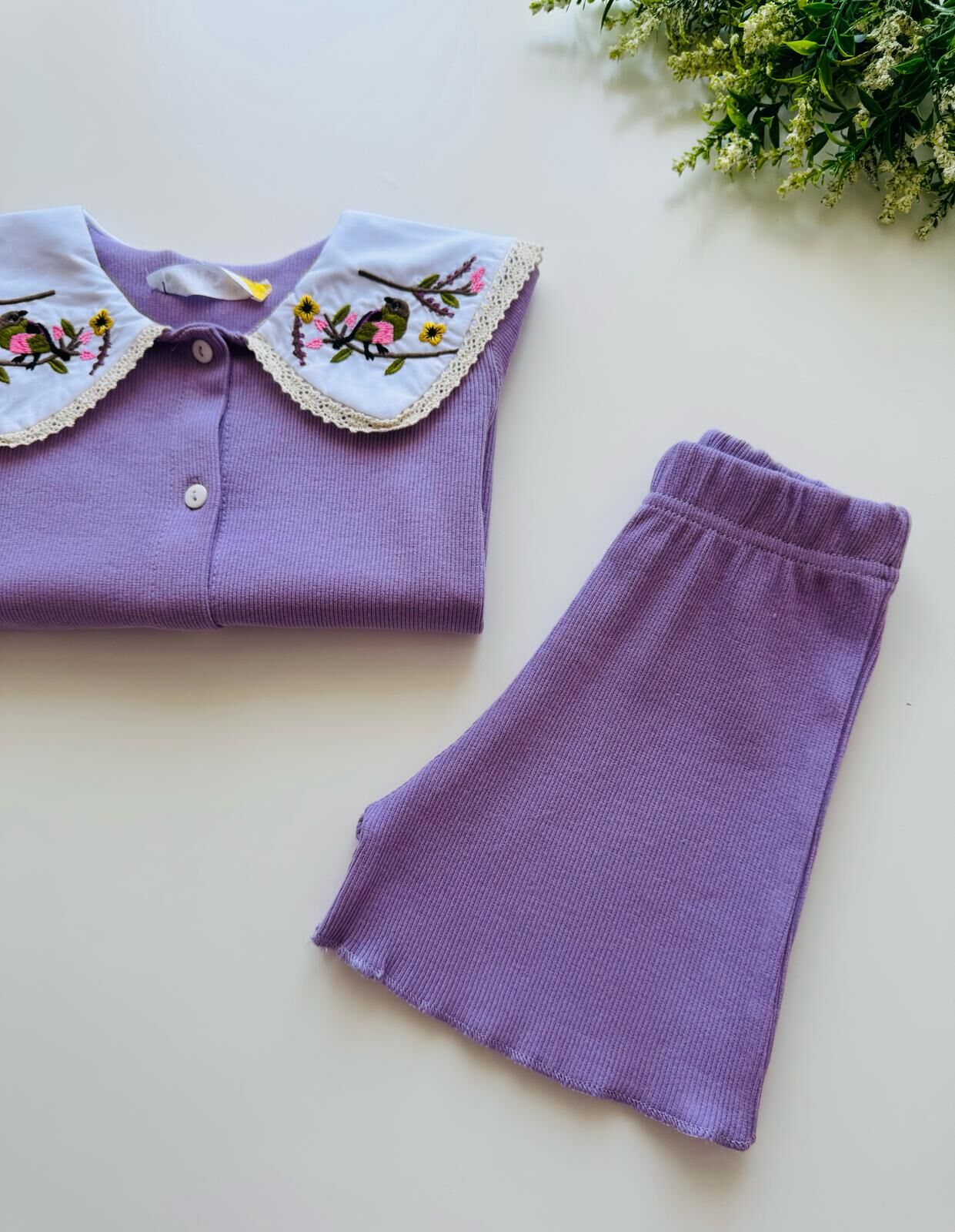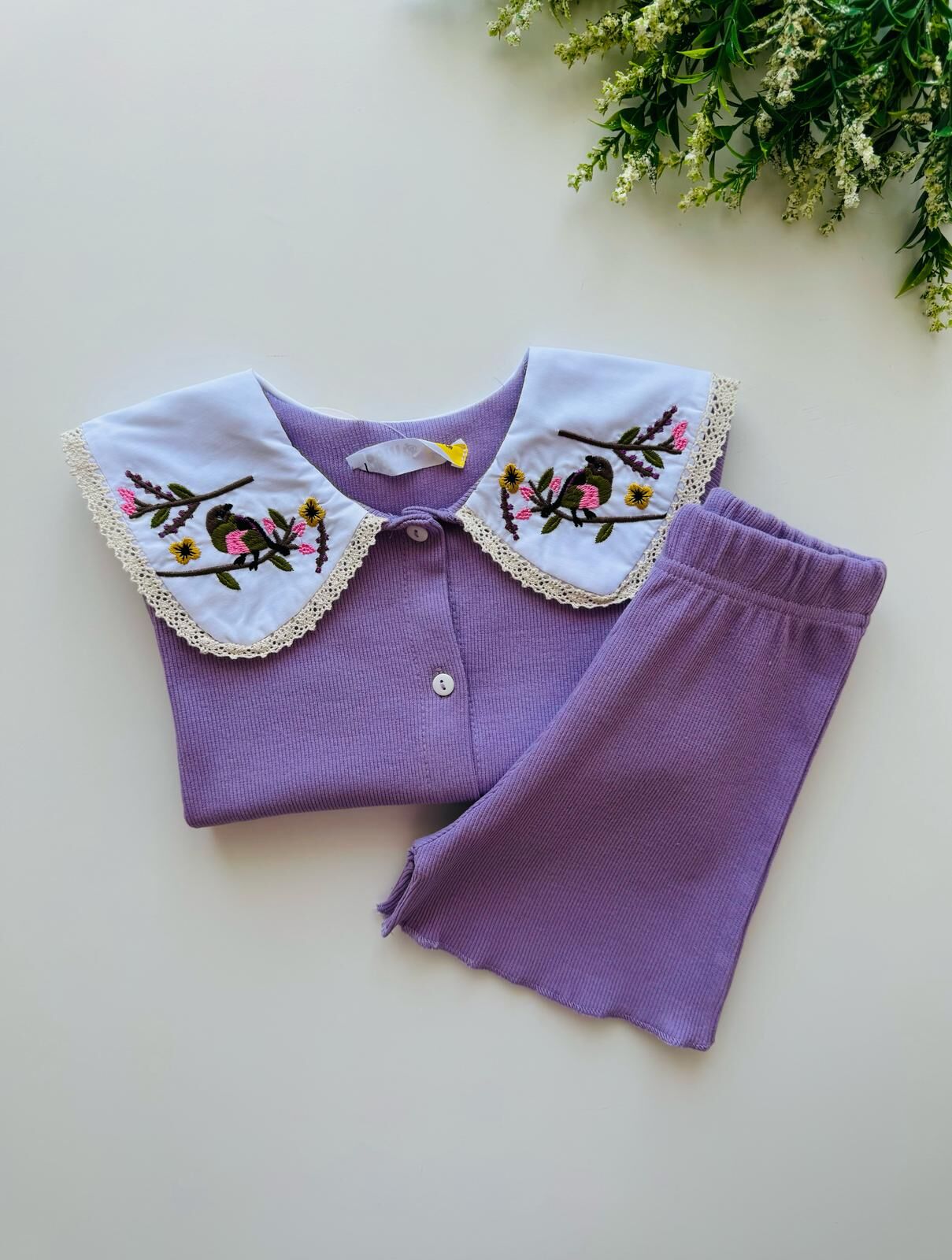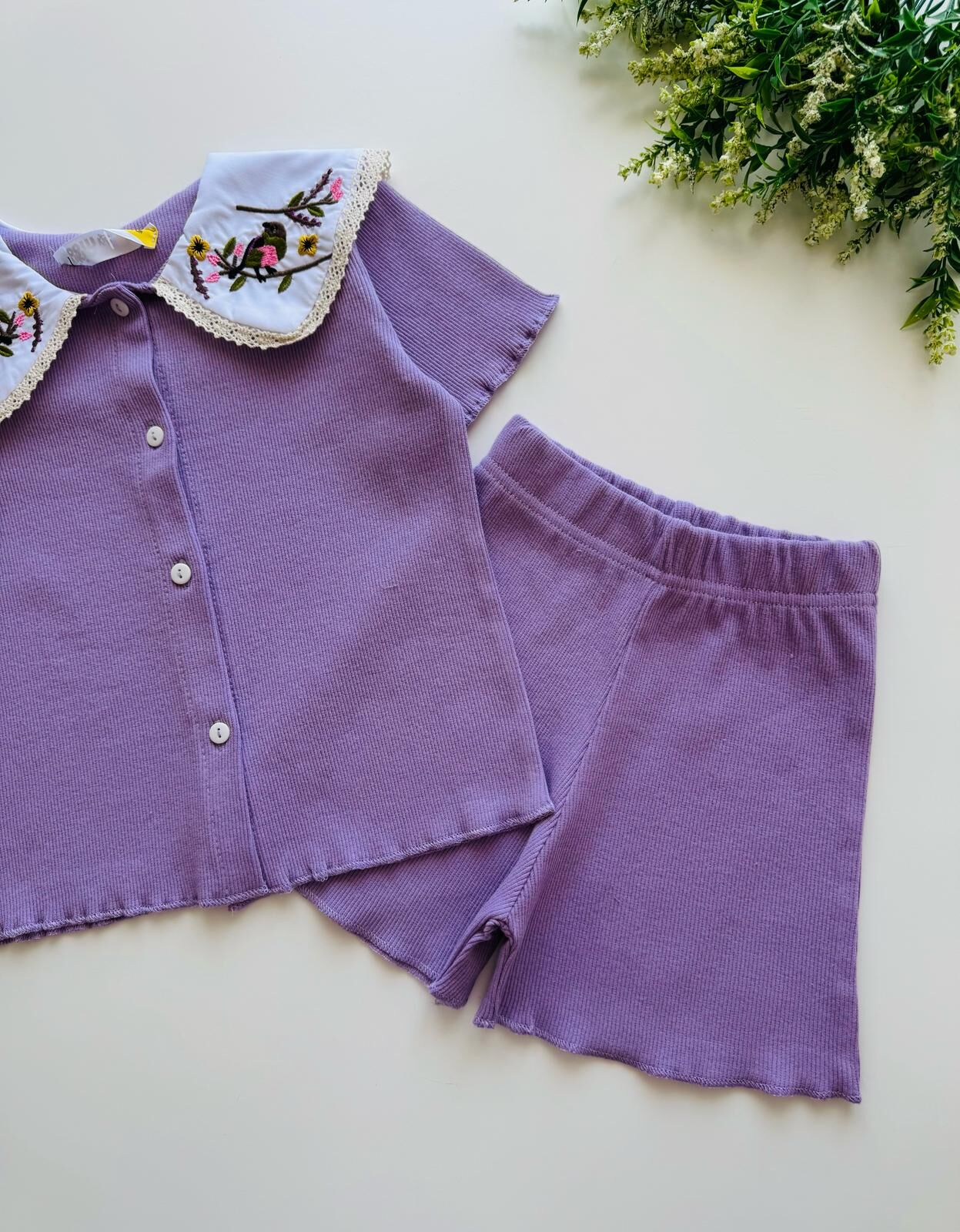Ürün Bilgisi : Kaşkorse kumaş önü düğmeli yakası nakışlı şortlu takım
