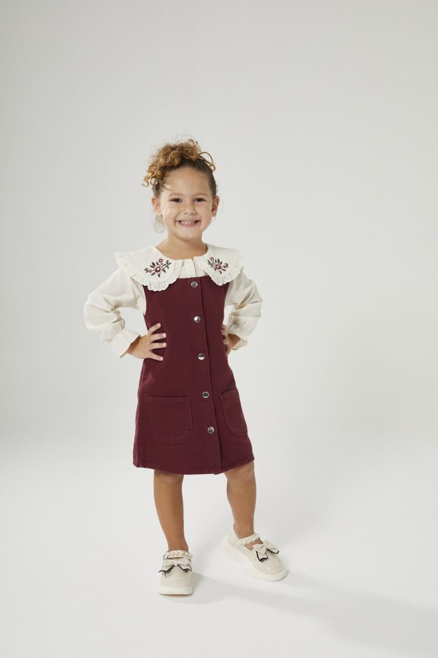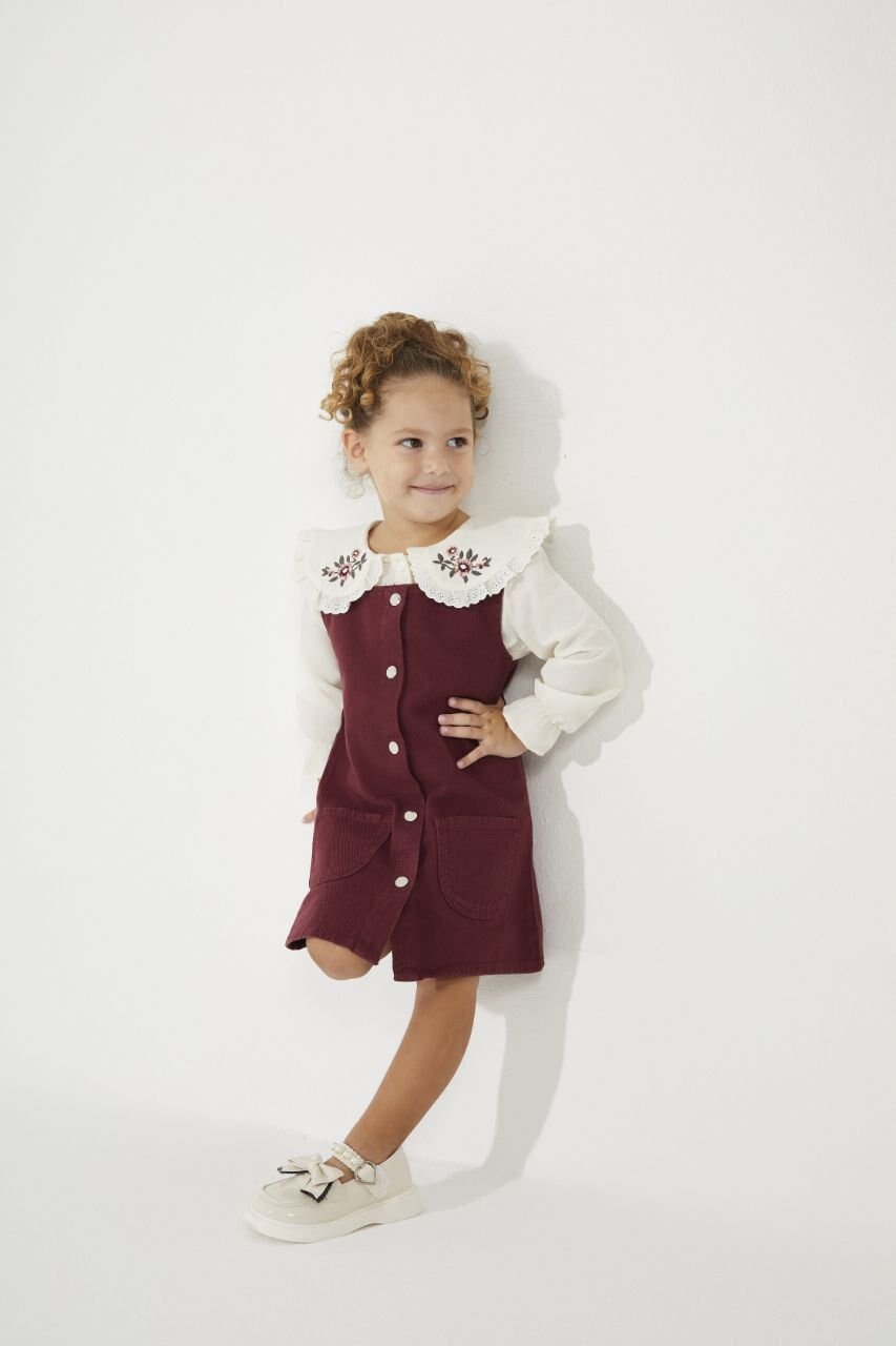 Yakası Nakışlı Jile - Bordo