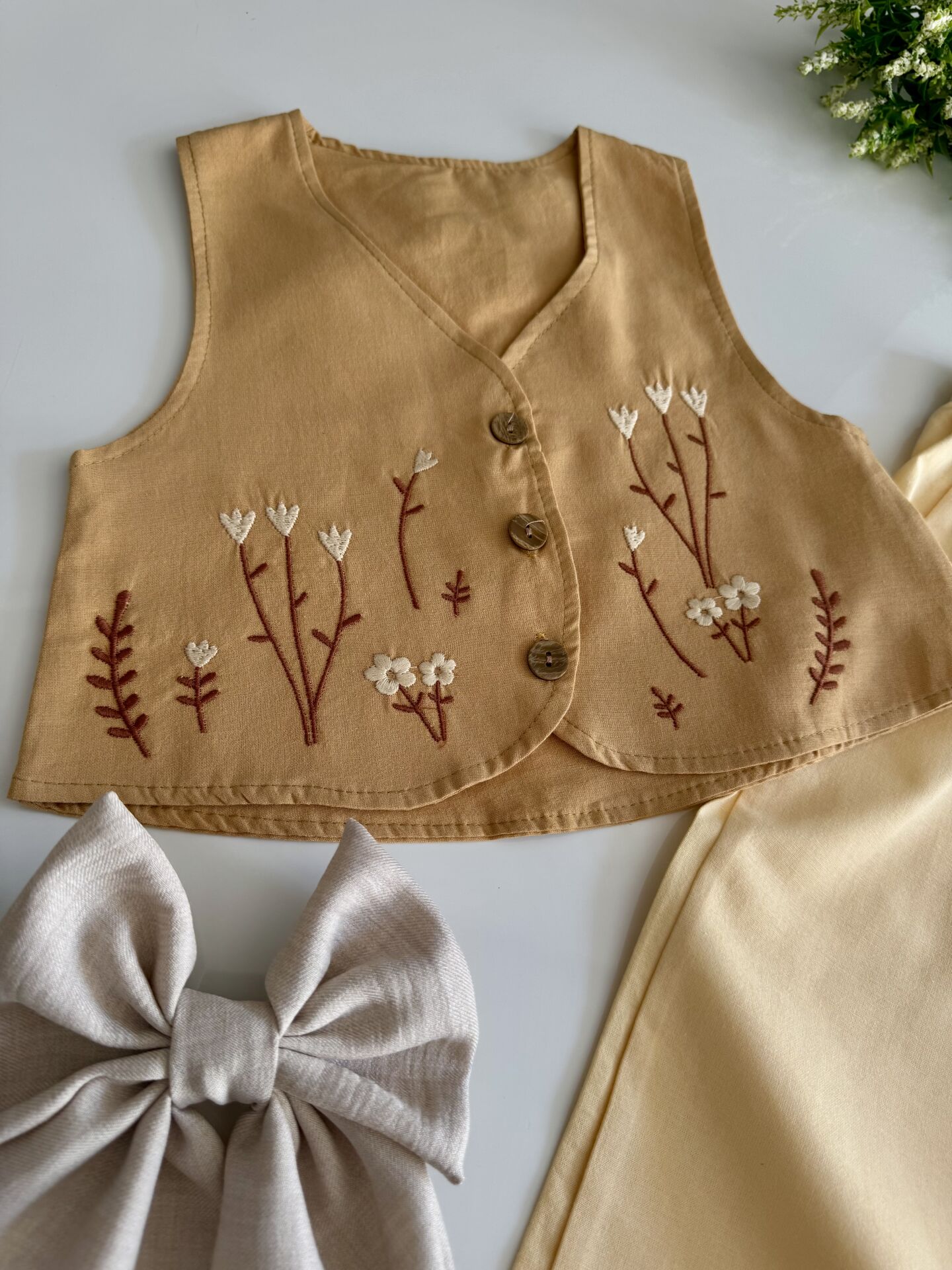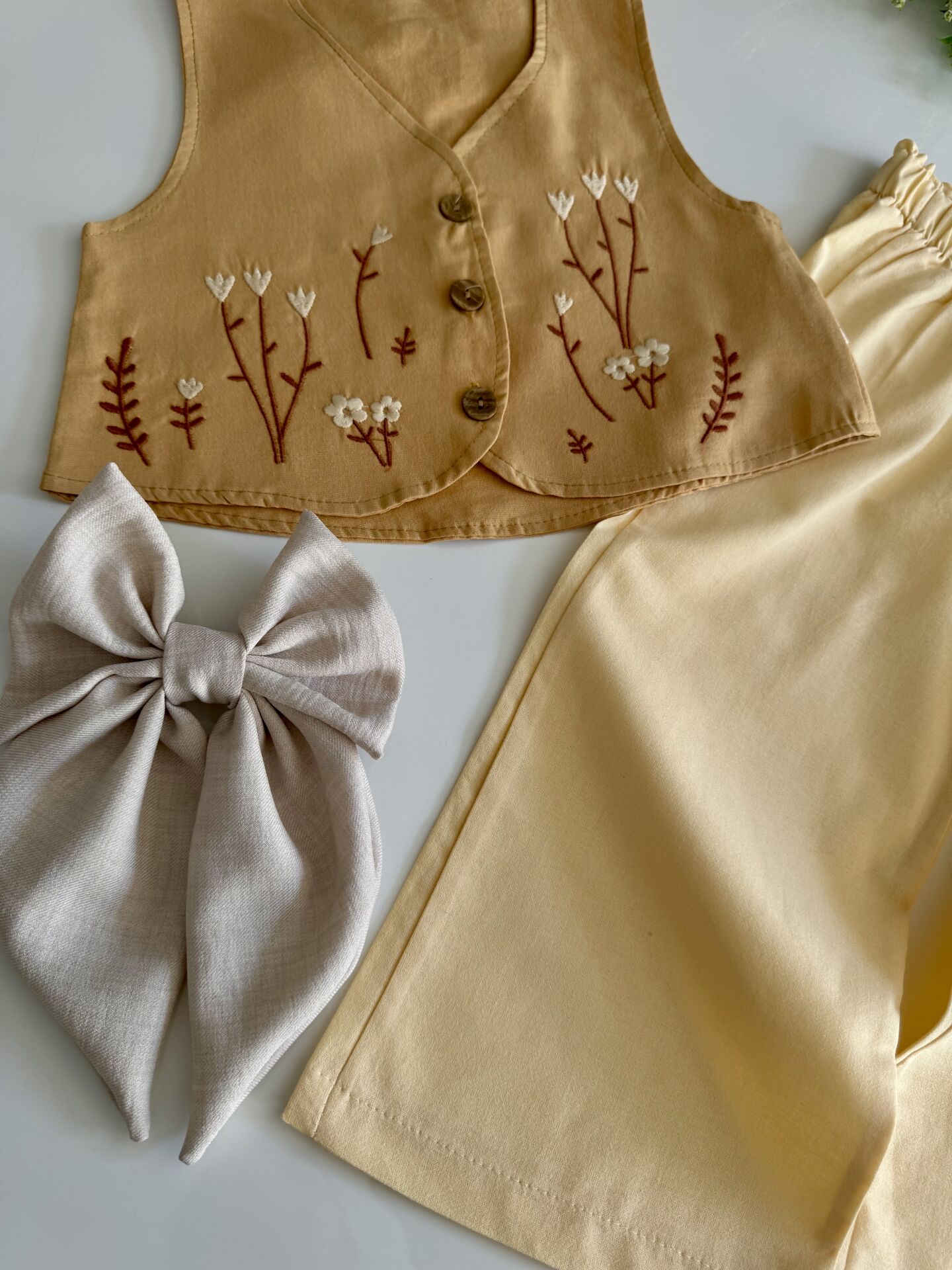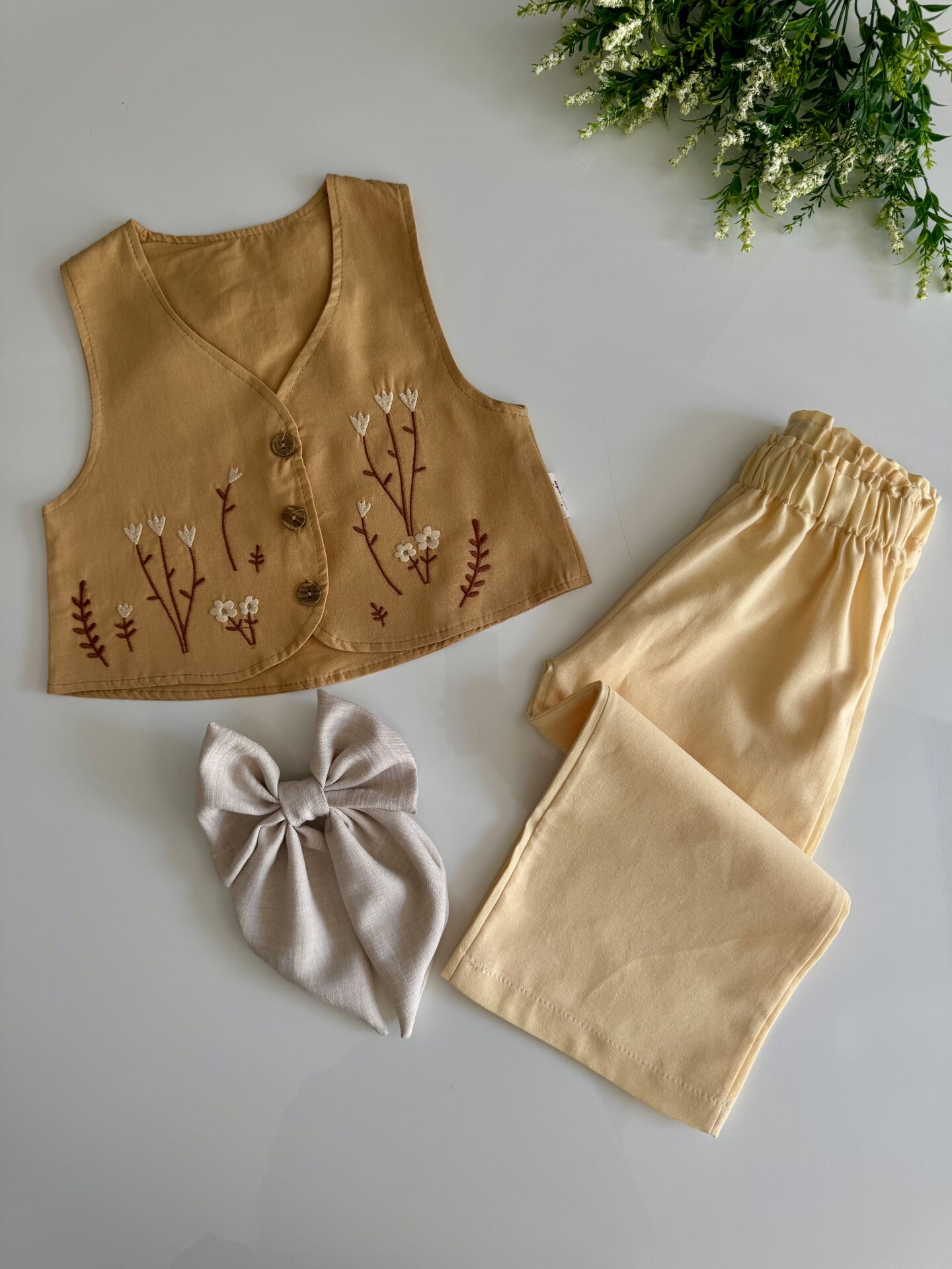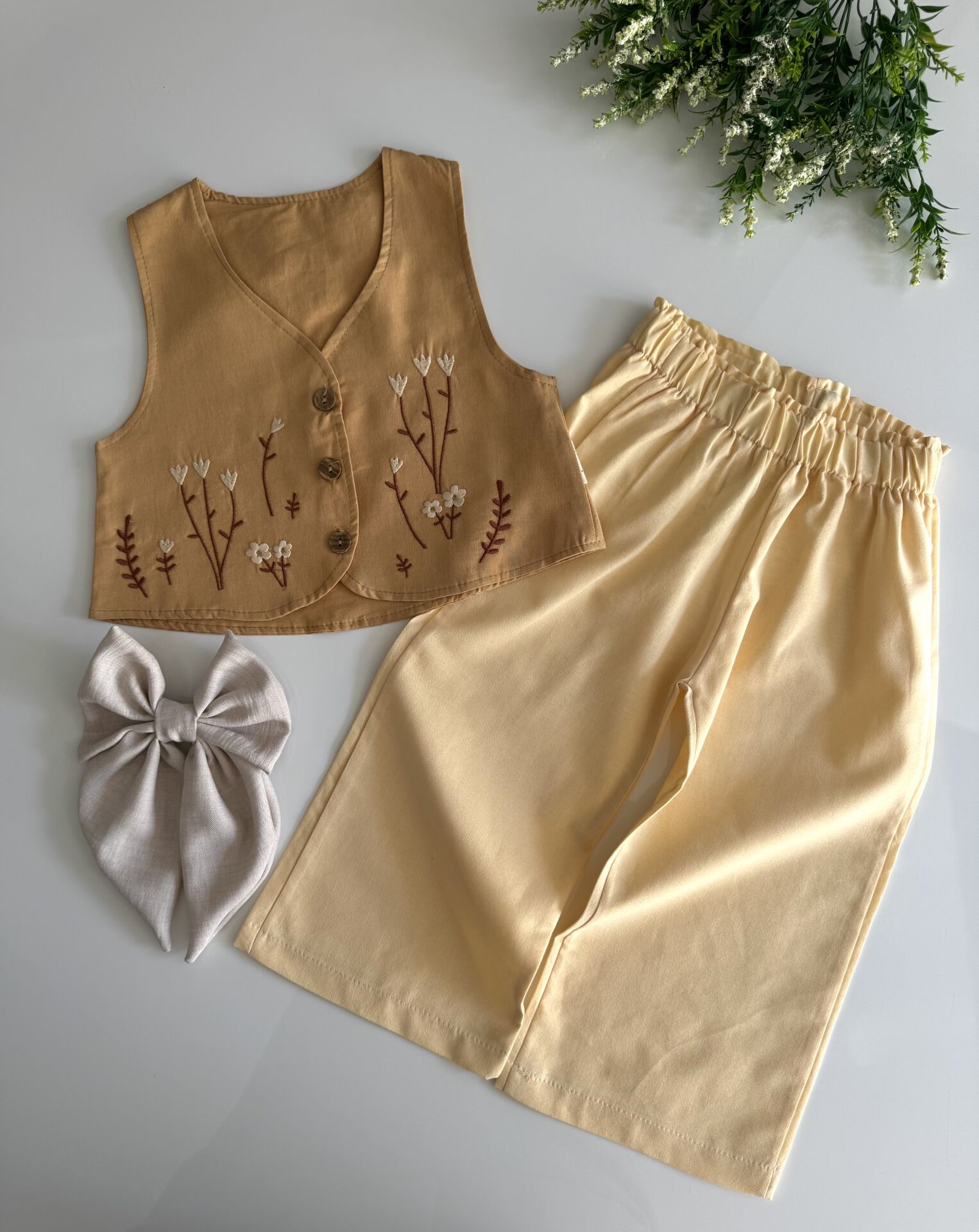 Yelekli Bohemian Tarz İpek Takım - Soft Hardal