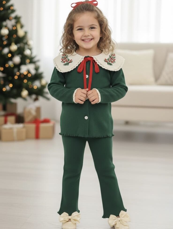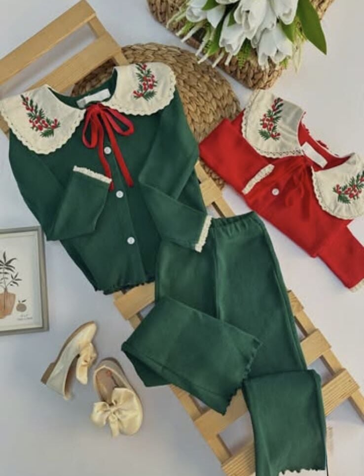Yeni Yıl Yaka Detaylı Ribana Taytlı Takım - Yeşil