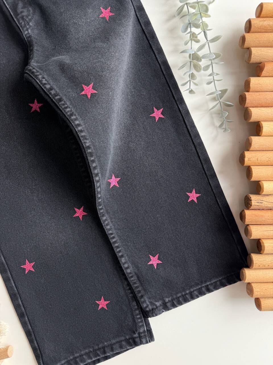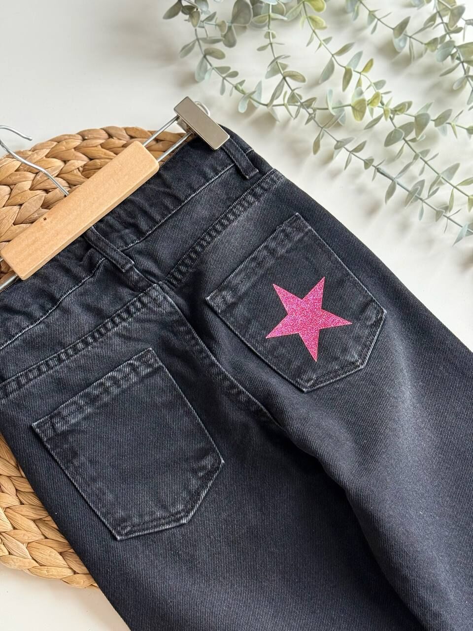 Yıldız Armalı Denim Pantolon - Siyah (Pembe Yıldız)