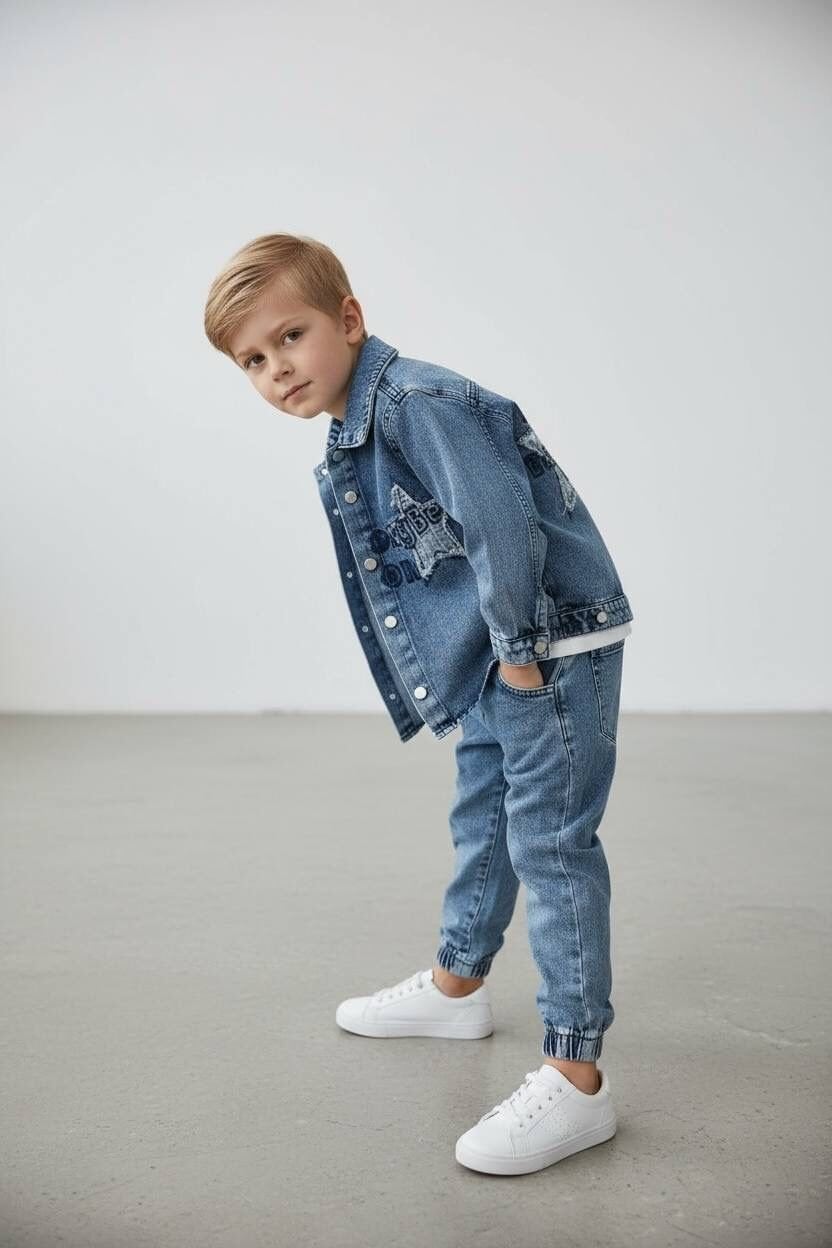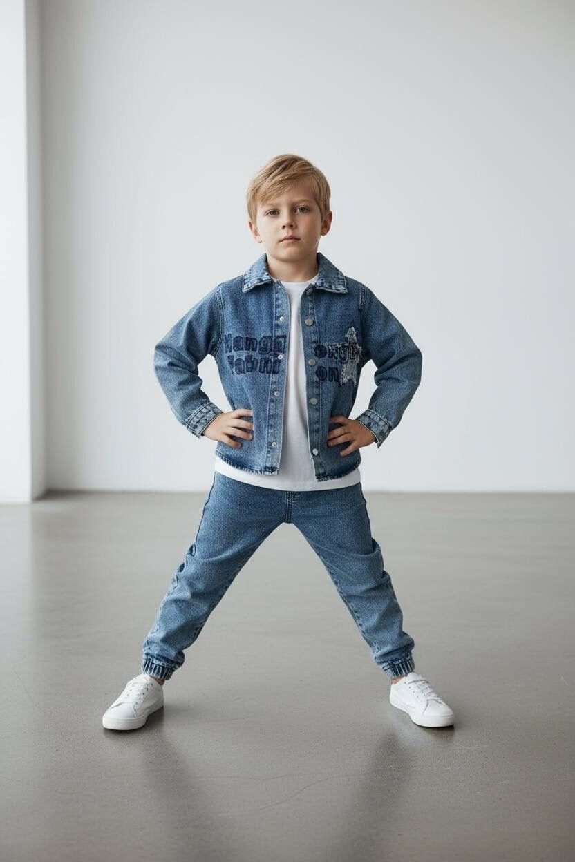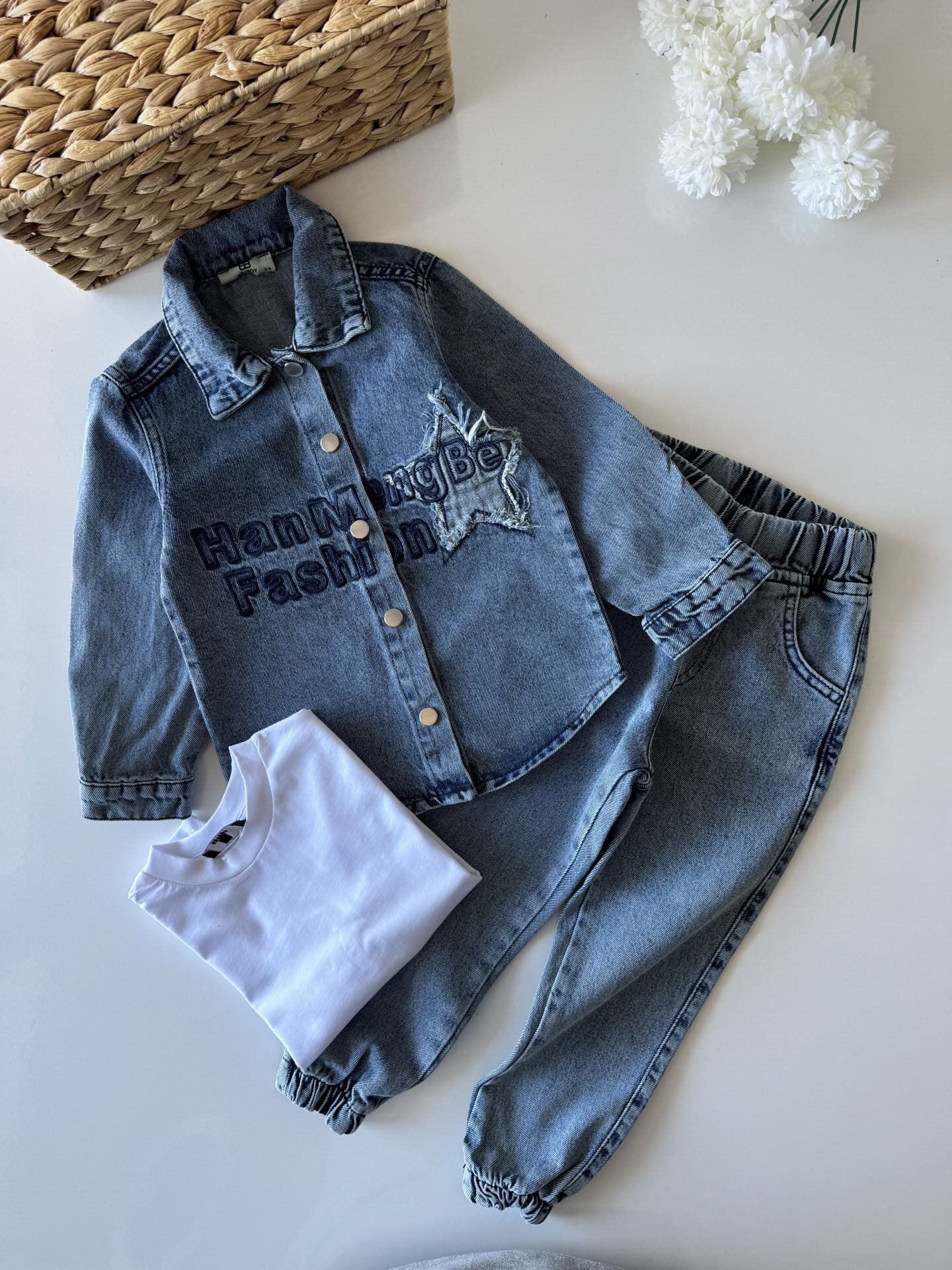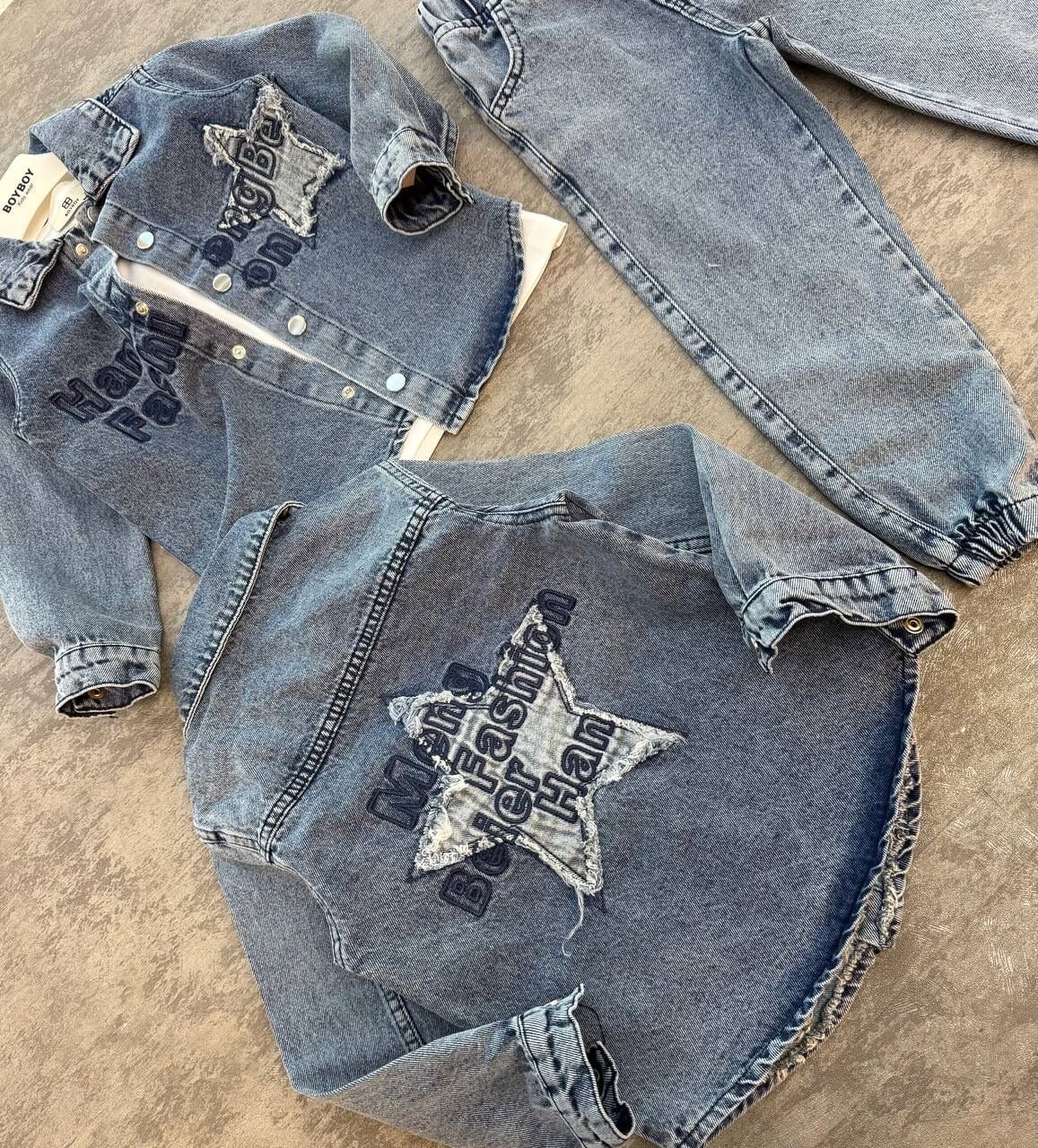 Yıldız Yama 3'lü Kot Takım - Mavi