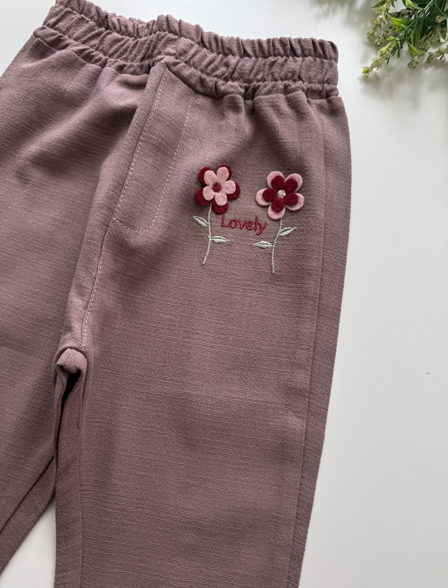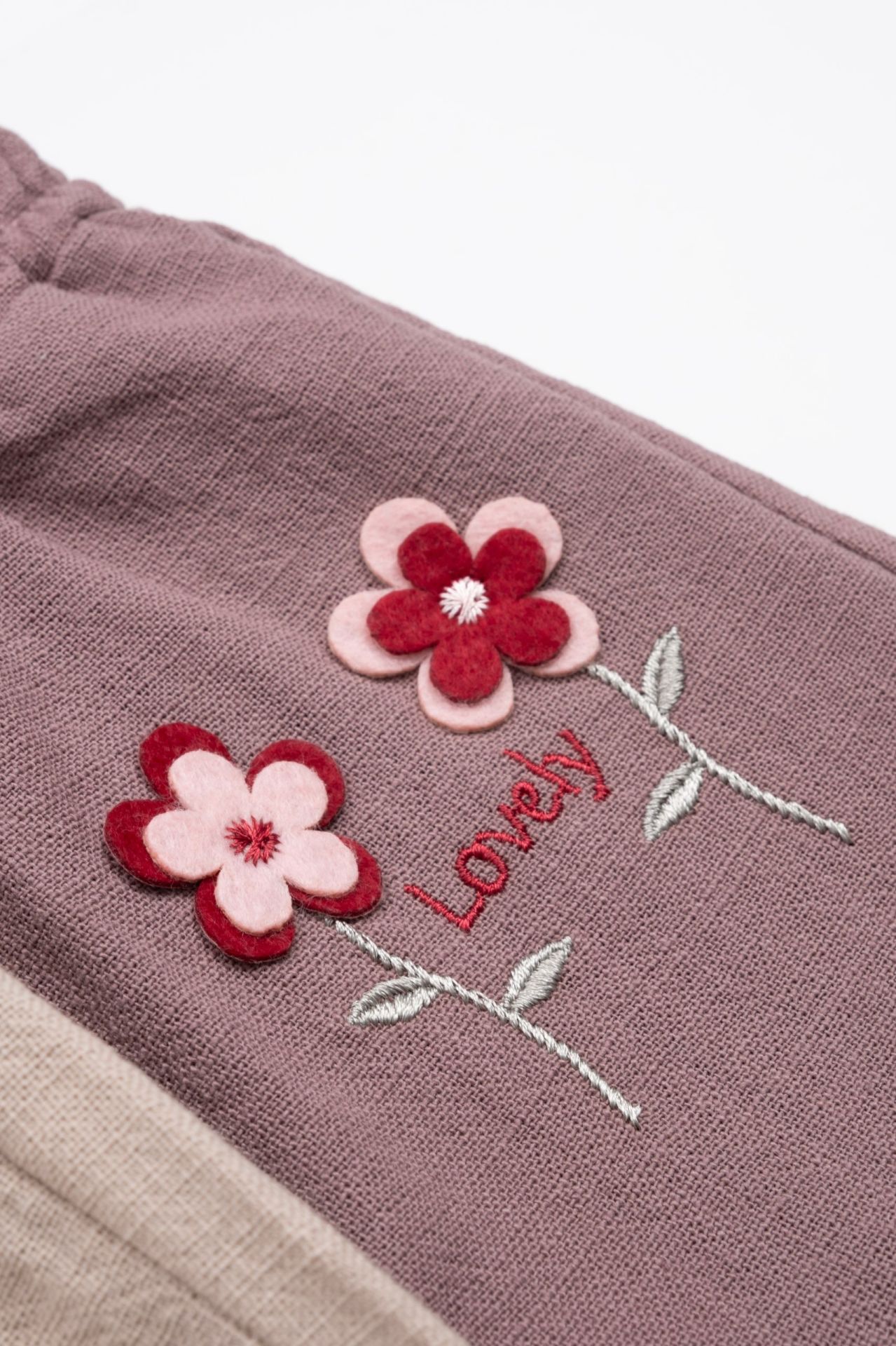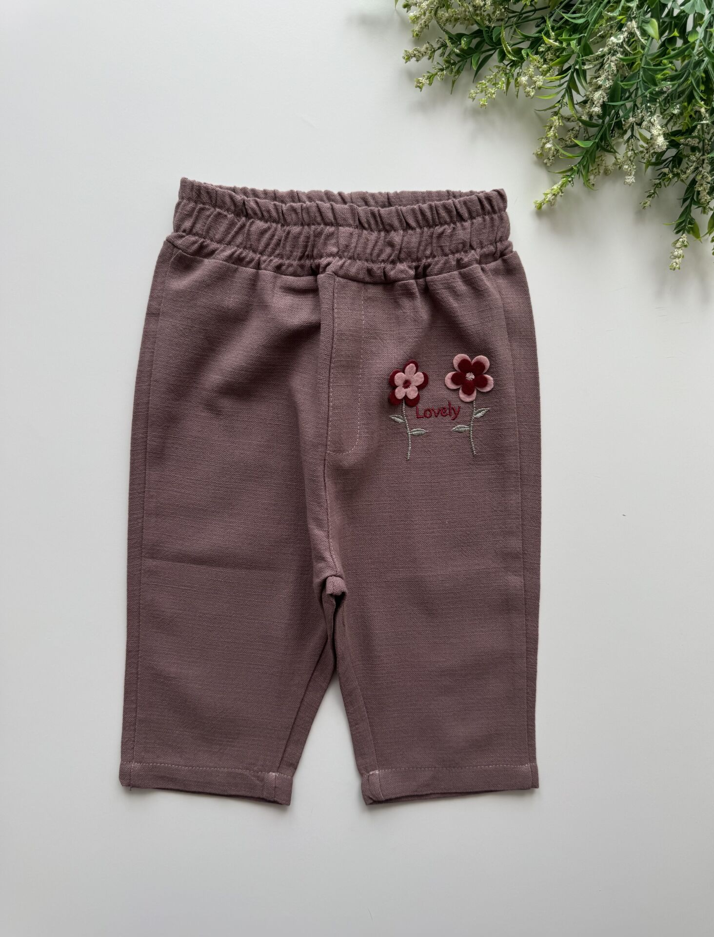 Ürün Bilgisi :Yumuşacık organik kumaştan çiçek aplikeli pantolon.